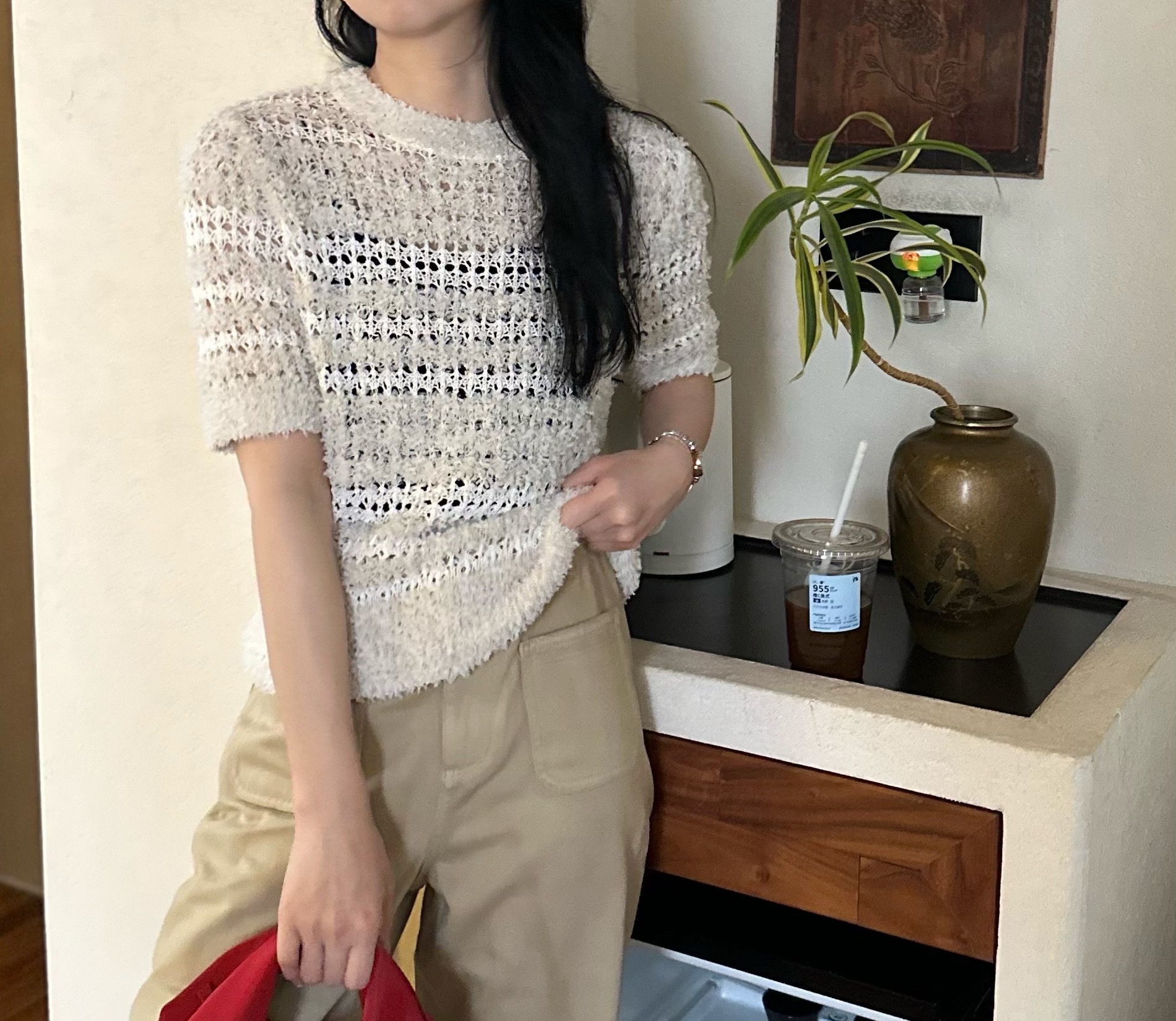 顺丰包邮洛诗琳12730夏季新款设计感花式撞色镂空针织T恤81681