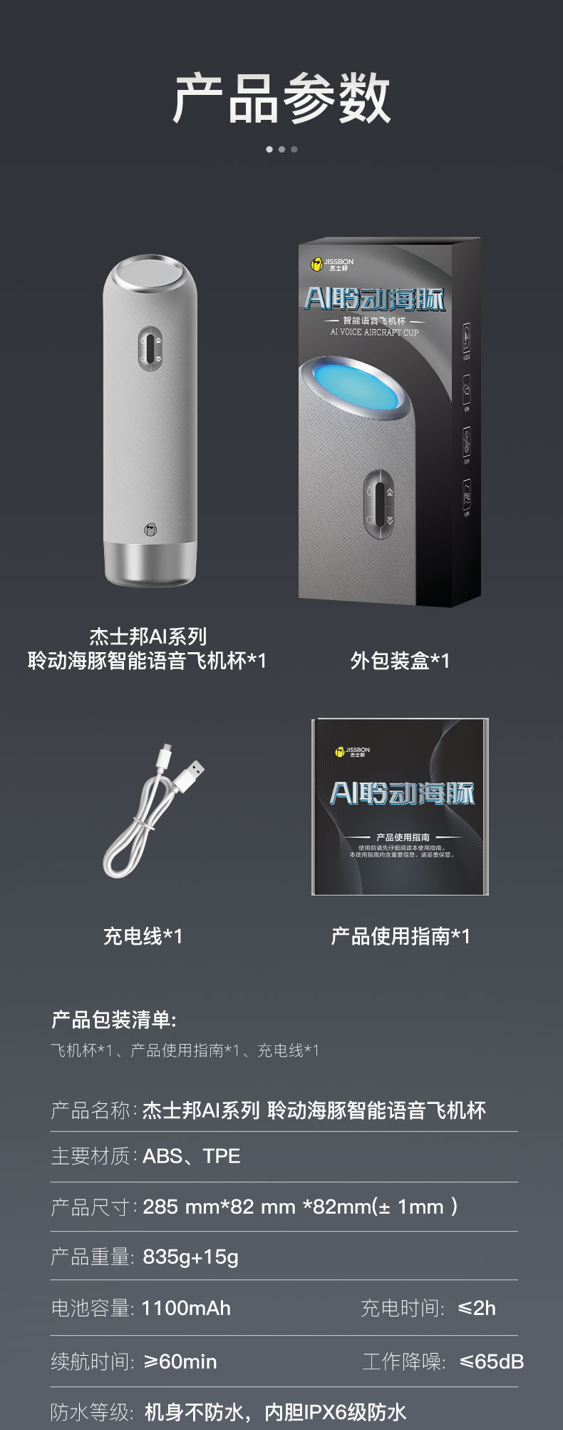 杰士邦AI系列聆动海豚智能语音飞机杯