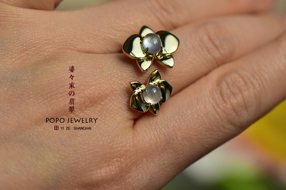 18K黄金翡翠白蛋/绿蛋兰花戒指