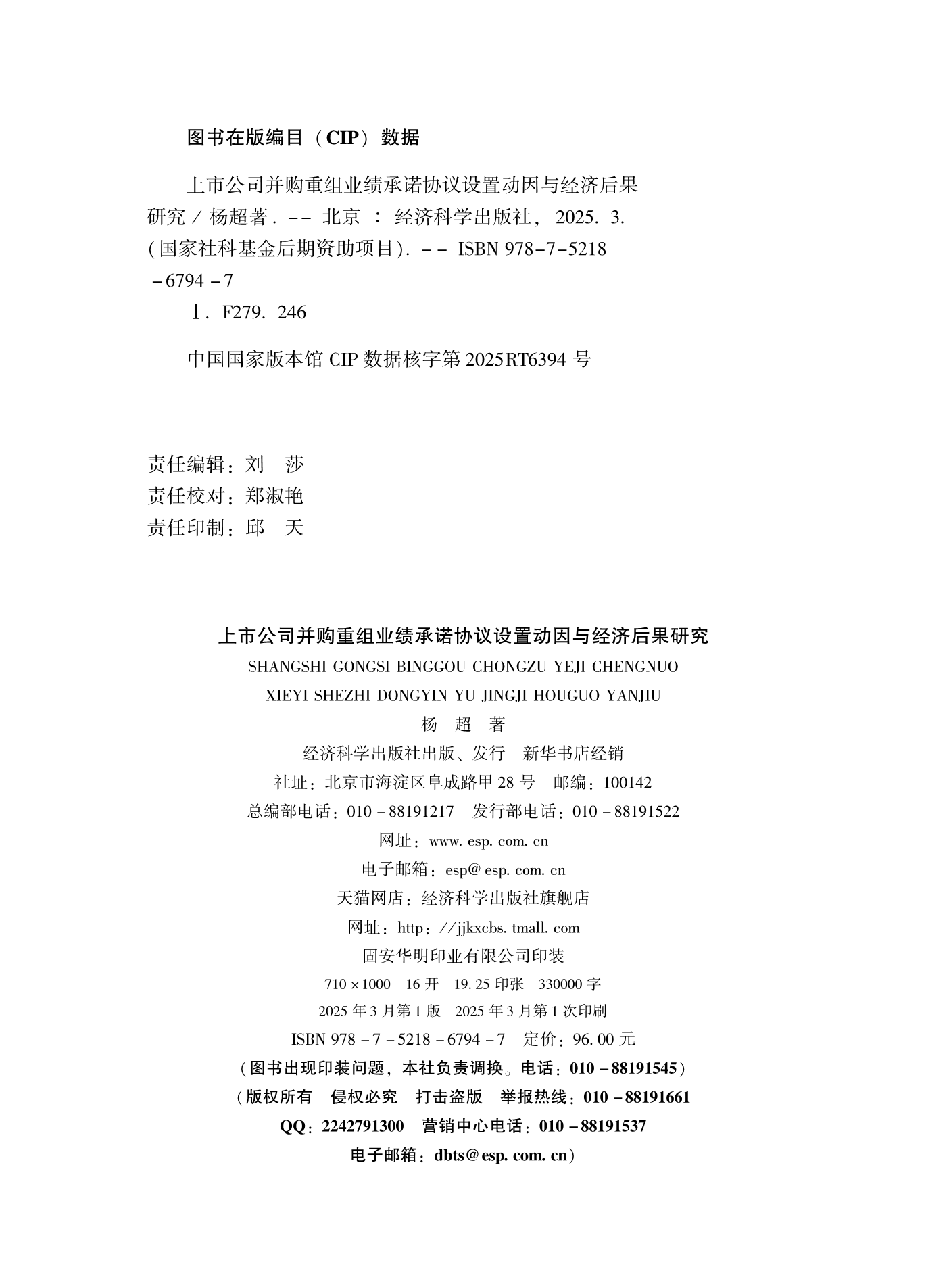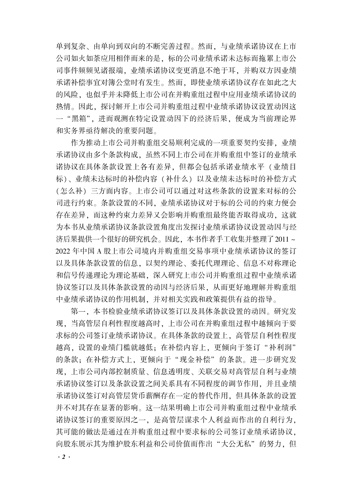 上市公司并购重组业绩承诺协议设置动因与经济后果研究