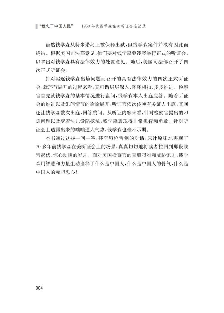 “我忠于中国人民” ———1950年代钱学森在美听证会全记录