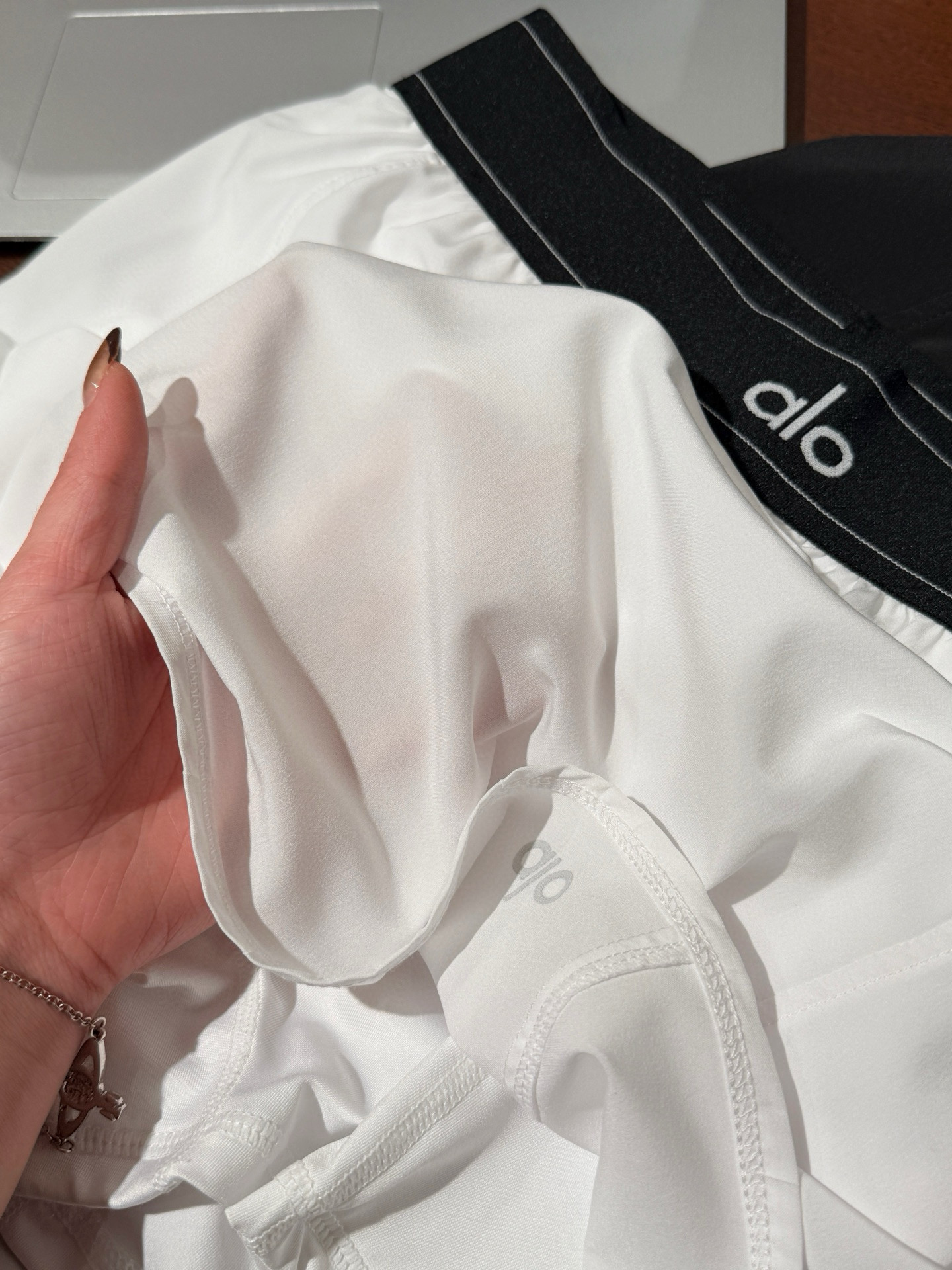 1⃣外层是更加轻盈的速干材质 轻薄如纱 有点若隐若现的半透明感觉