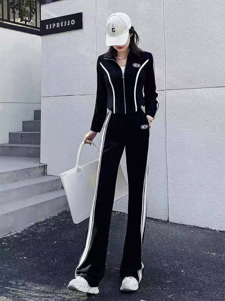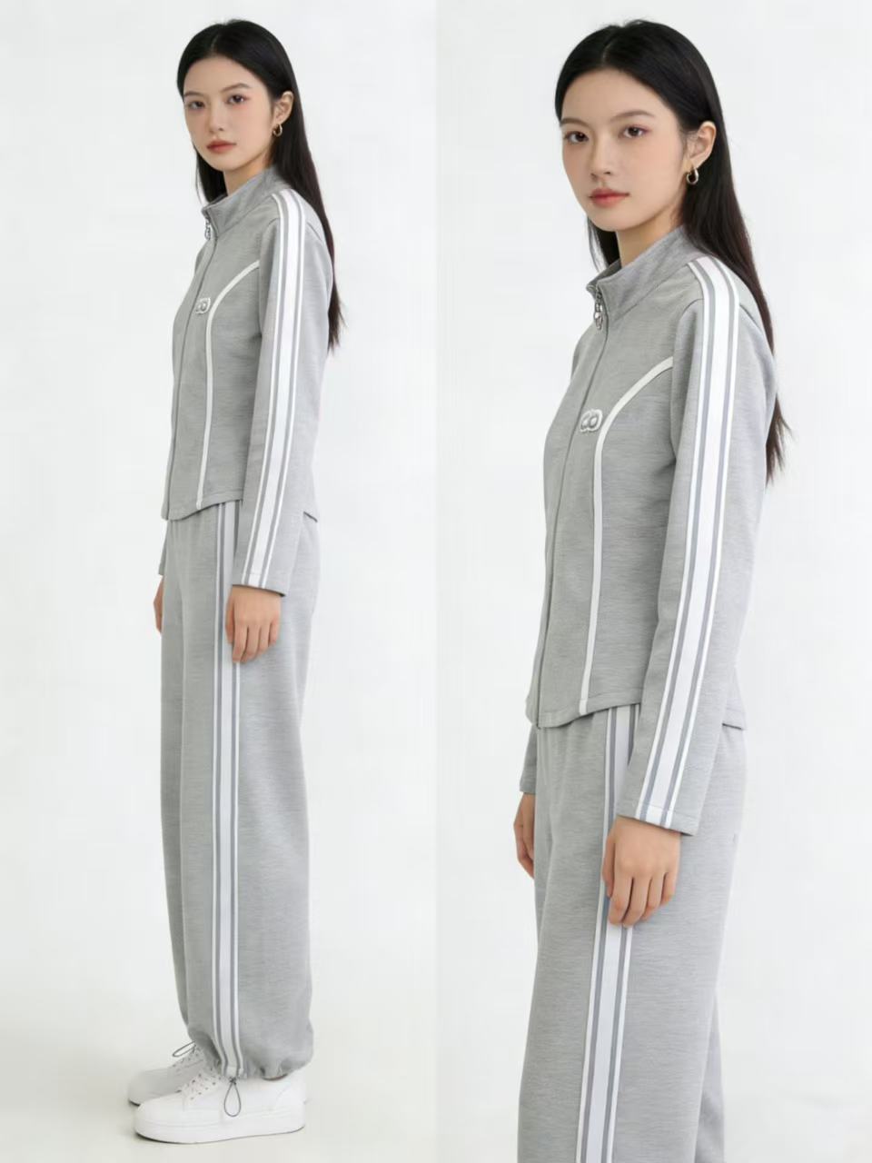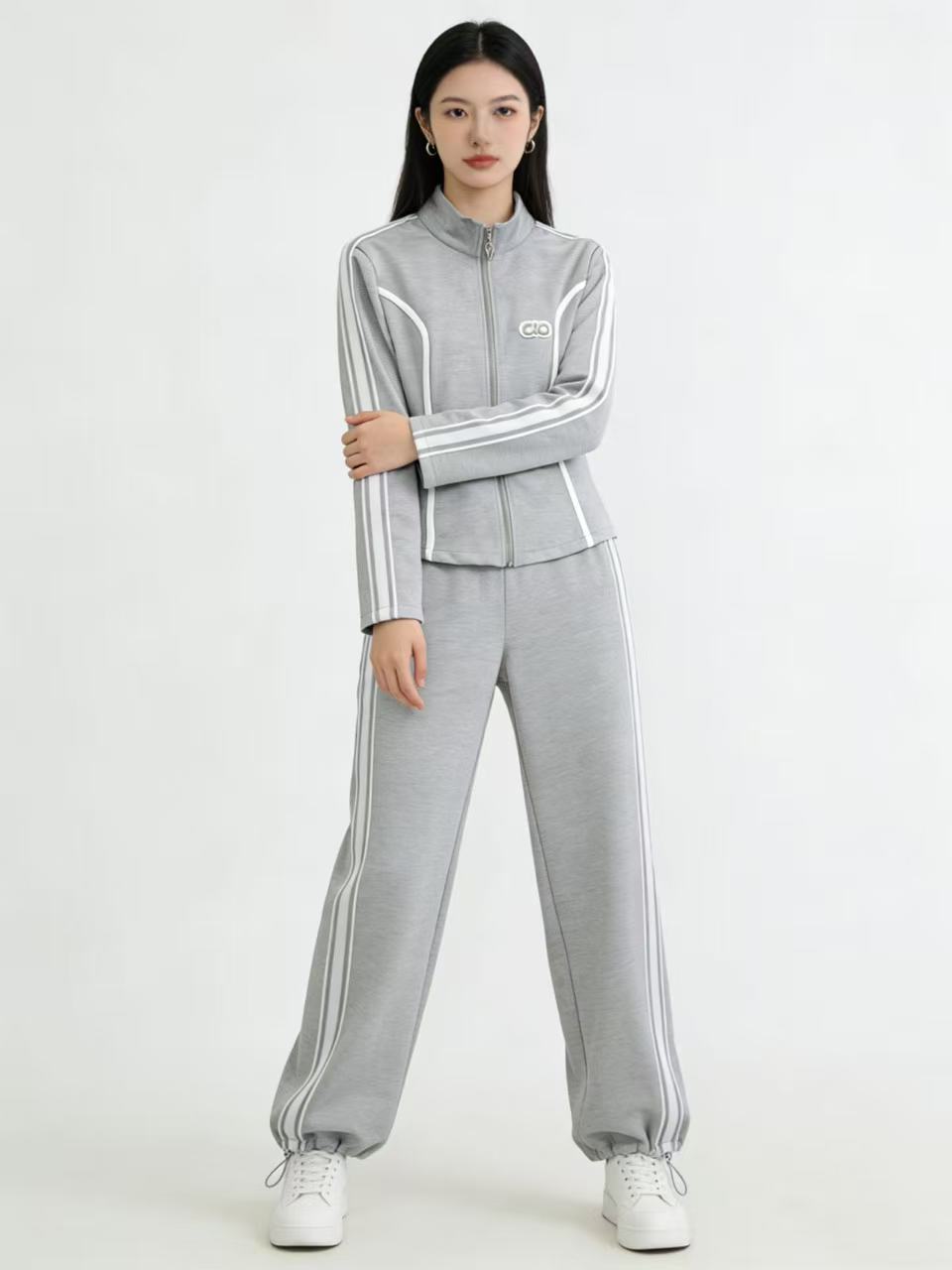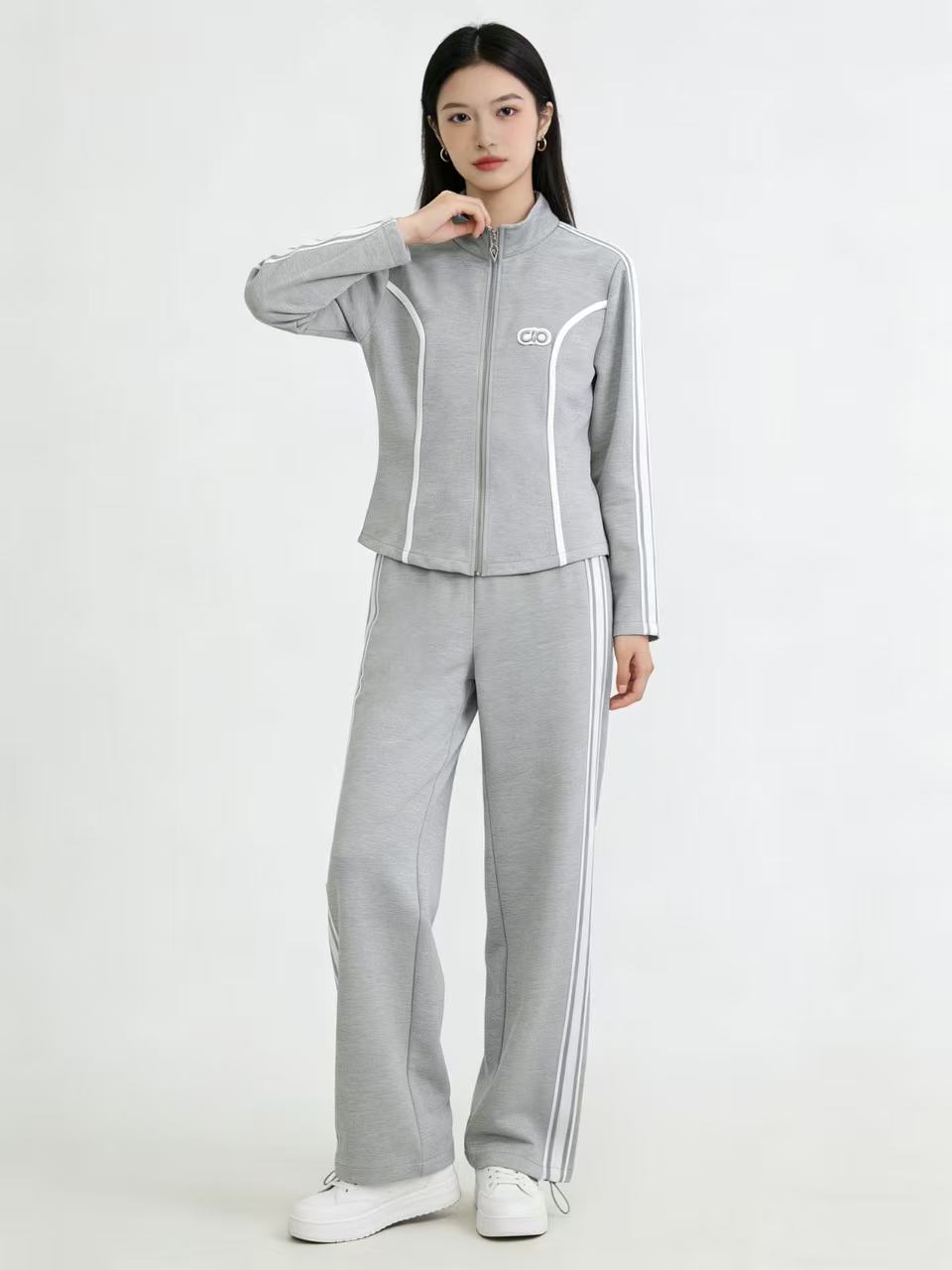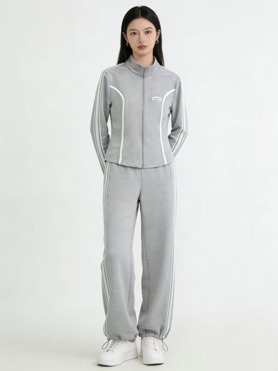 418良粉节|2026 活动爆款~【自营】衣周期~(二件套)Q09休闲立领修身外套➕两穿可抽绳休闲裤套装-喜出