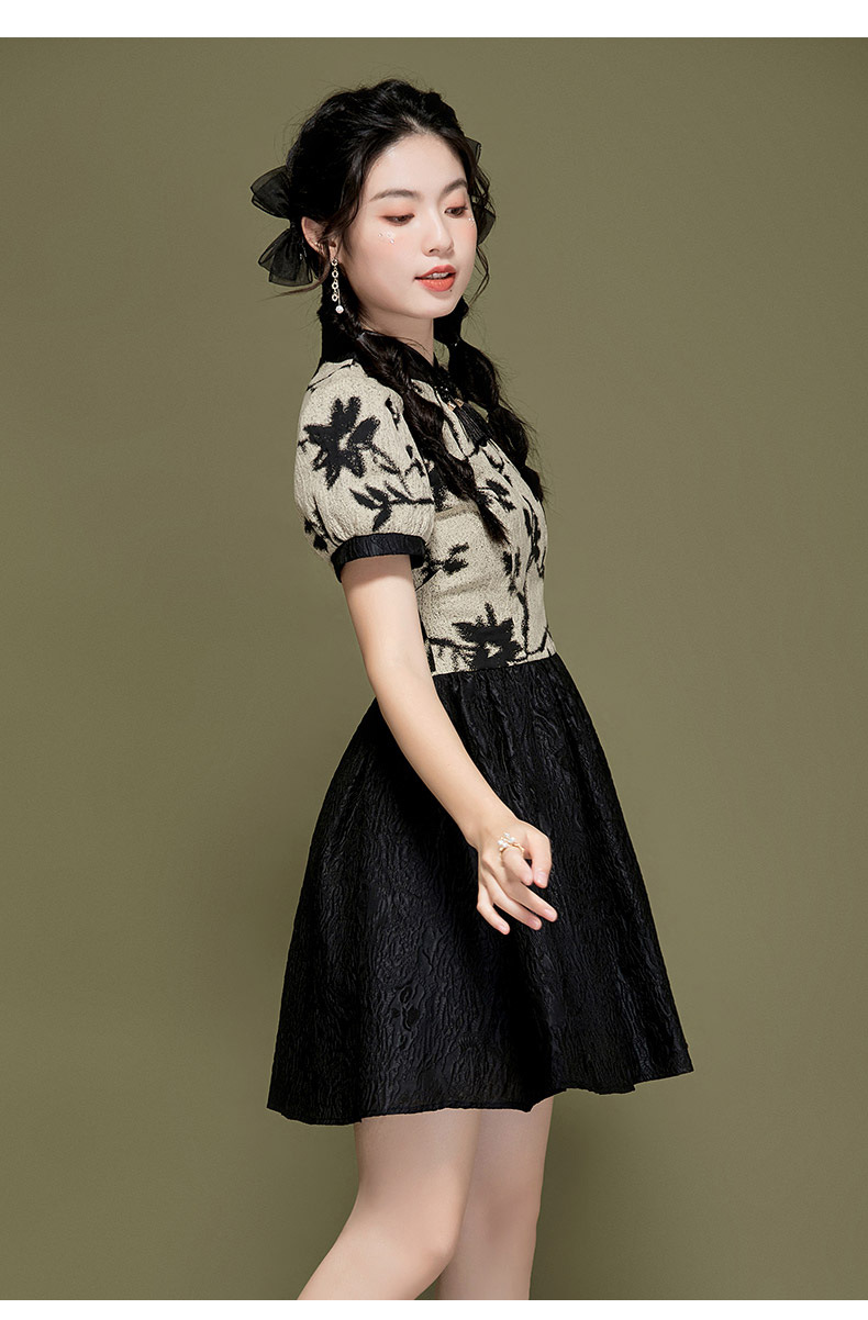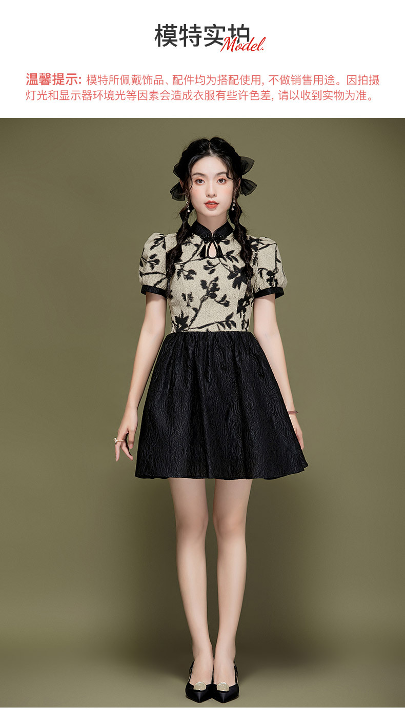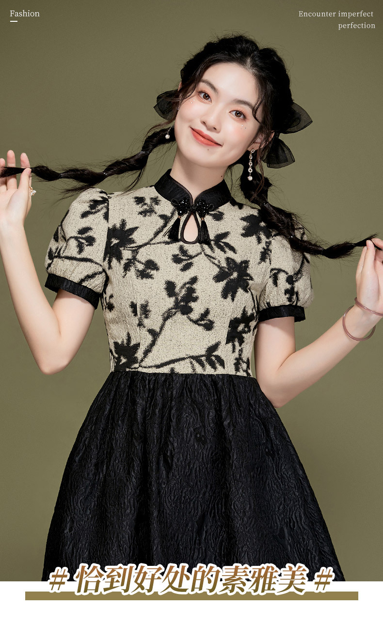 春夏新款,提花拼接日常改良旗袍连衣裙OY-220418