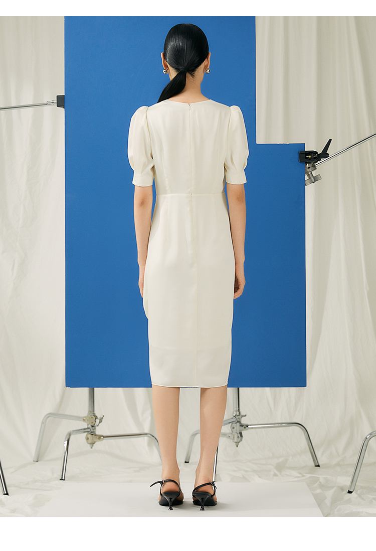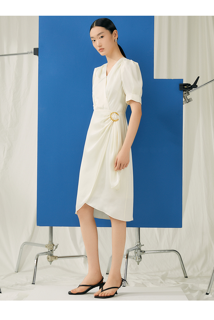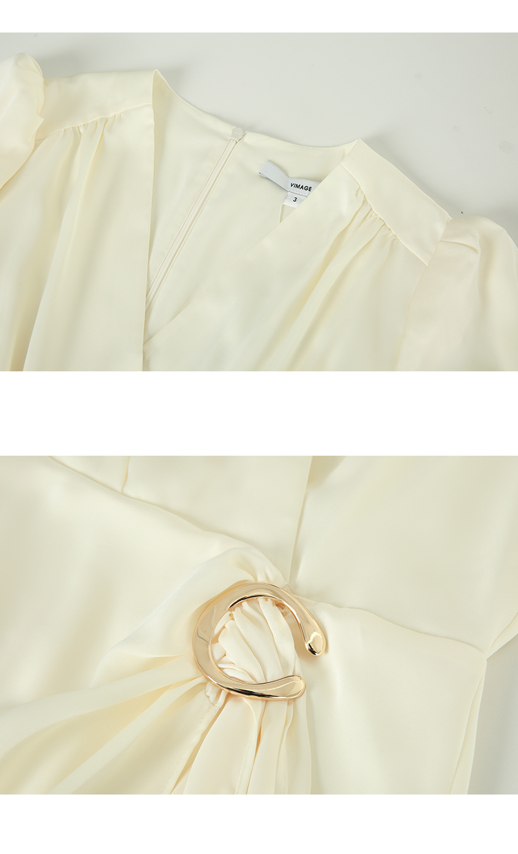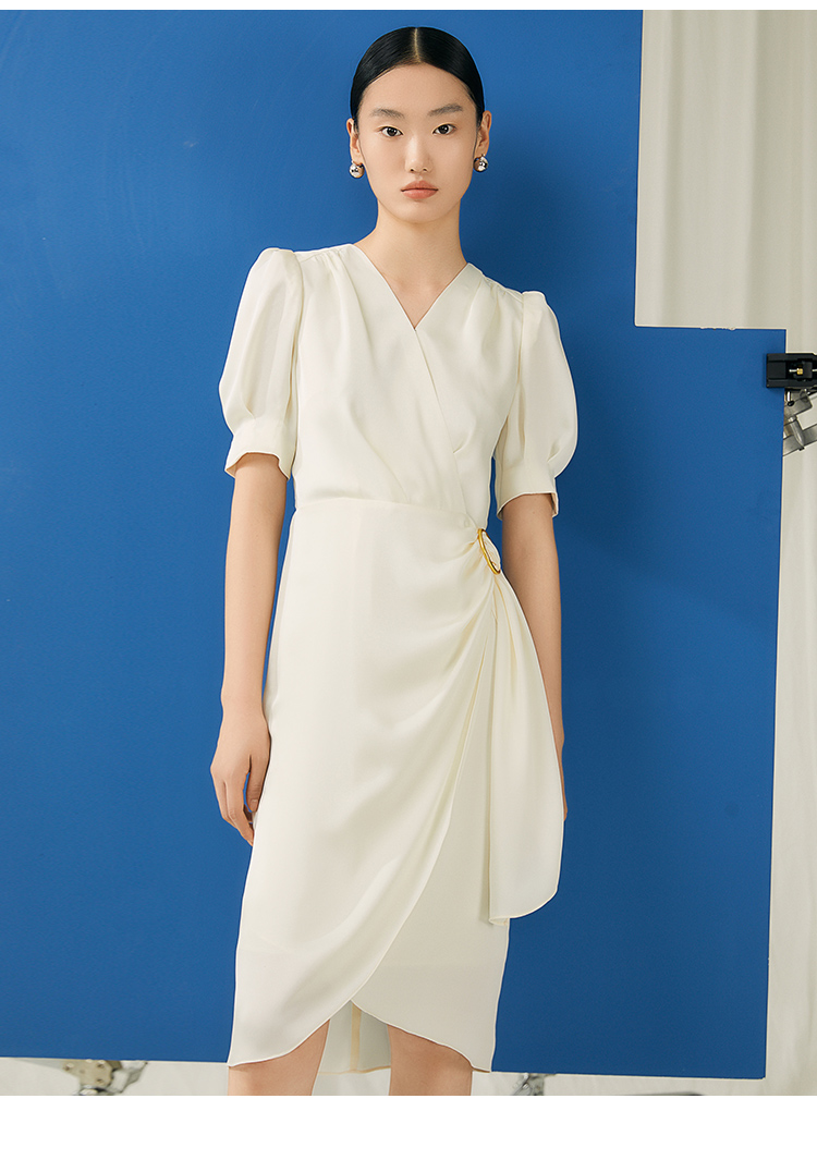 VIMAGE纬漫纪夏季新品纯色百搭洋气褶皱收腰连衣裙V1907527