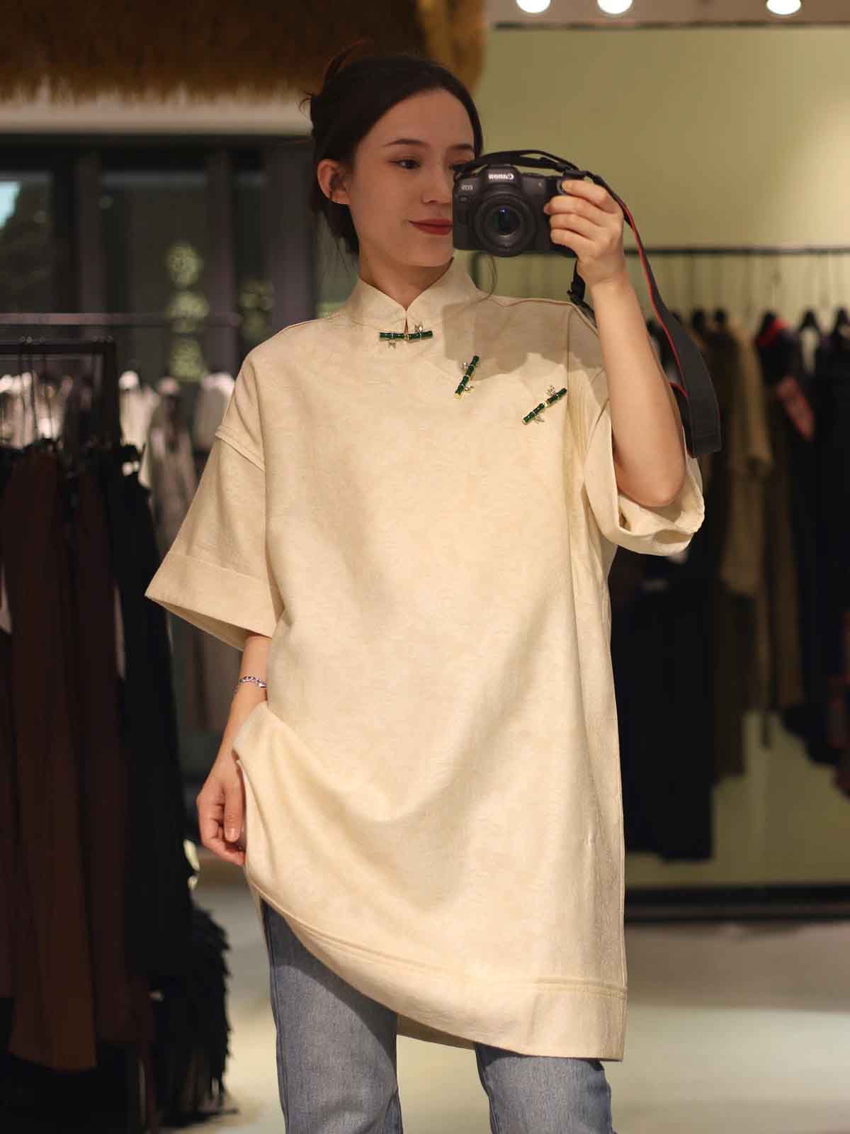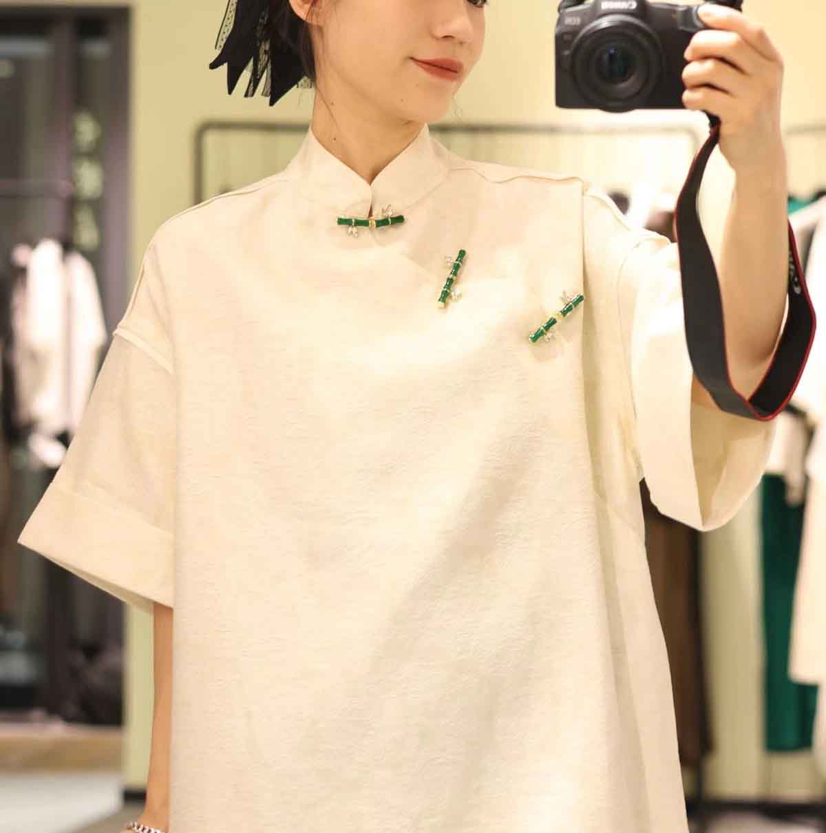 「新中式丝麻短袖长衫」一眼就知道是高档货,很衬气质!