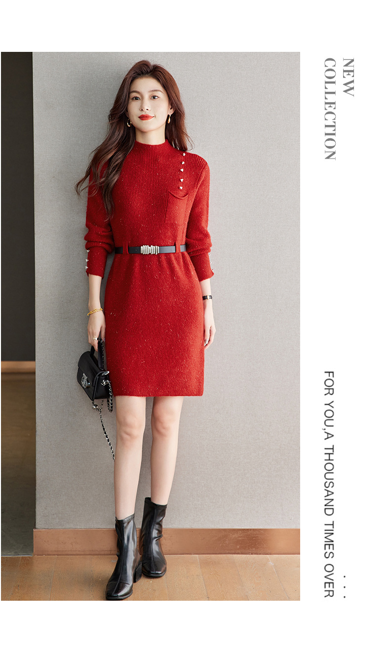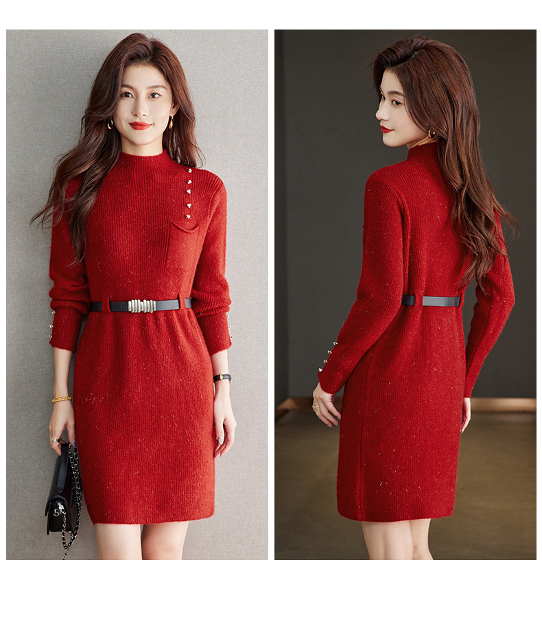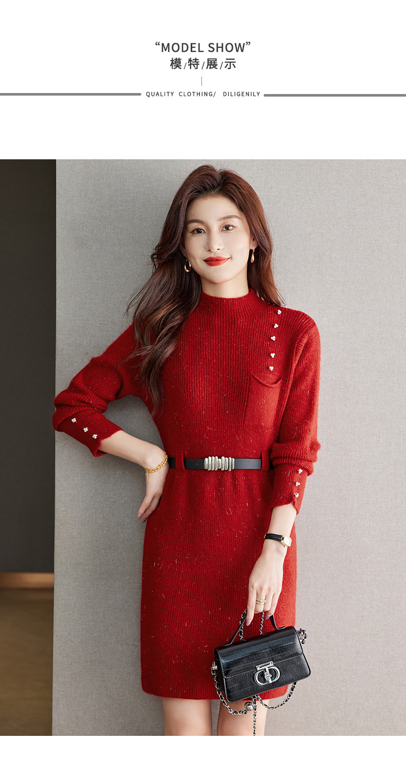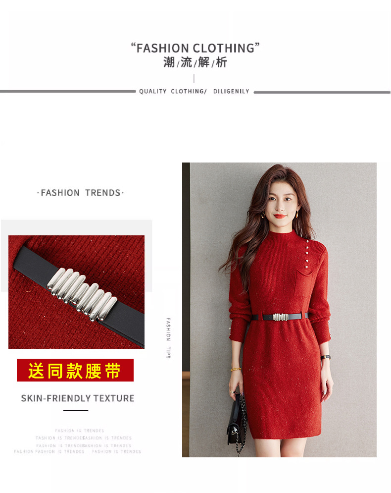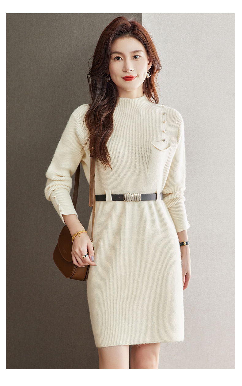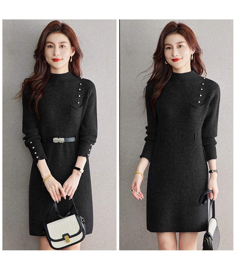 CC-22-205好看半高领毛衣裙女中长款2024秋冬新款遮屁股小个子针织打底裙女