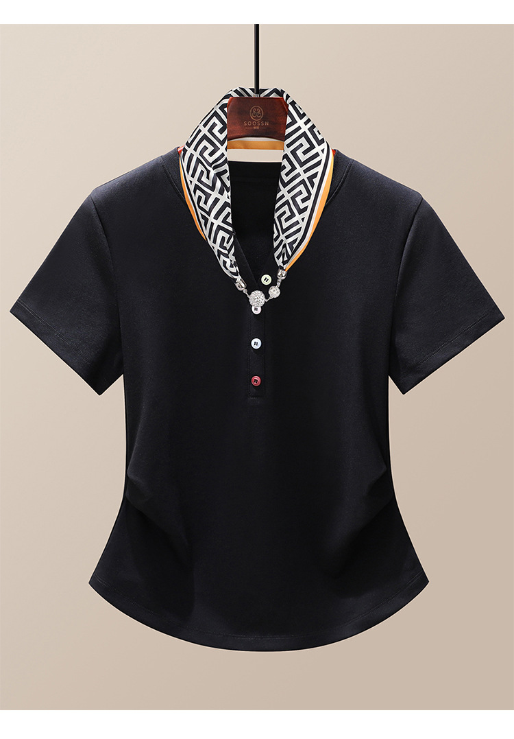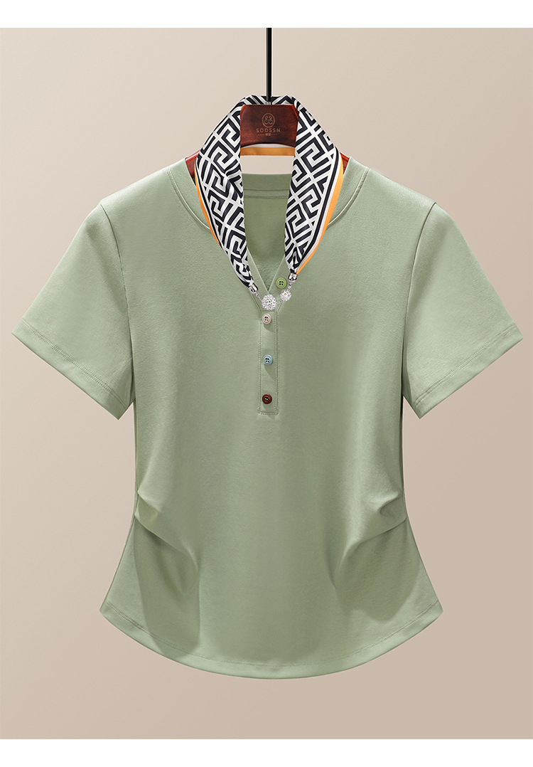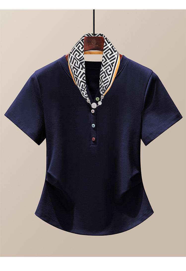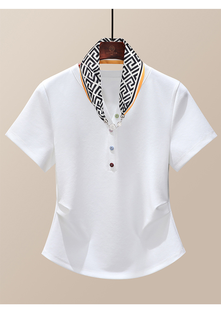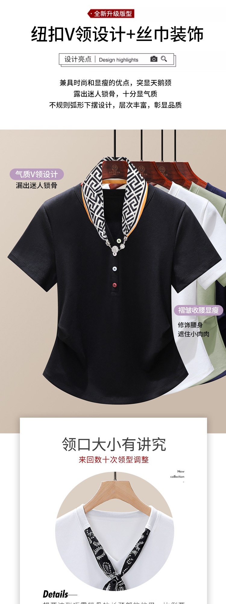 「自」全新升级【铂金会员109/天猫149/差价40】(52412)洛诗琳丝巾彩色纽扣t恤2025年夏季新款高级感修身显瘦上衣
