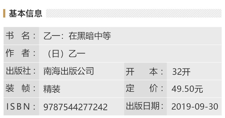 完成《在黑暗中等》时,“无限感慨”足以代表我的全部心情。——乙一