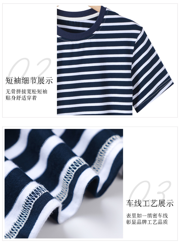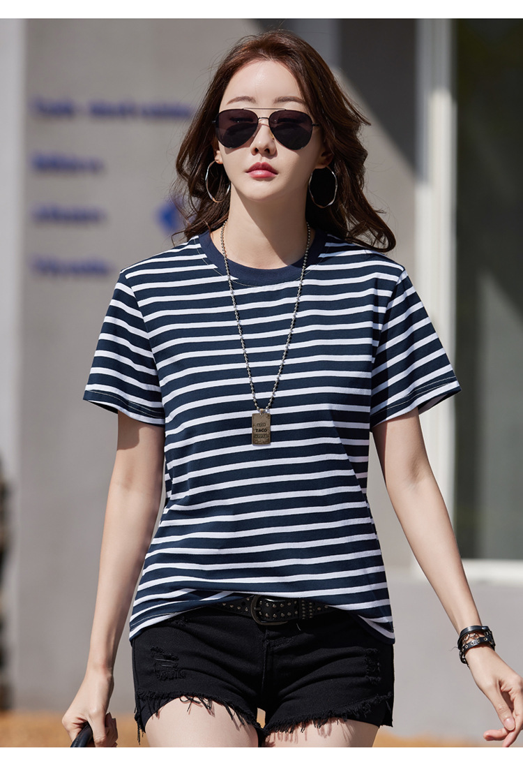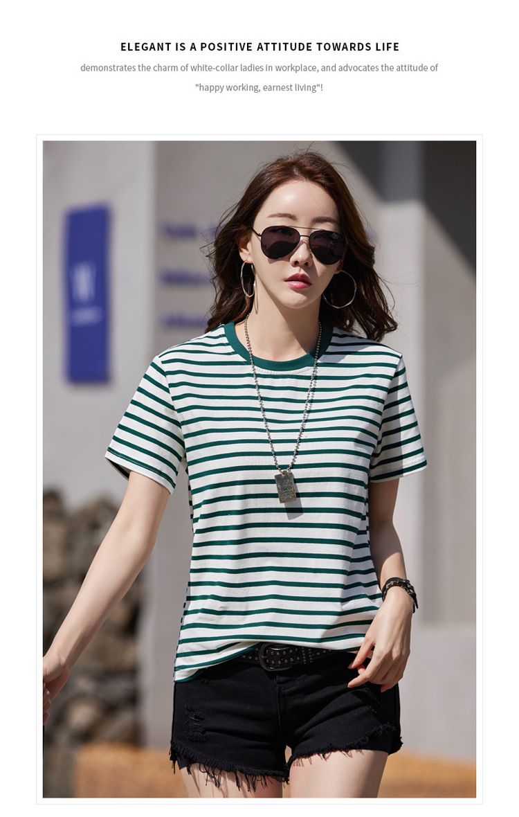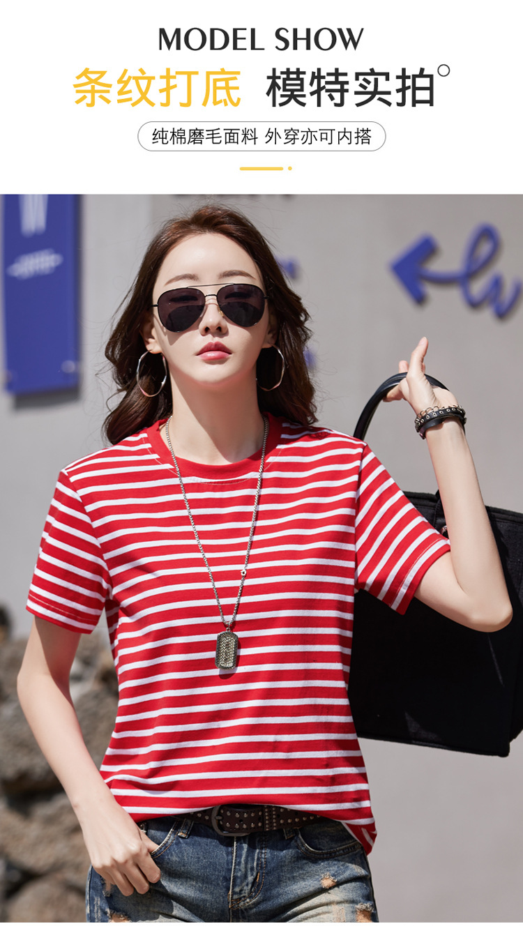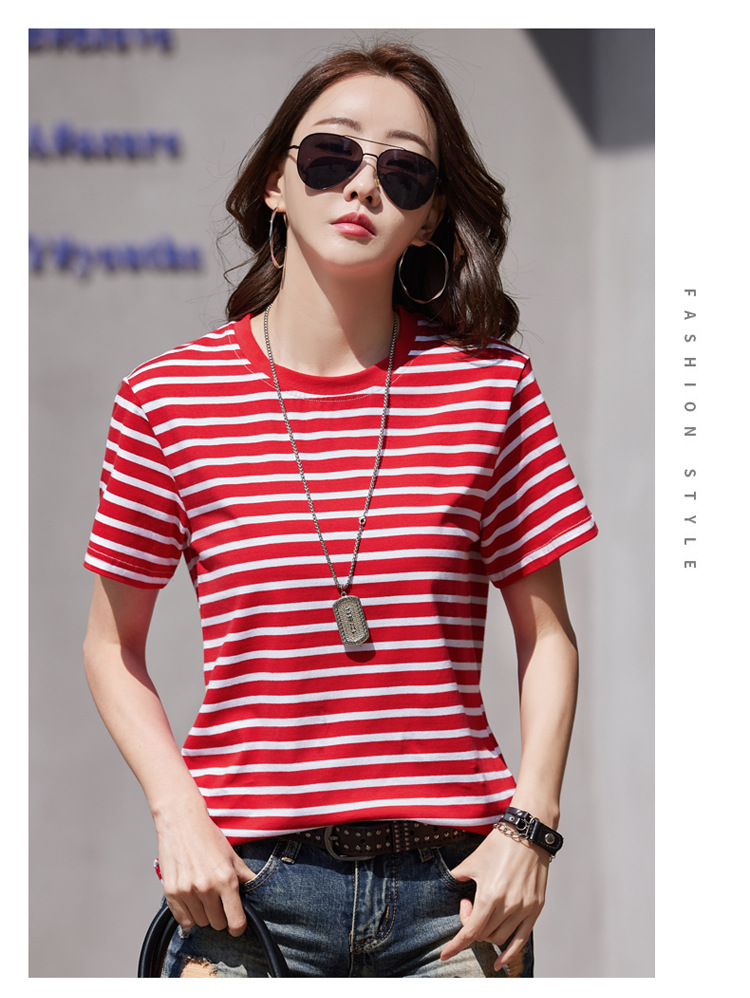 雀说短袖T恤女纯棉夏季韩版宽松大码条纹圆领上衣服AL9847
