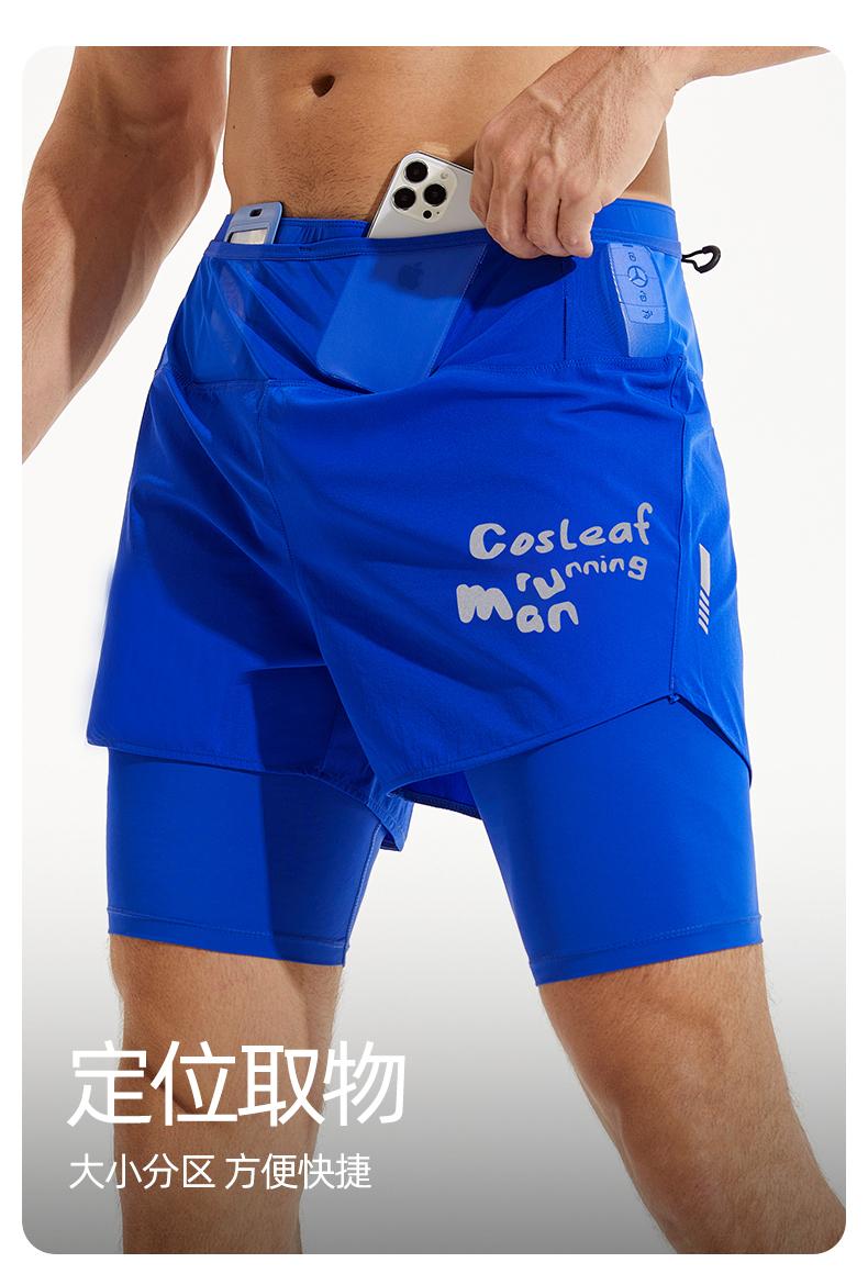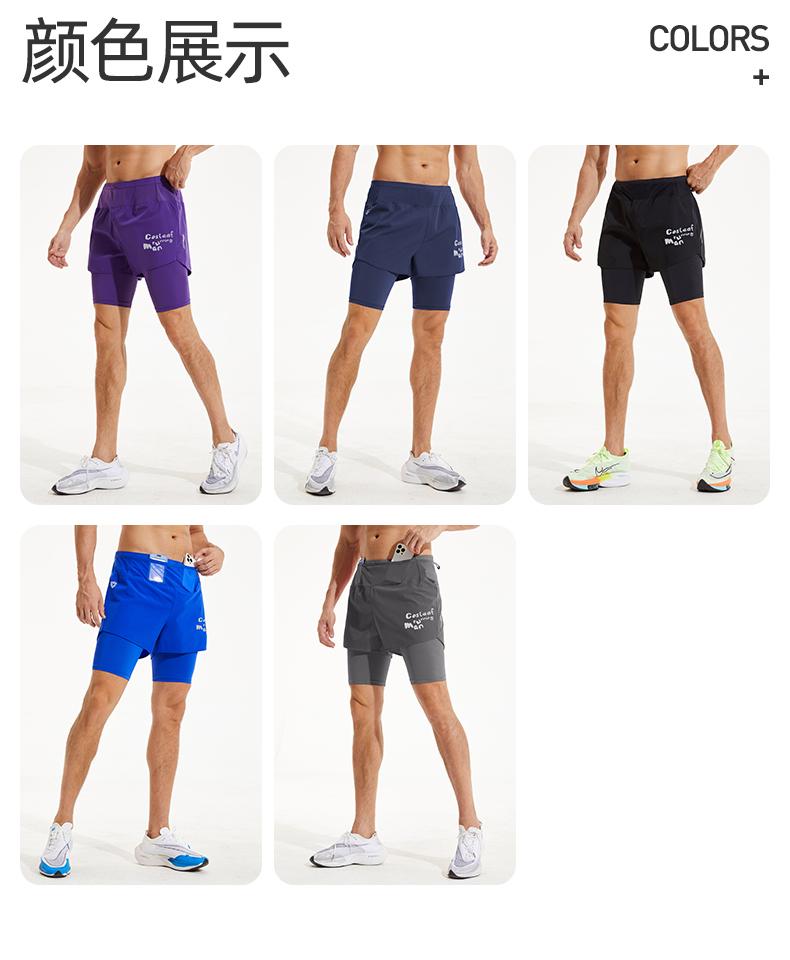 【上新】科里芙假两件运动健身全腰围口袋裤男士春夏宽松短裤