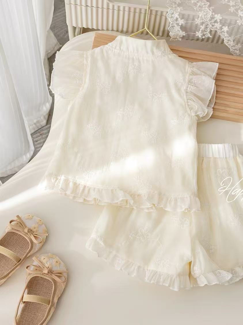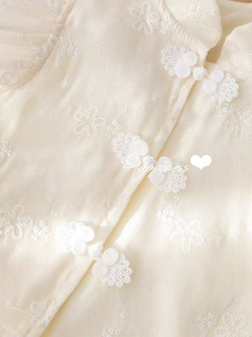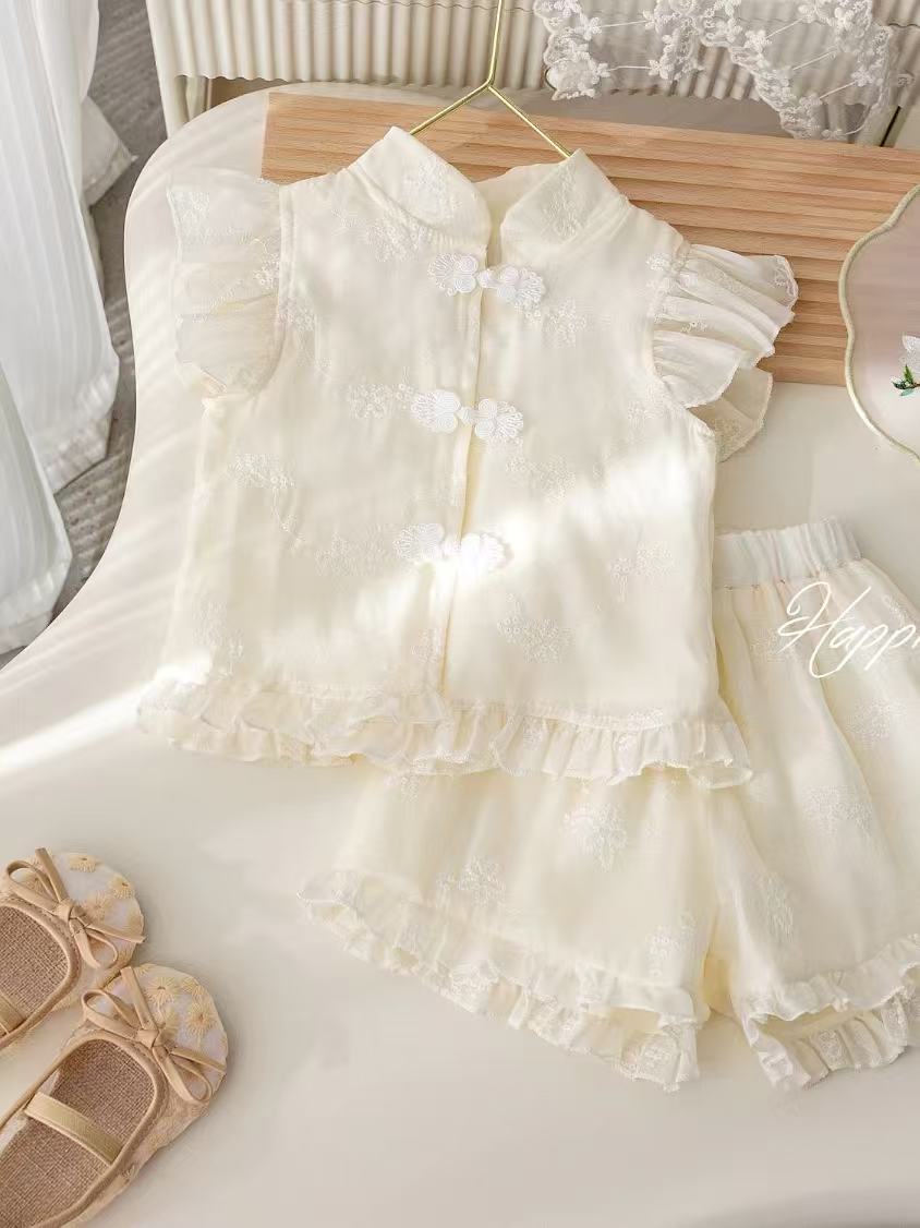【孤品捡漏】(套装)G207女童米色刺绣新中式两件套-喜出
