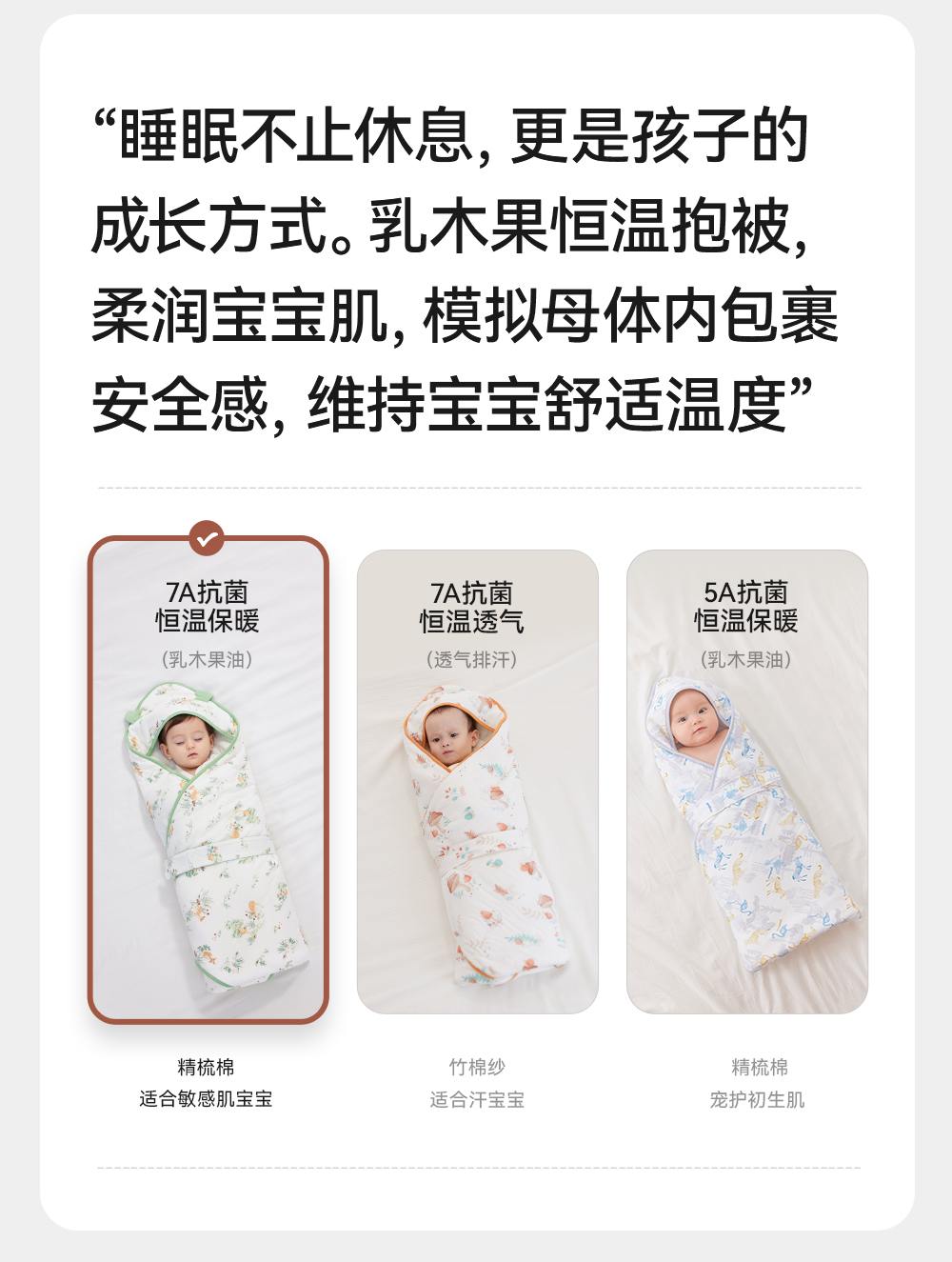 英氏【乳木果】新生儿包被秋季初生儿包单恒温7A抗菌新款春秋款婴儿包被