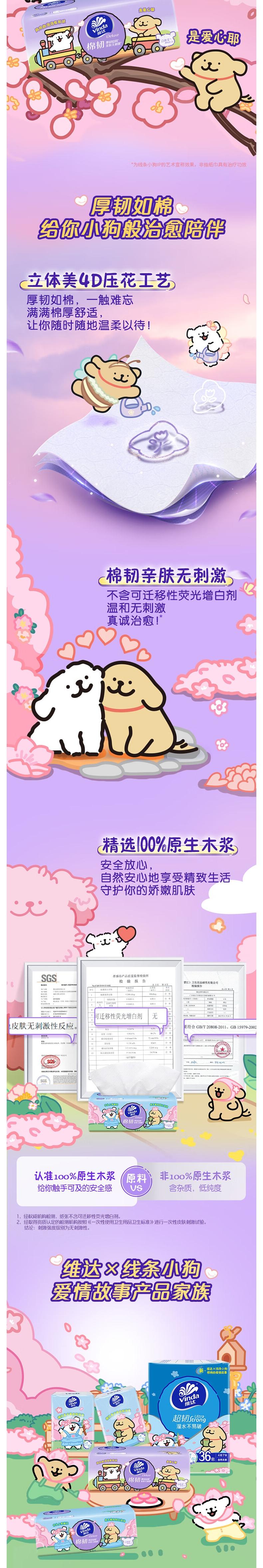 Vinda维达 线条小狗联名棉韧立体美压花抽纸3层100抽*20包M码 RW-TM100C20E