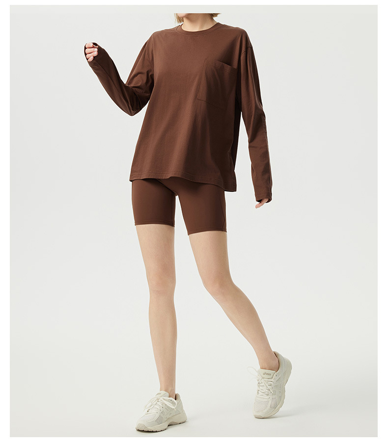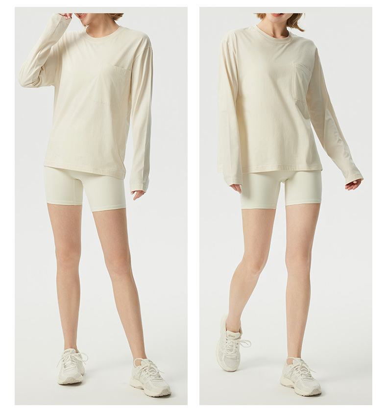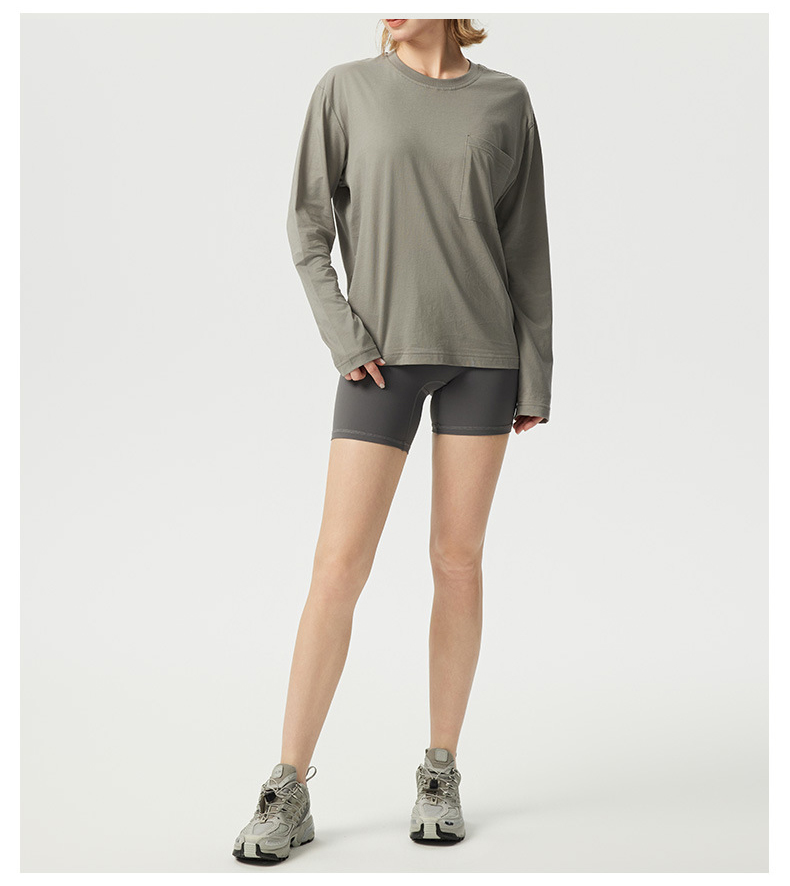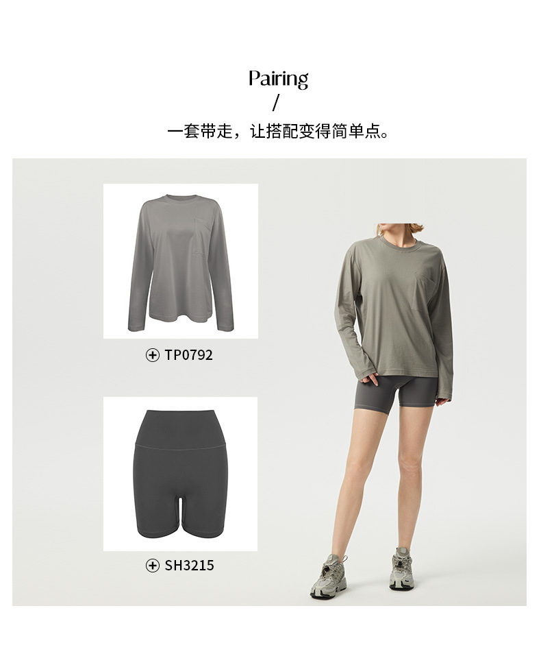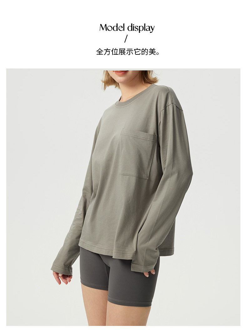 跃牌【周游世界系列】秋冬新款瑜伽服女美国PIMA棉高士线口袋圆领长袖柔软亲肤透气 TP0792