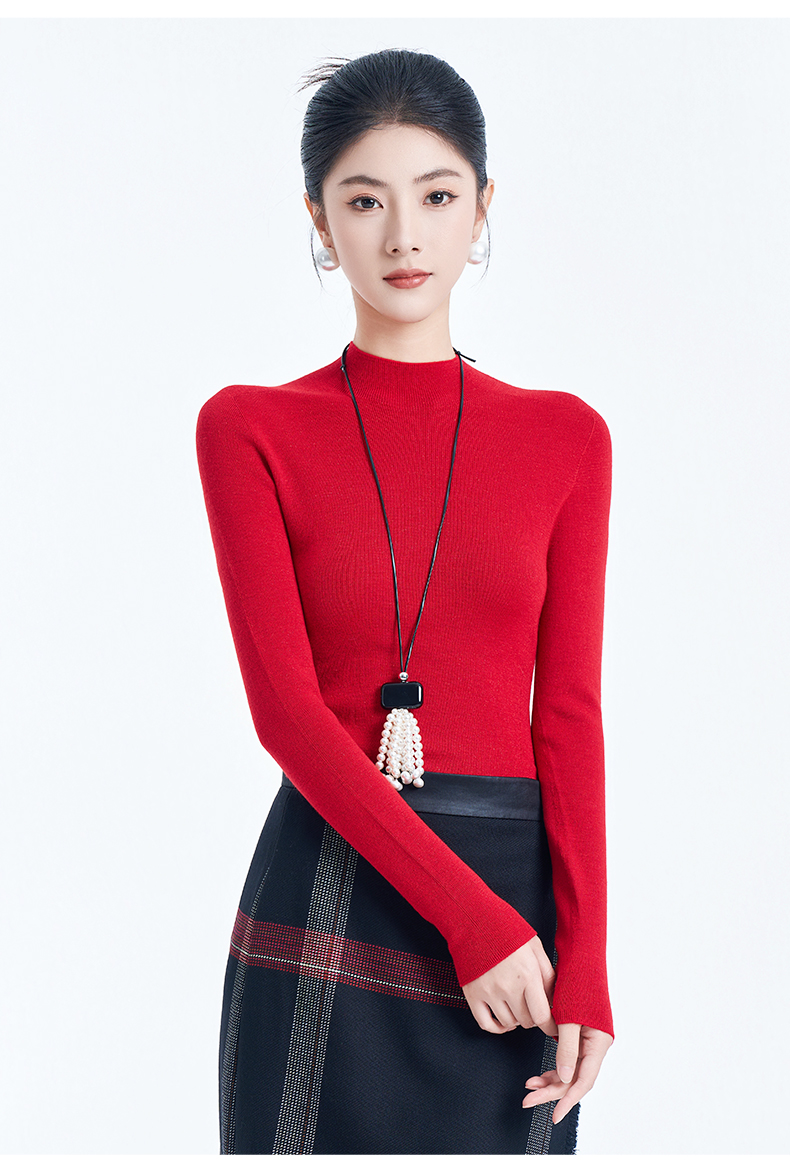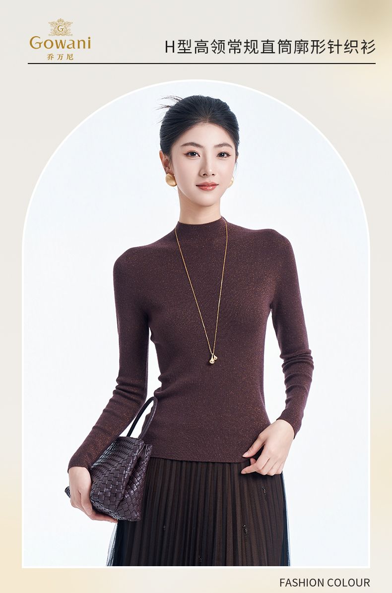 【多色可选】乔万尼2025冬新品保暖半高领精致感金属丝修身打底羊毛衫ED4M813