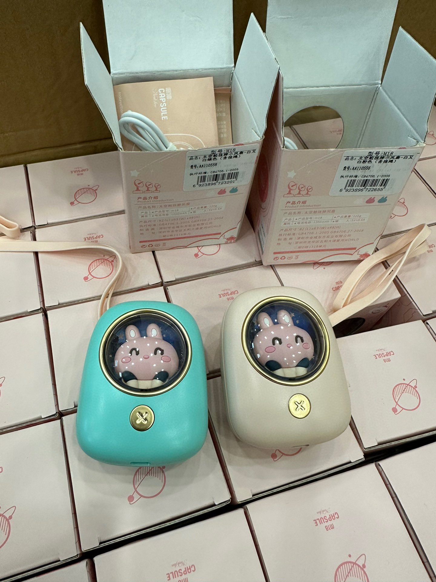 太空舱卡通挂脖式便携无叶手持迷你小风扇