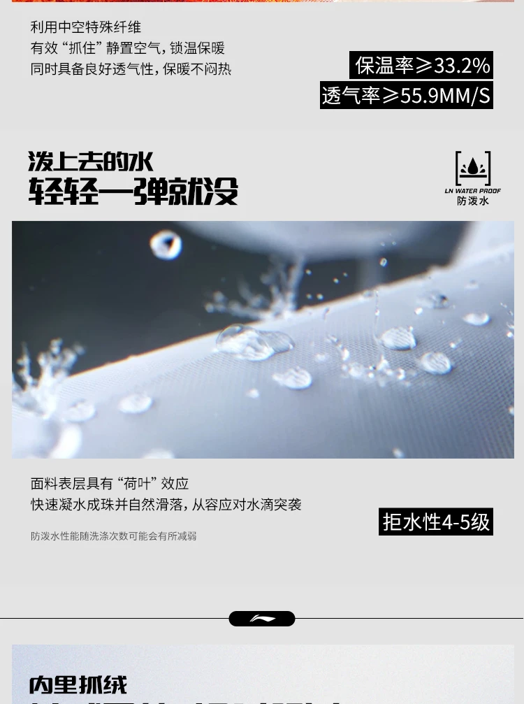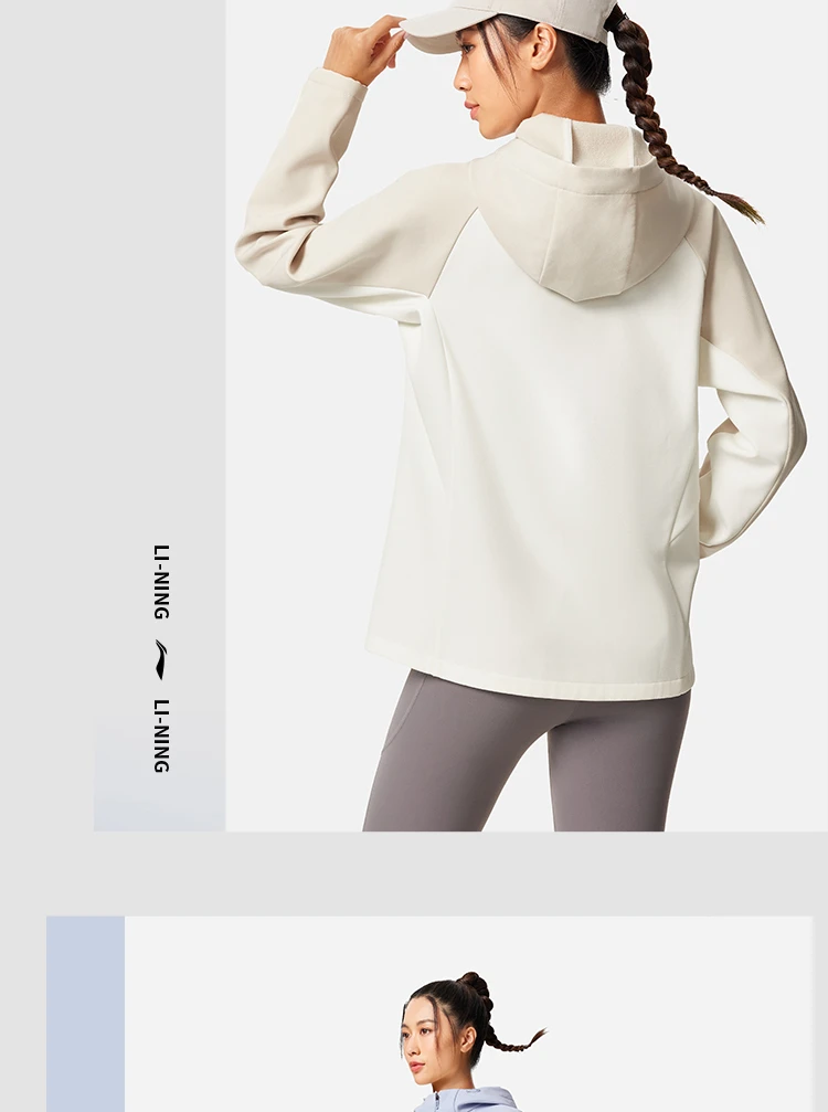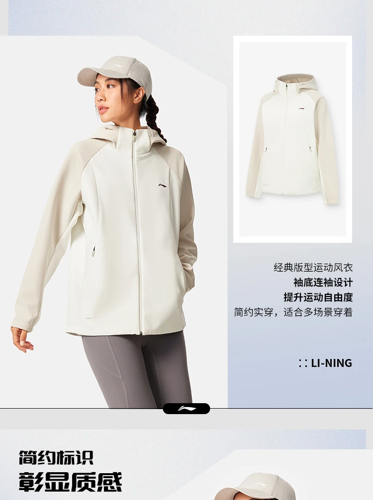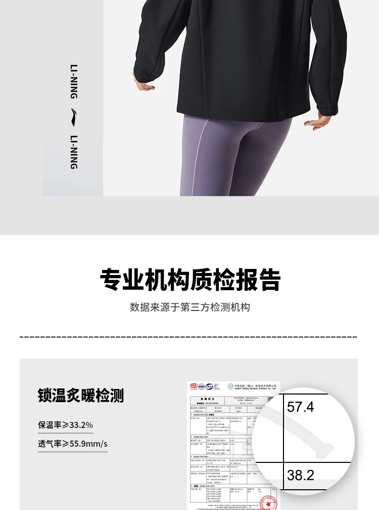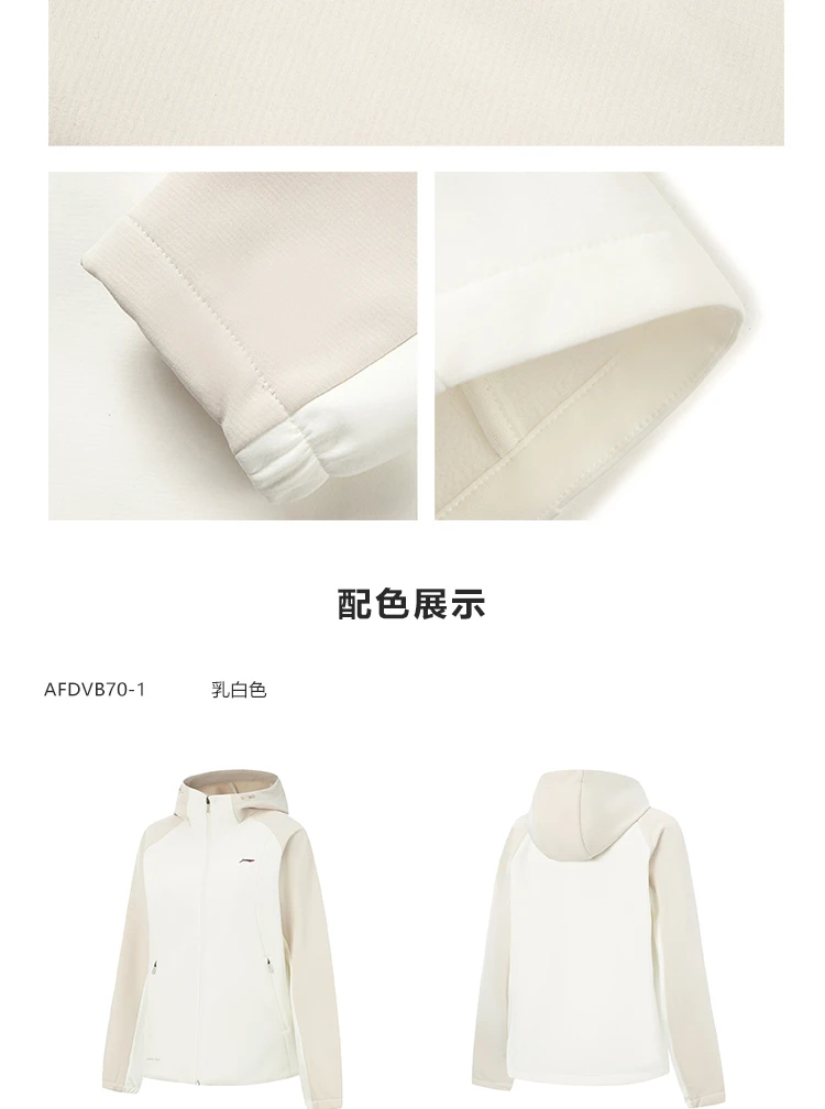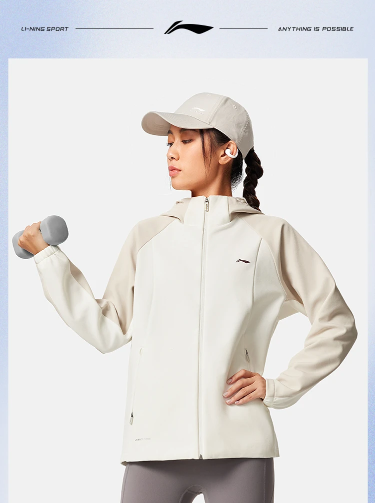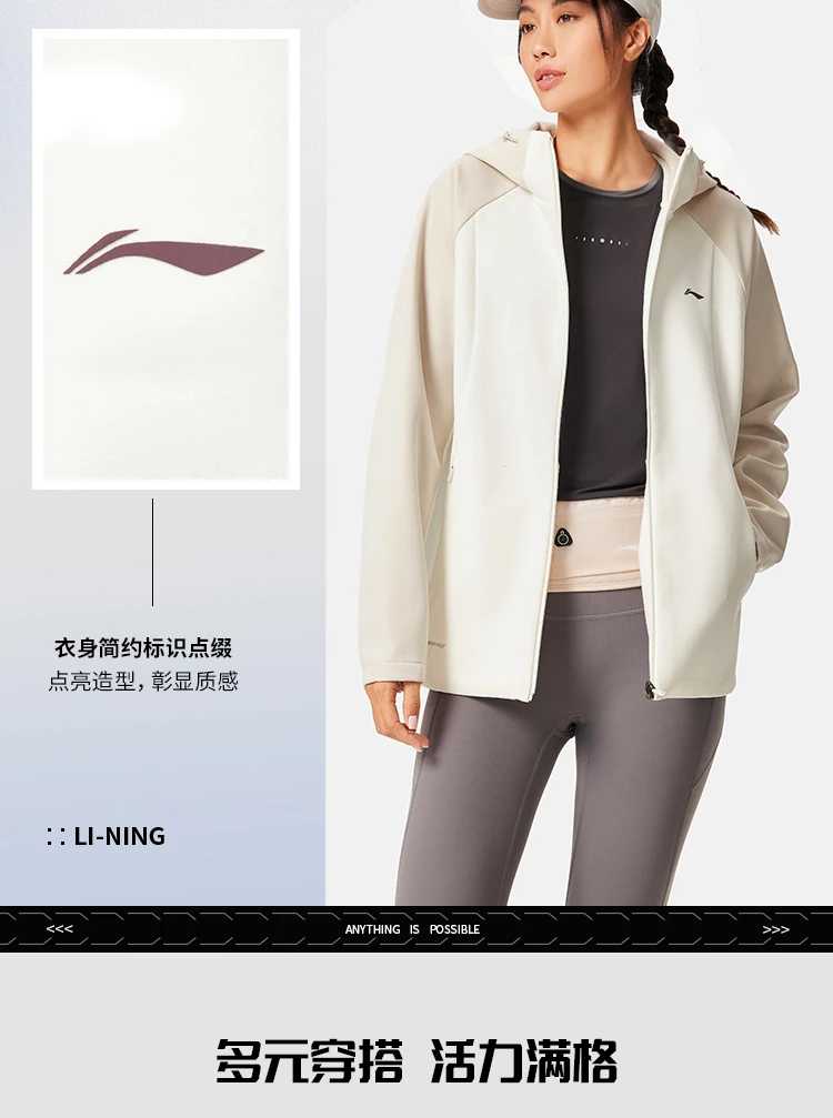 李宁女子加绒保暖防泼水立体裁剪宽松运动风衣AFDVB70