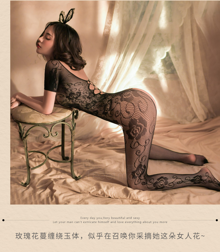 【情趣内衣】霏慕性感镂空提花开裆连身袜7509