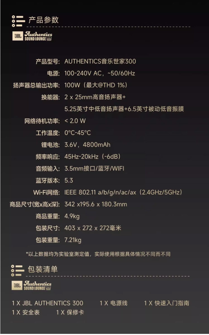 JBL 音乐世家300 (AUTHENTICS300) 黑色