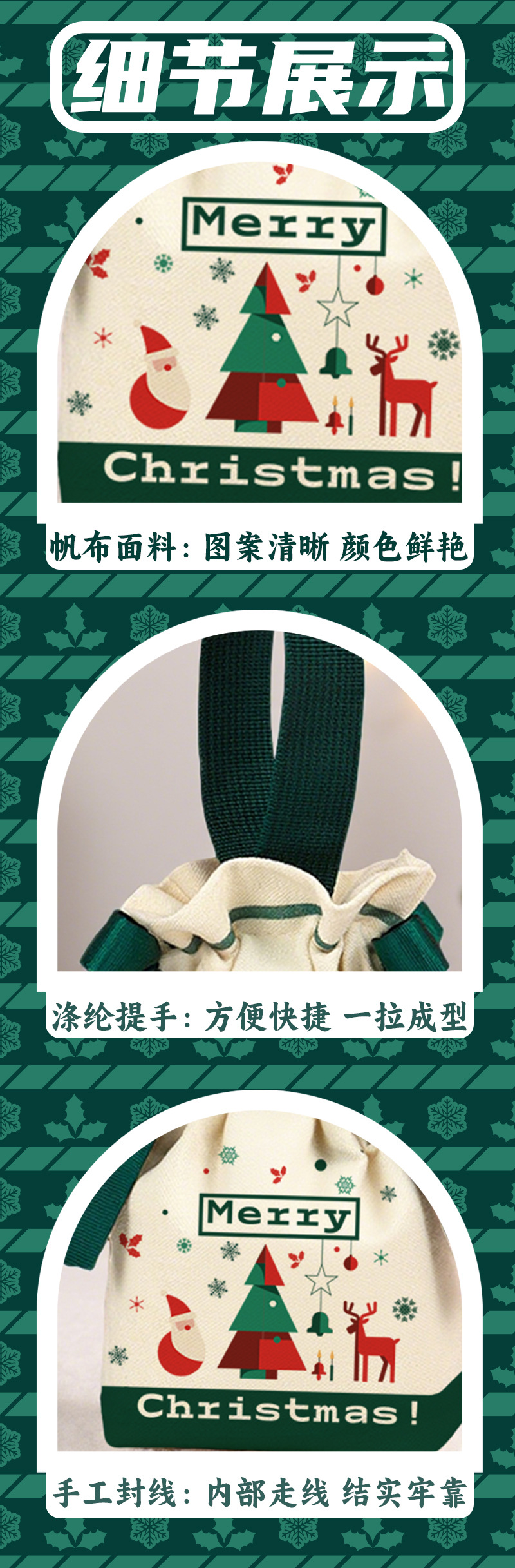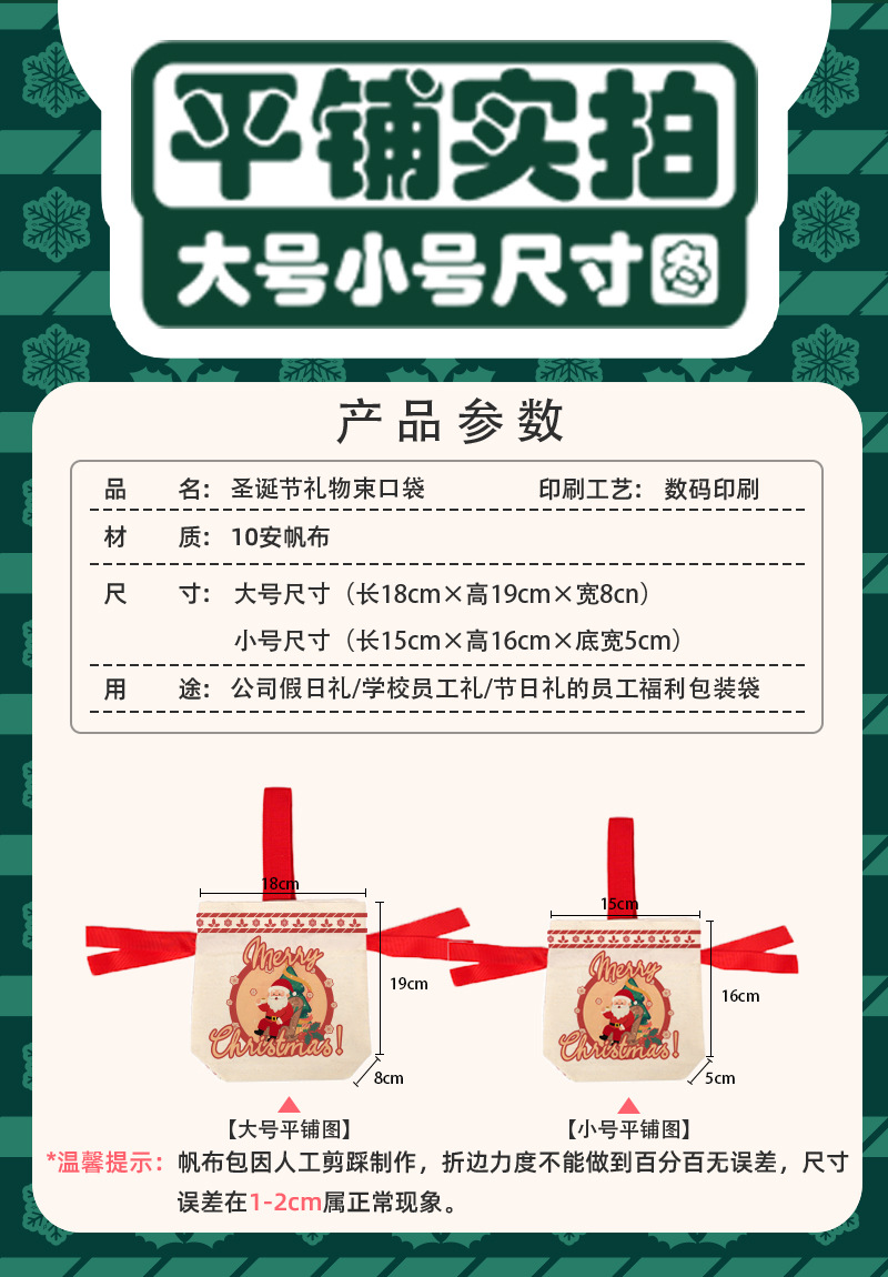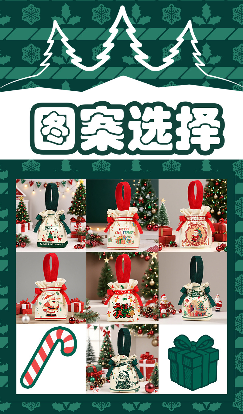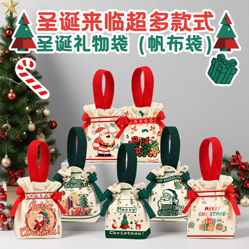 【 圣诞氛围!高颜值 | 质感帆布 | 手提便携 | 多用装礼】圣诞节创意伴手礼袋平安夜苹果包装袋圣诞礼品袋手提糖果帆布袋子。hb