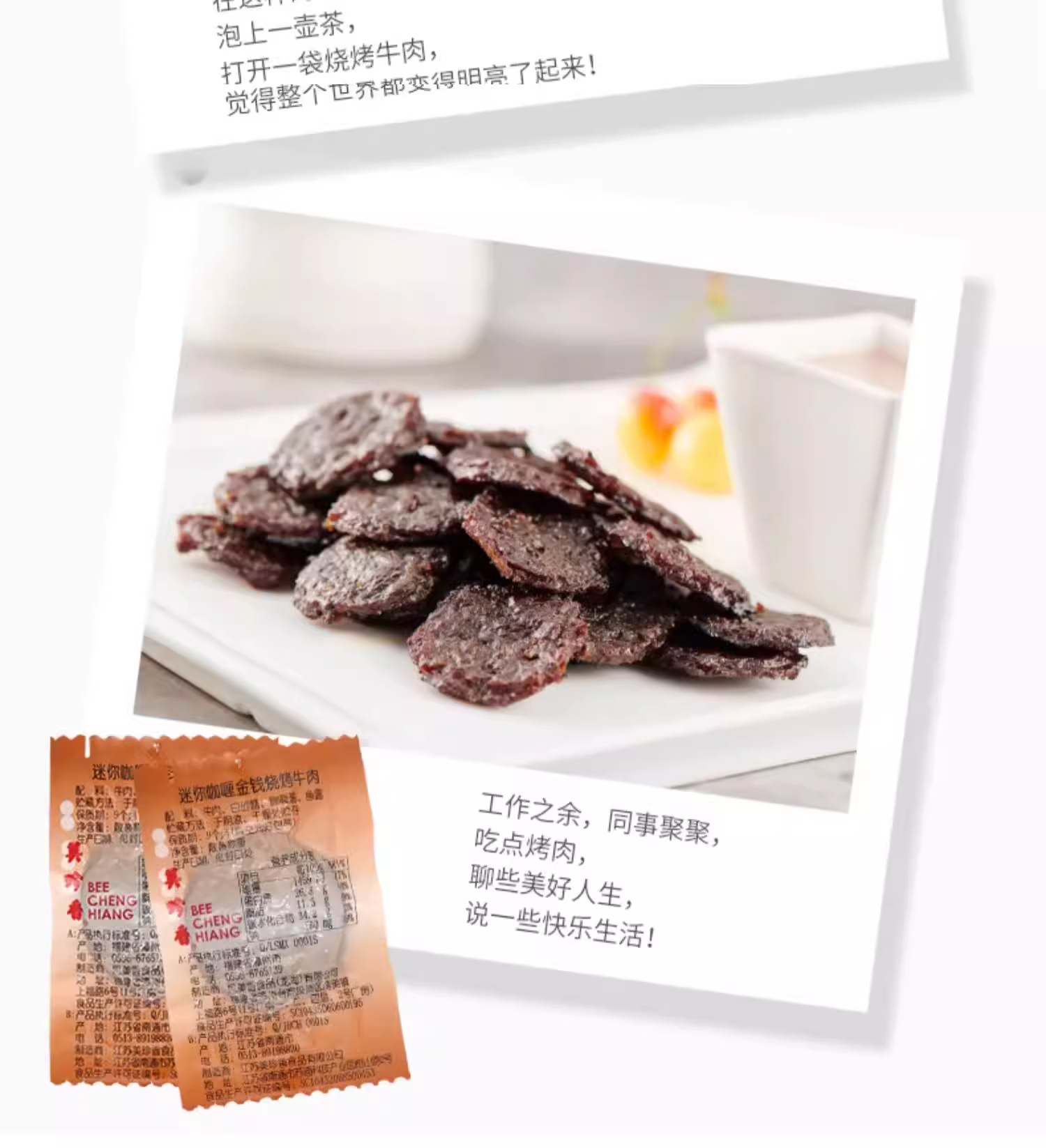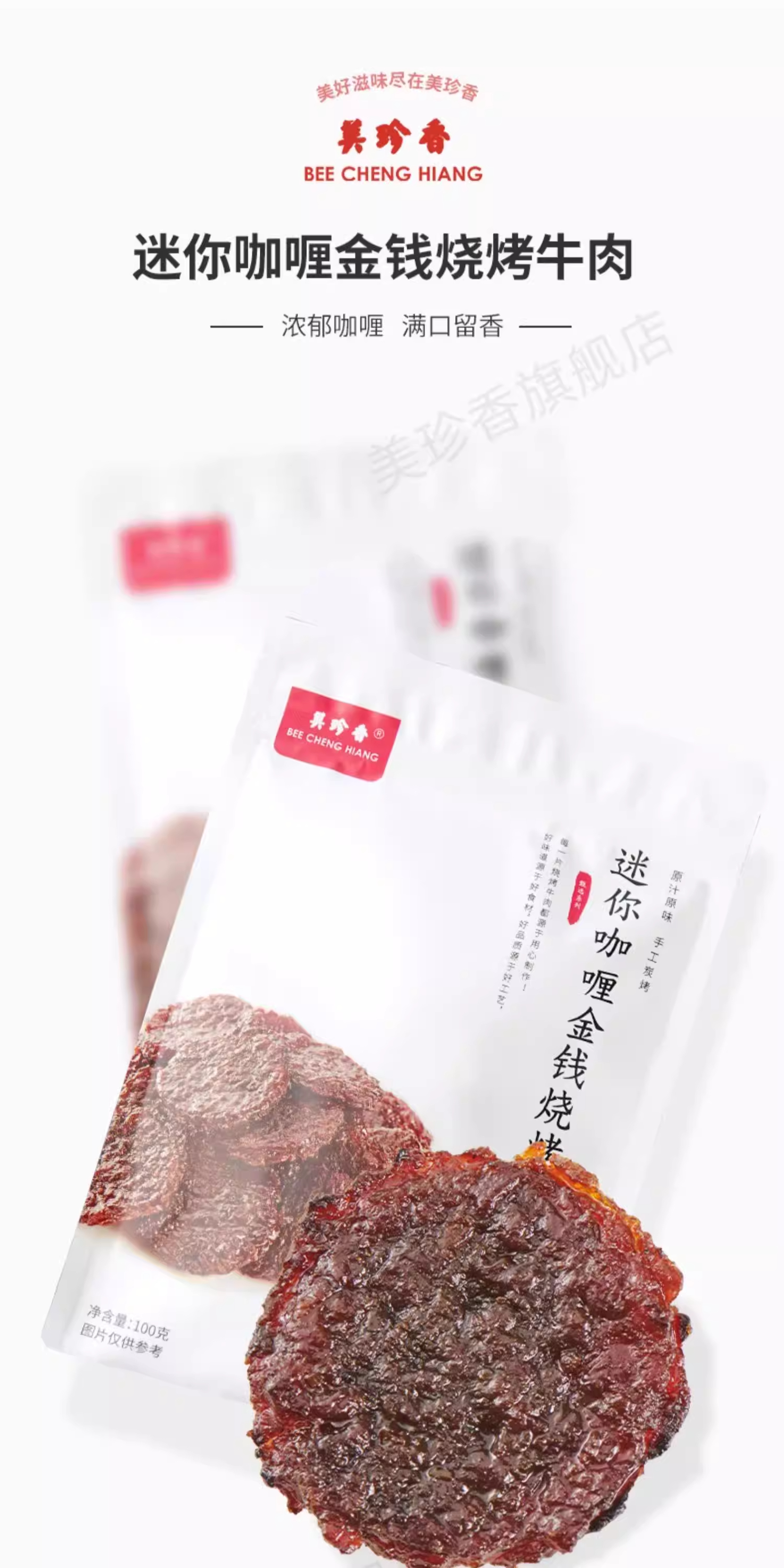 美珍香迷你咖喱金钱烧烤牛肉100g*2熟食非牛肉脯牛肉干零食即食