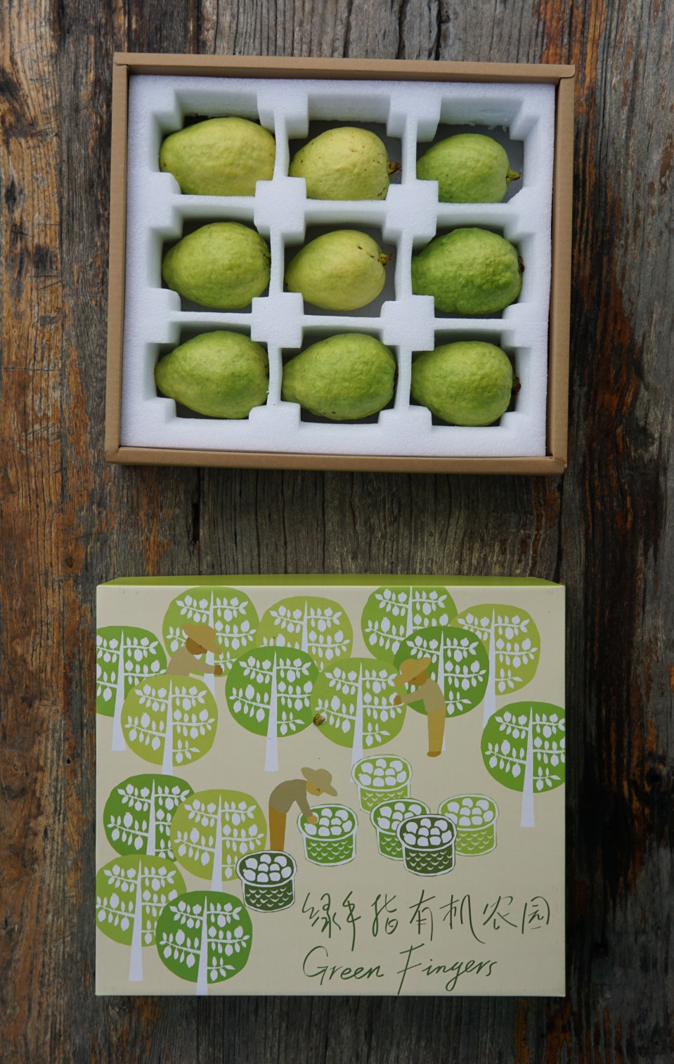 绿手指珠海大虎基地的胭脂红番石榴2016年开始种植,种植过程中没有使用任何化学农药跟肥料,严格执行有机标准,由一群来自全国各地的大学毕业生照顾他们的春夏秋冬。