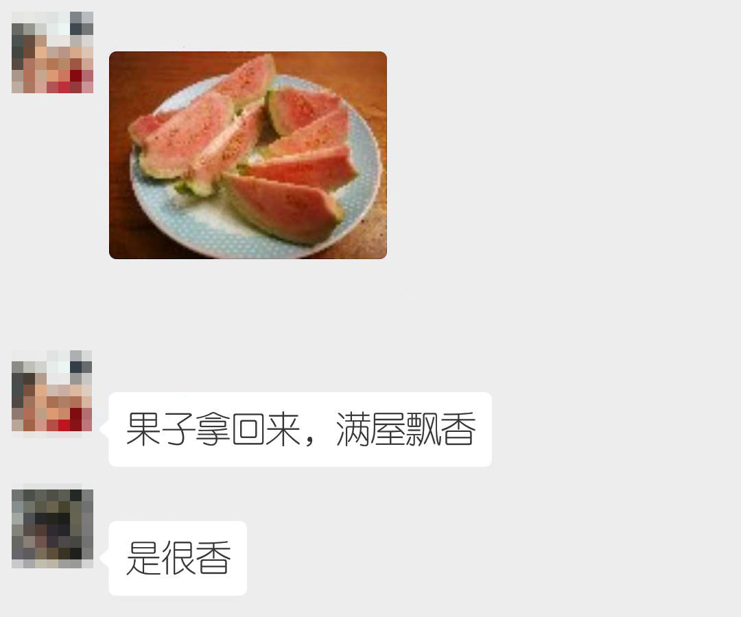 区别于传统番石榴,胭脂红番石榴成熟后口感软糯,极具热带风情的味道——具有粉红色的“少女心”,挥发性芳香物质浓郁,不用切开就能香飘满屋。看看菜友的好评: