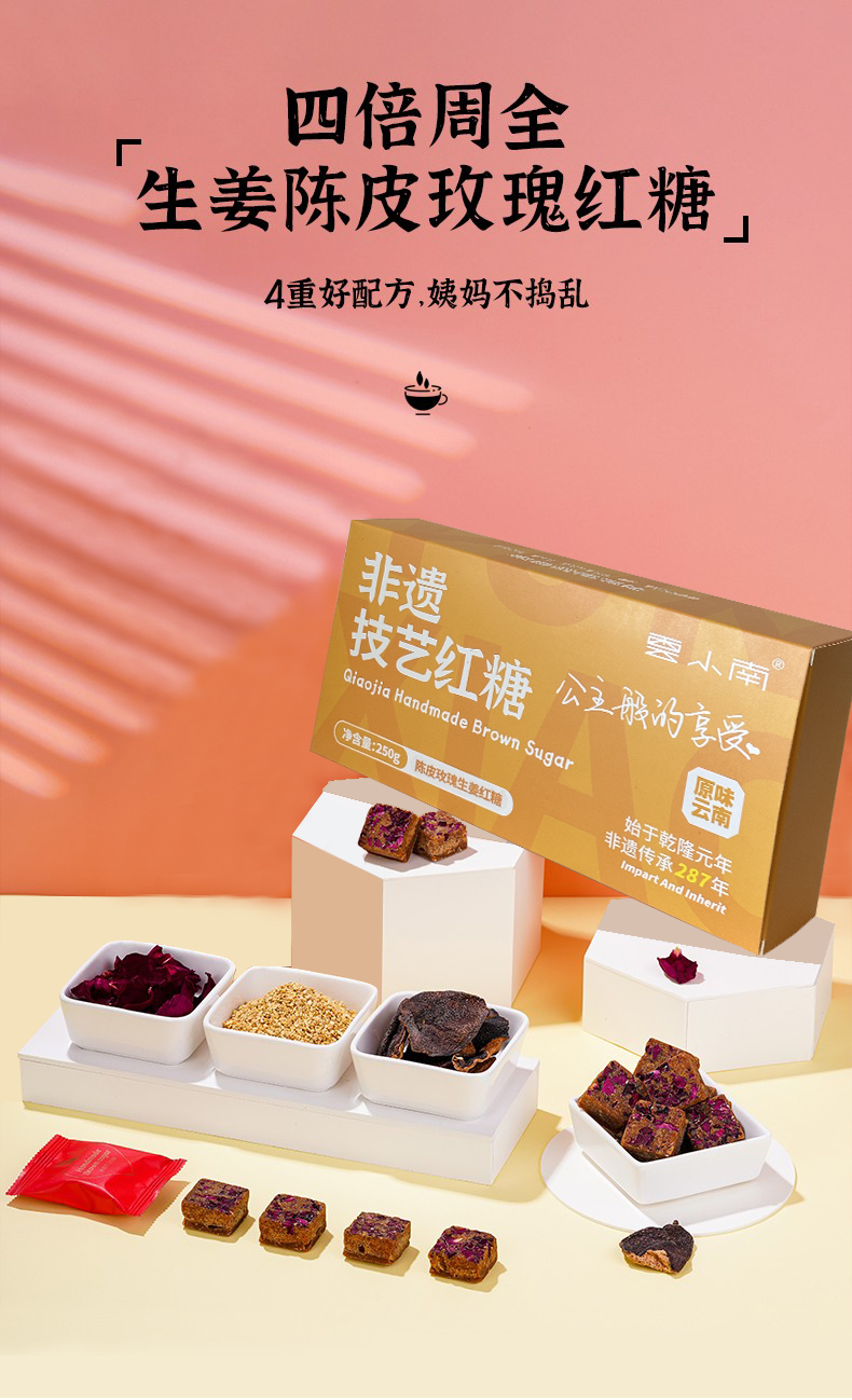 老郭头的匠心手工红糖 | 云小南巧家迷你小碗红糖 非遗甘蔗红糖冲饮 2盒装( 200g/盒 20g*10颗 )四种口味随心选 原味/生姜/红参红枣/陈皮生姜玫瑰