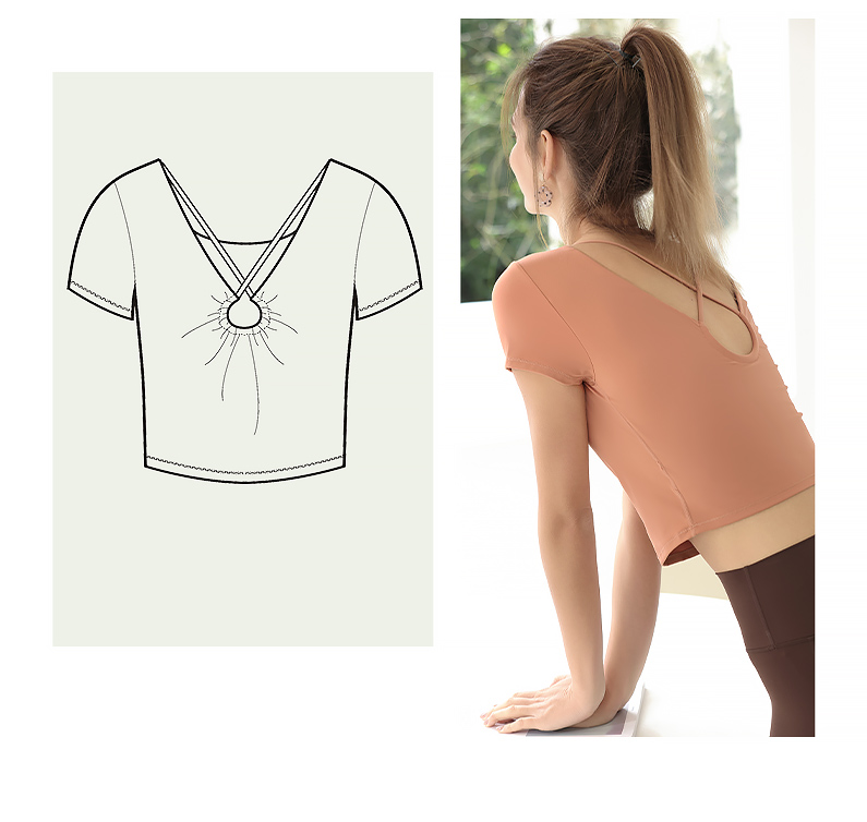 梵美人 F1205 瑜伽短袖 一体胸垫 莱卡云柔