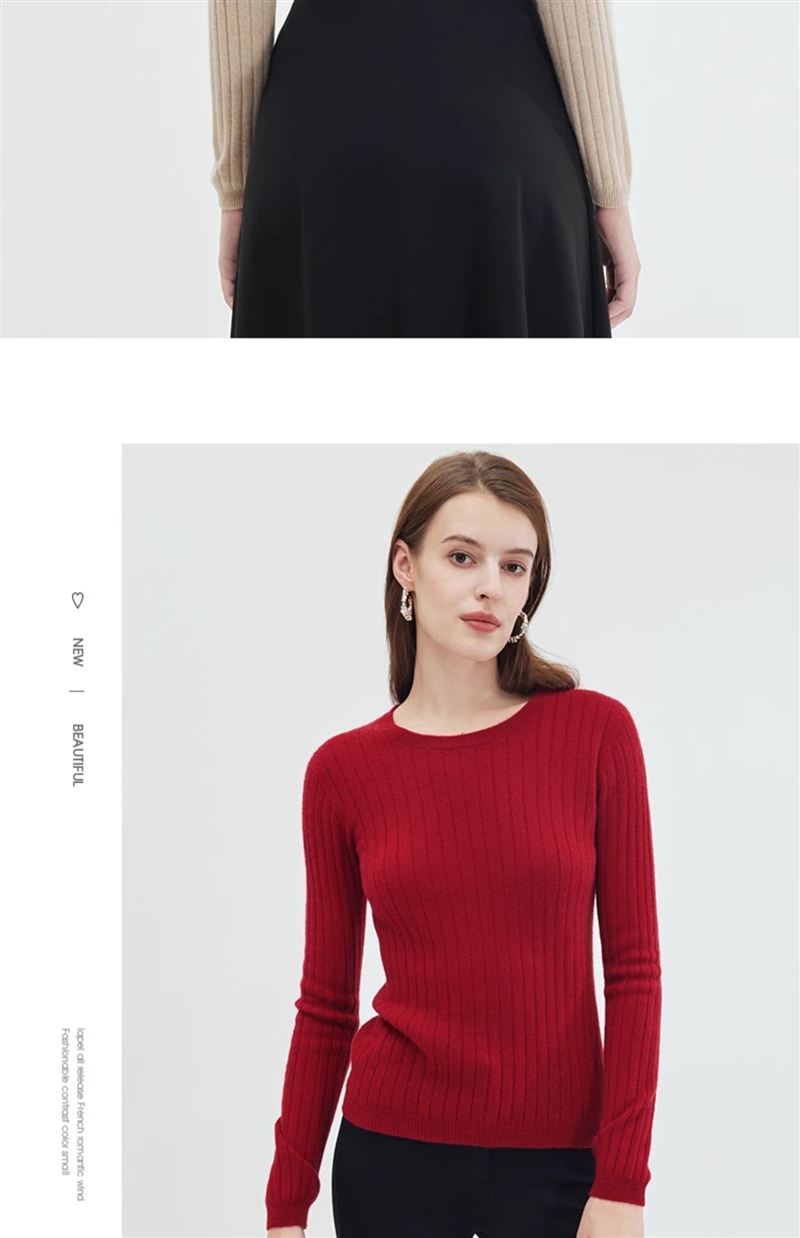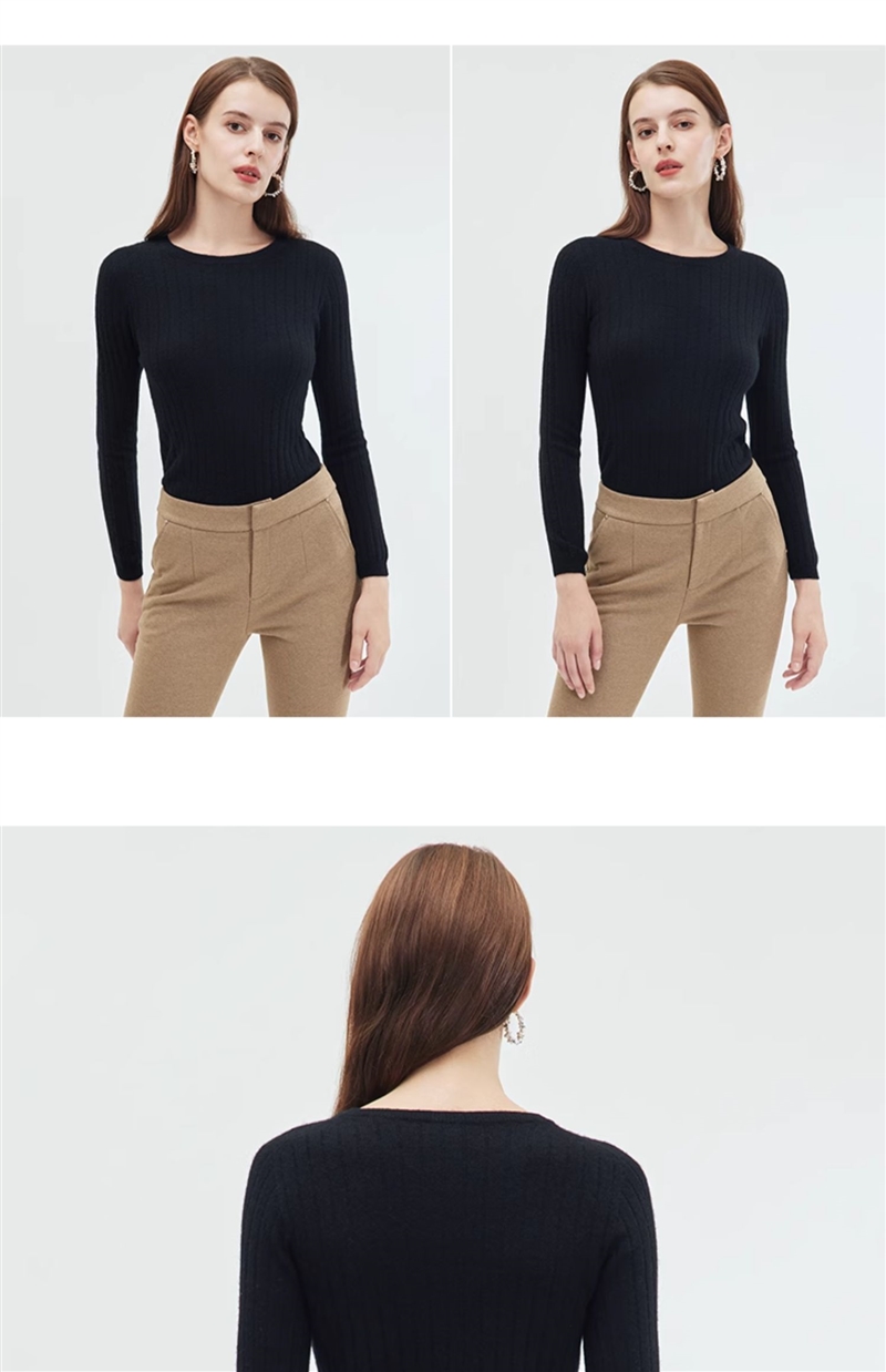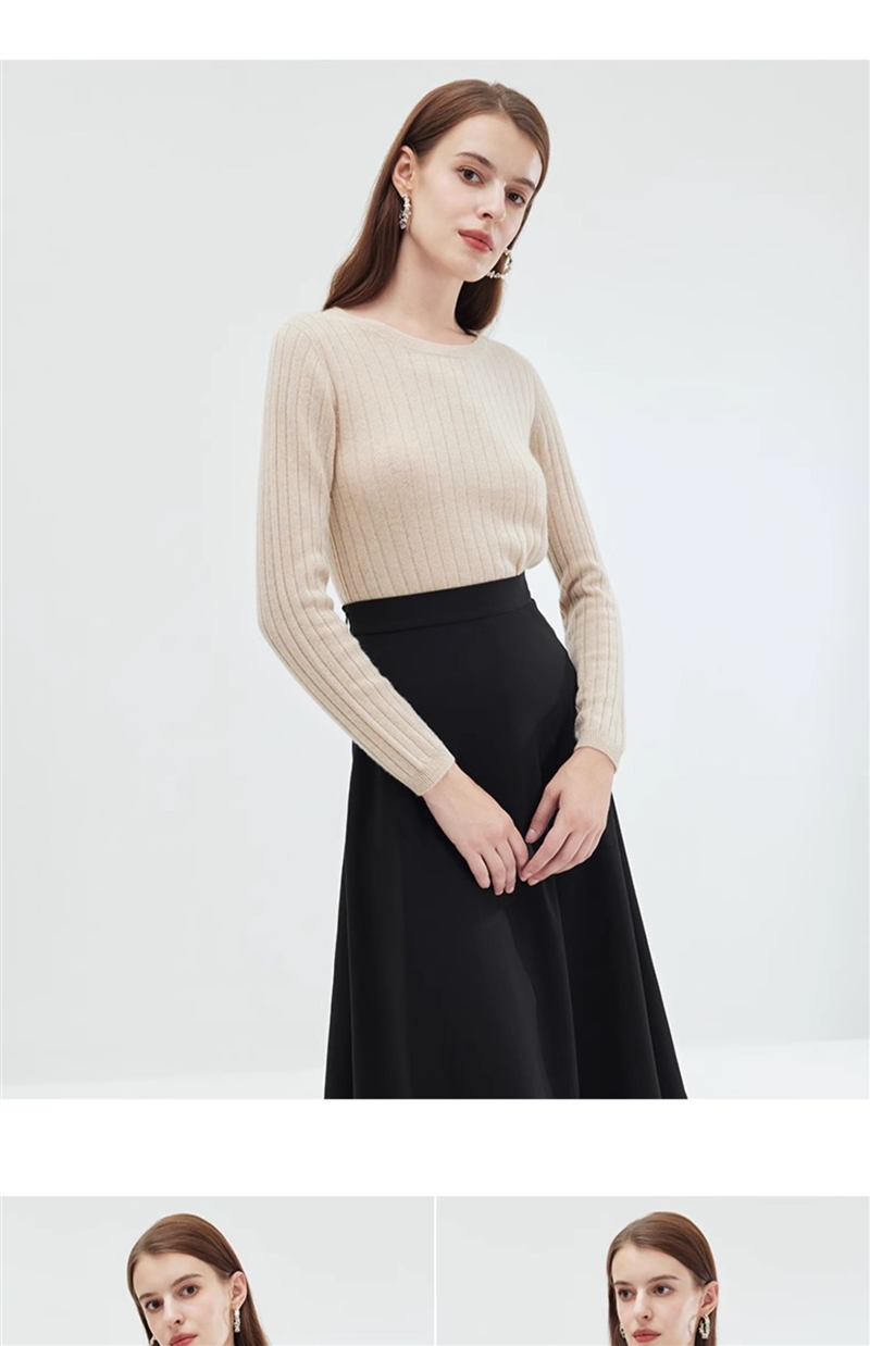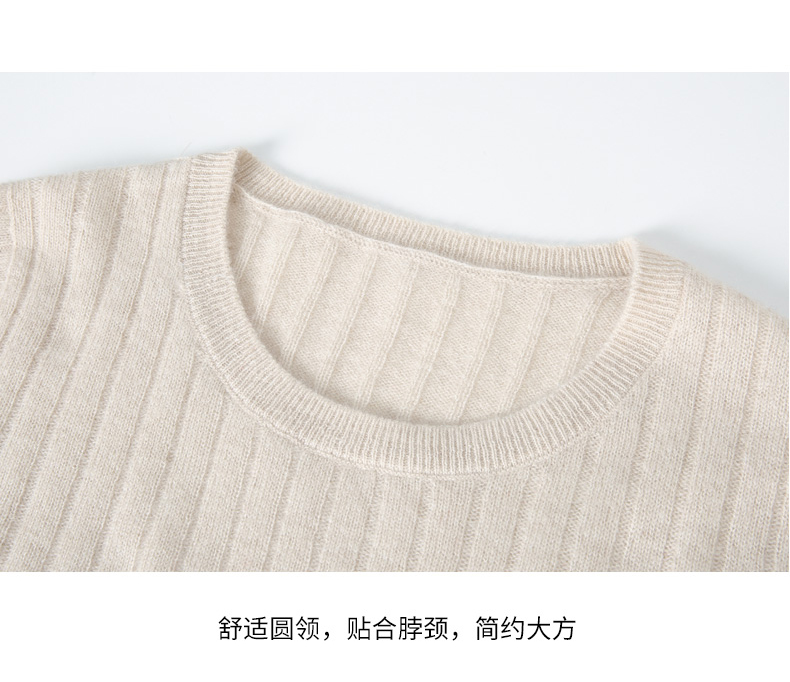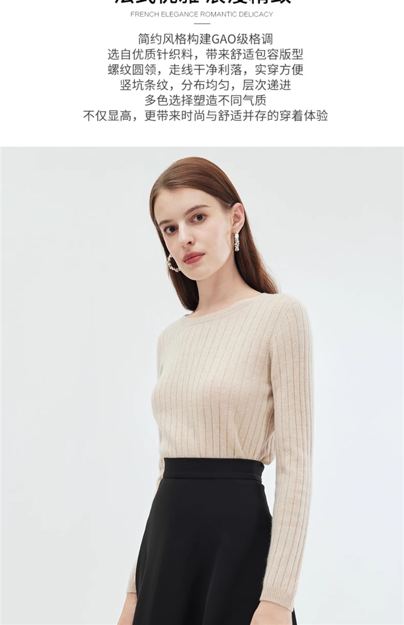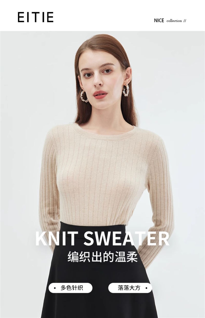 EITIE爱特爱时尚条纹简约圆领百搭打底舒适纯羊绒针织衫秋新款C2301222