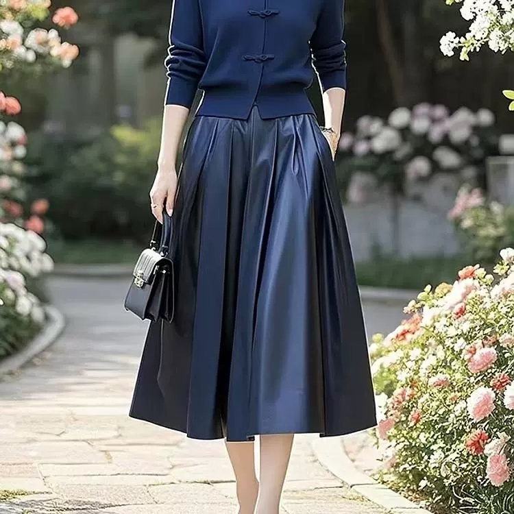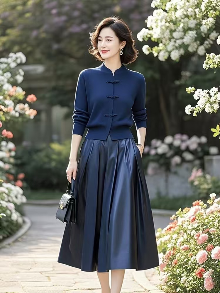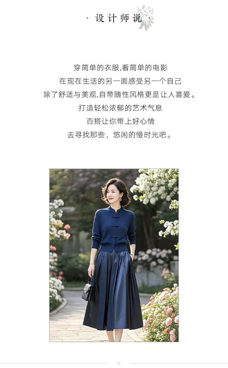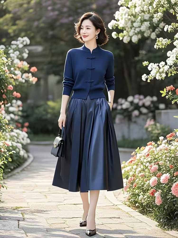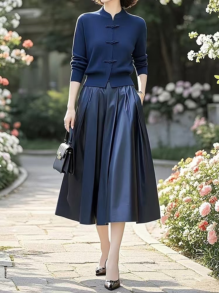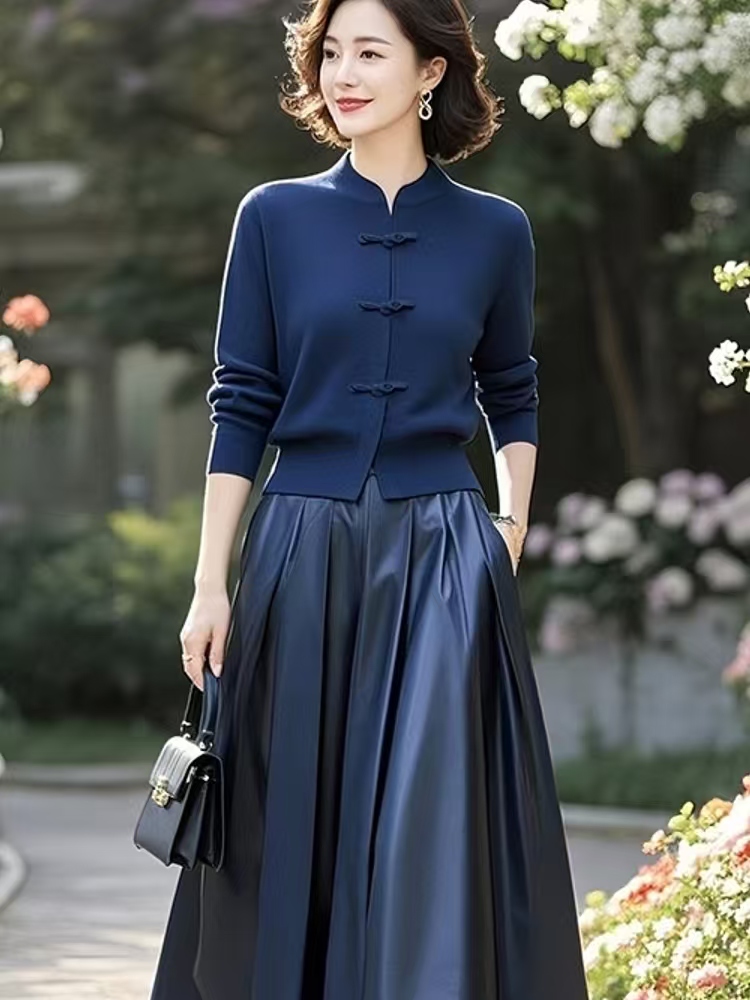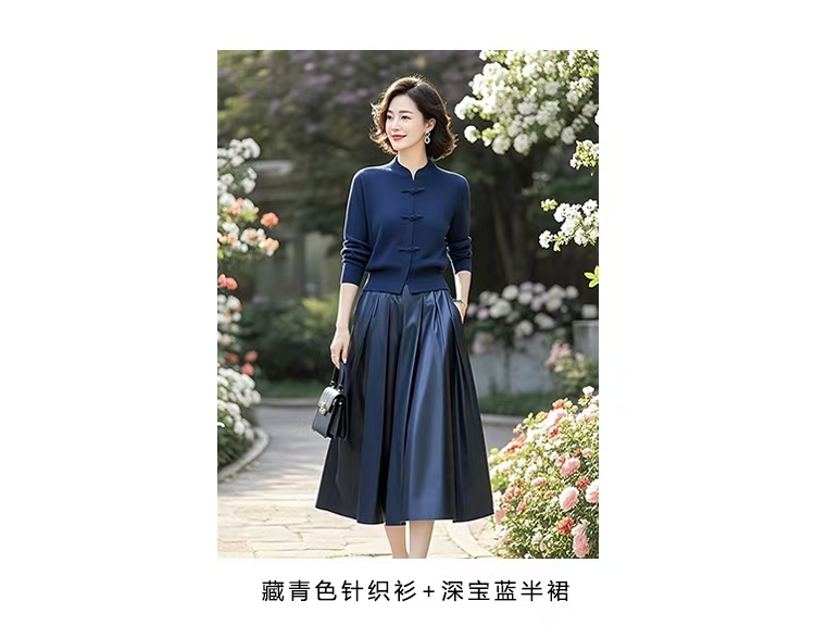 (预售15天)中式国风典雅蓝色针织衫,半身裙套装两件套LJX-370