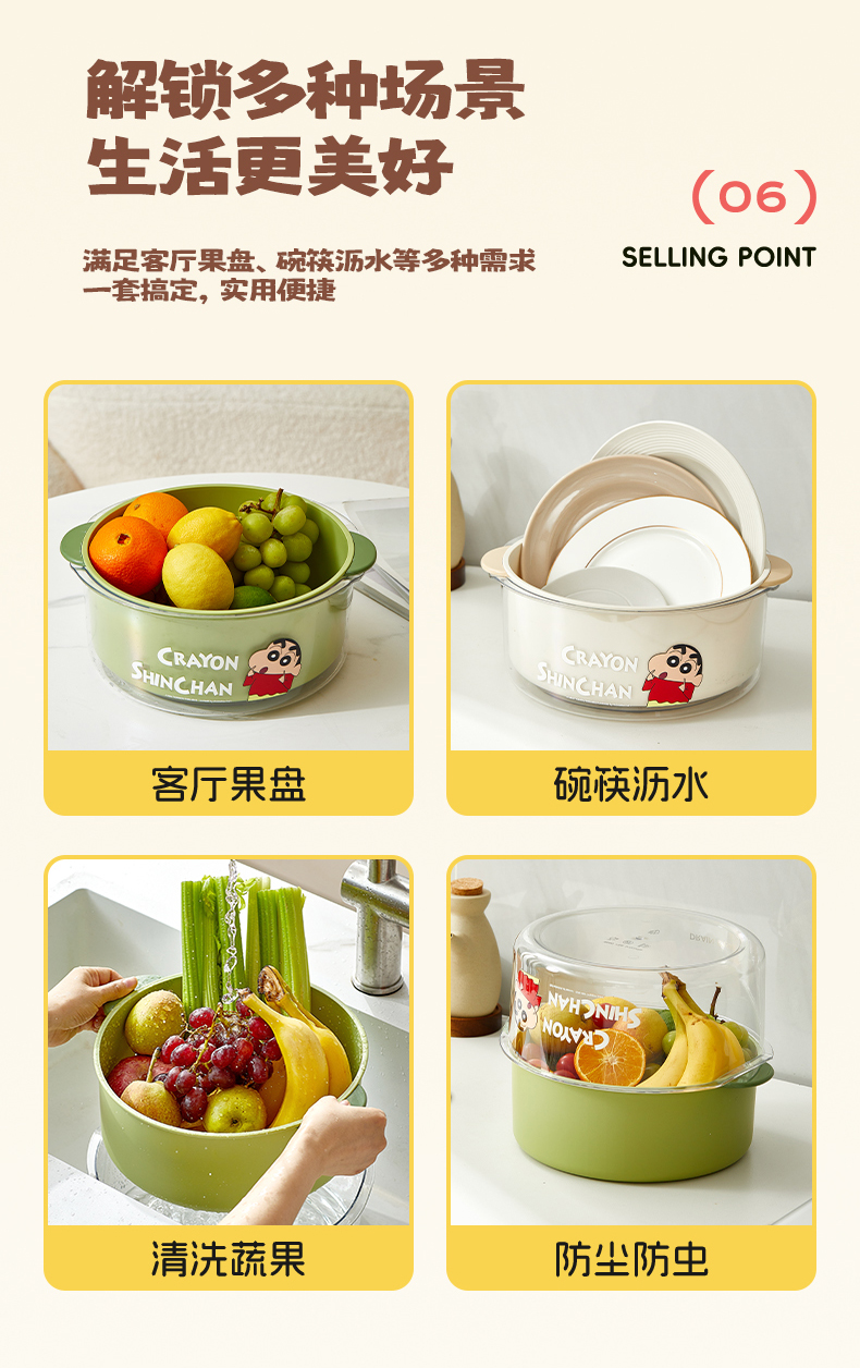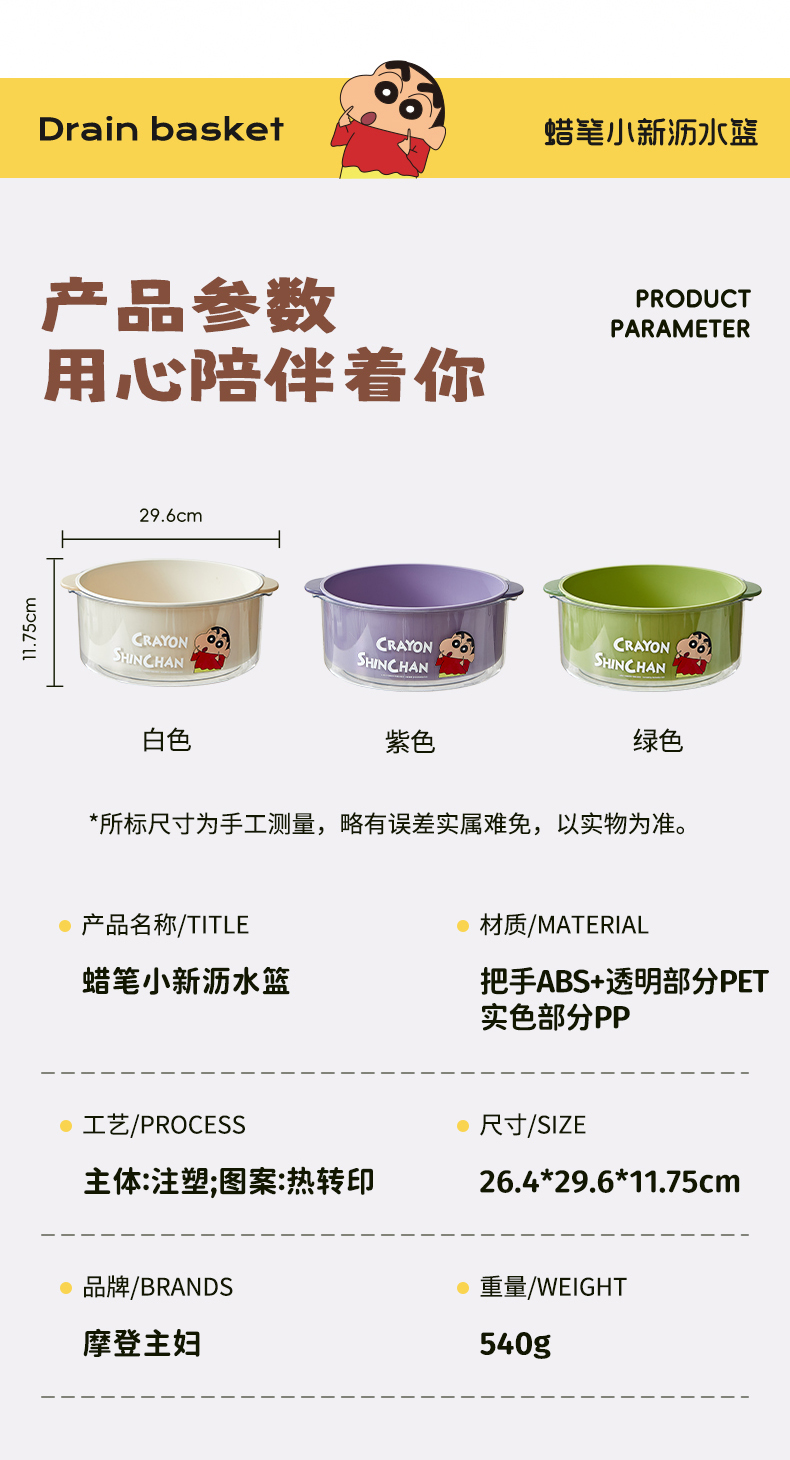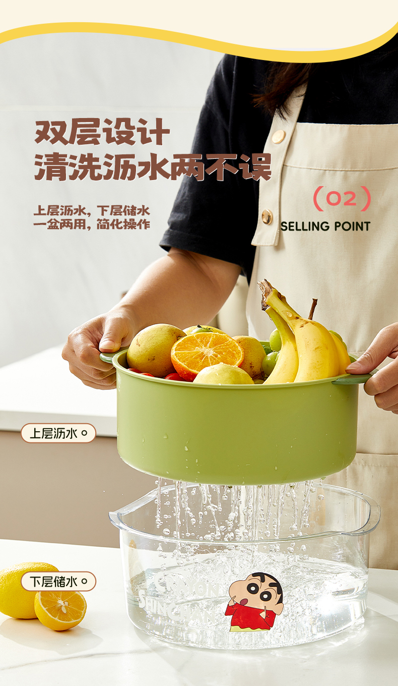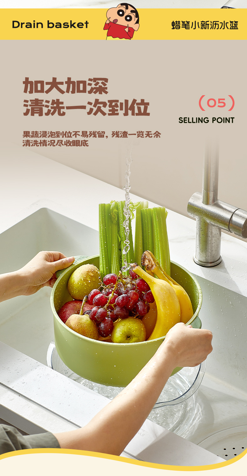 摩登主妇&蜡笔小新 洗菜盆沥水篮新款洗水果篮家用厨房菜篮子