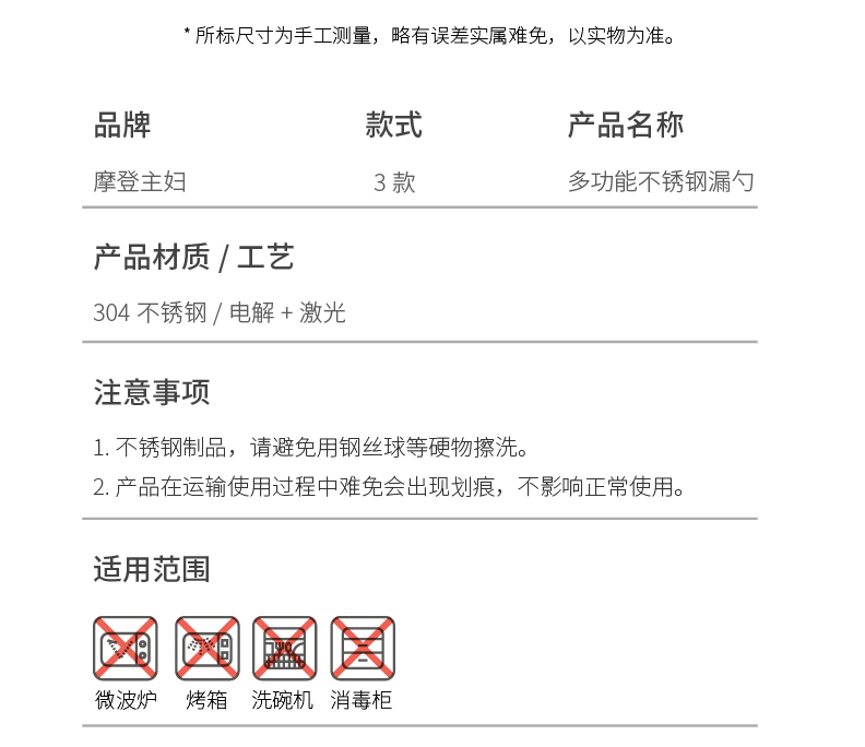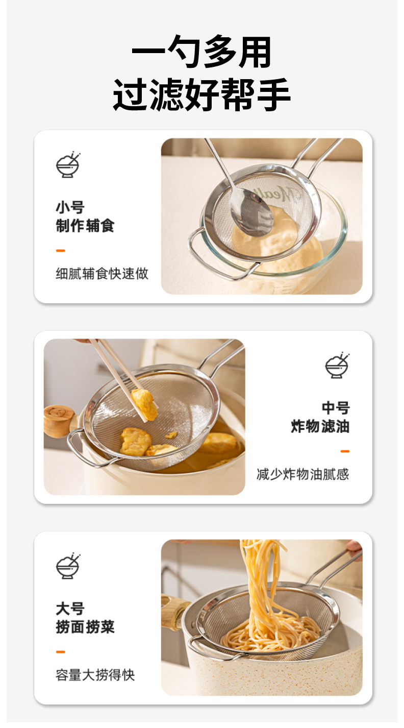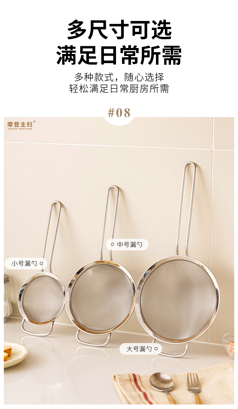 摩登主妇304不锈钢漏勺家用厨房漏网勺细网捞勺火锅豆浆过滤网筛