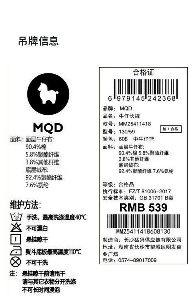 【MQD】童装男大童冬新款儿童潮酷休闲加厚耐穿裤子百搭加绒牛仔裤