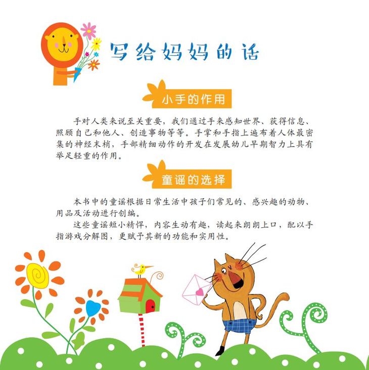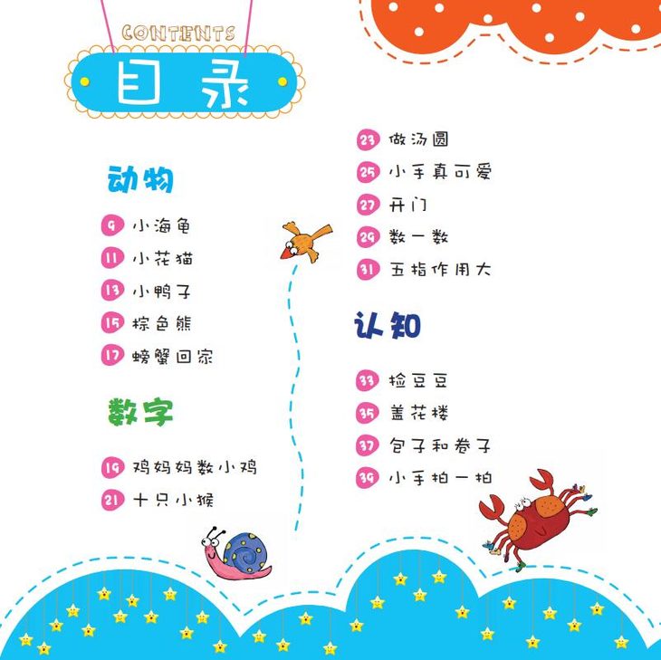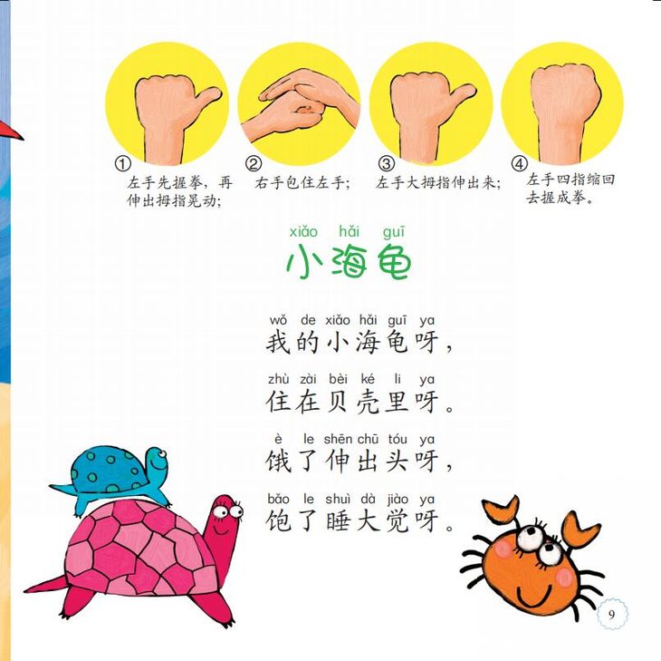 明快的节奏、优美的韵律,配合适宜的手部动作图解,提供家长与宝宝一起边念、边听、边玩、边做的机会。宝宝大脑得到综合全面的训练,有效地提高学习能力和智力发展水平。