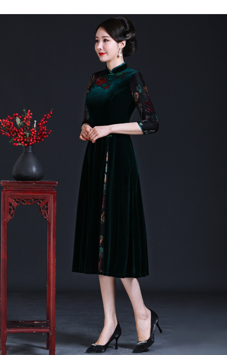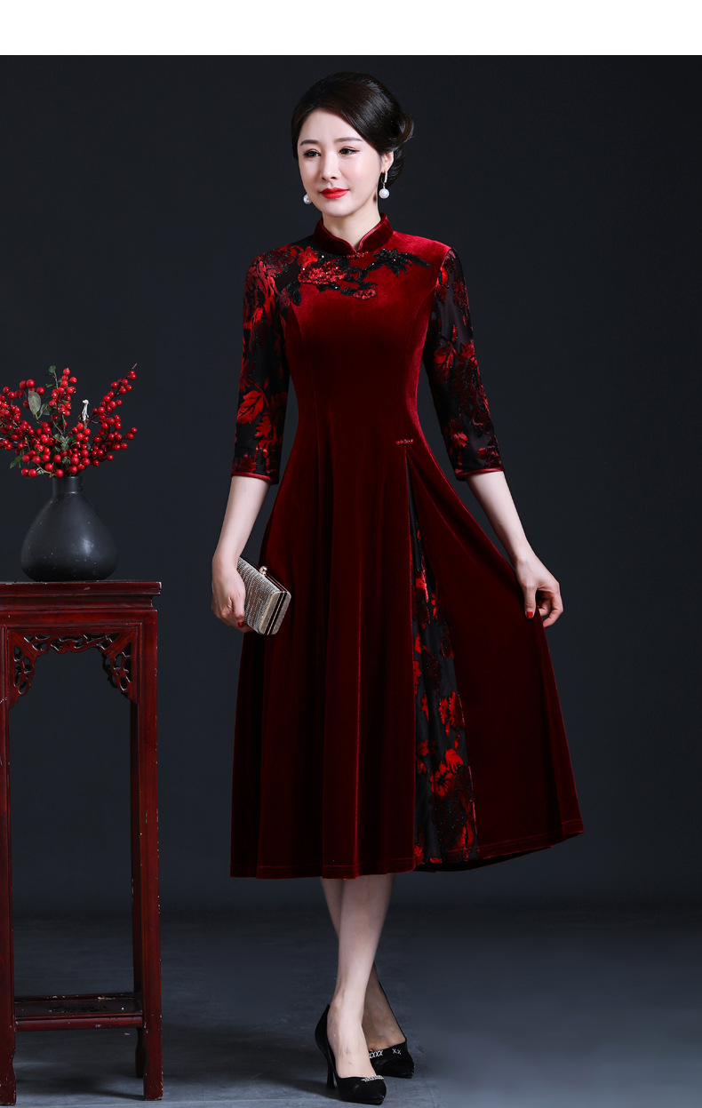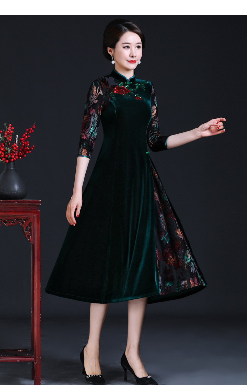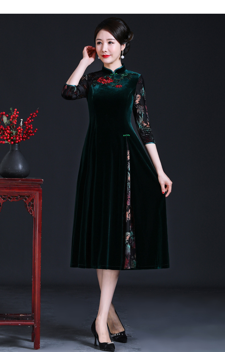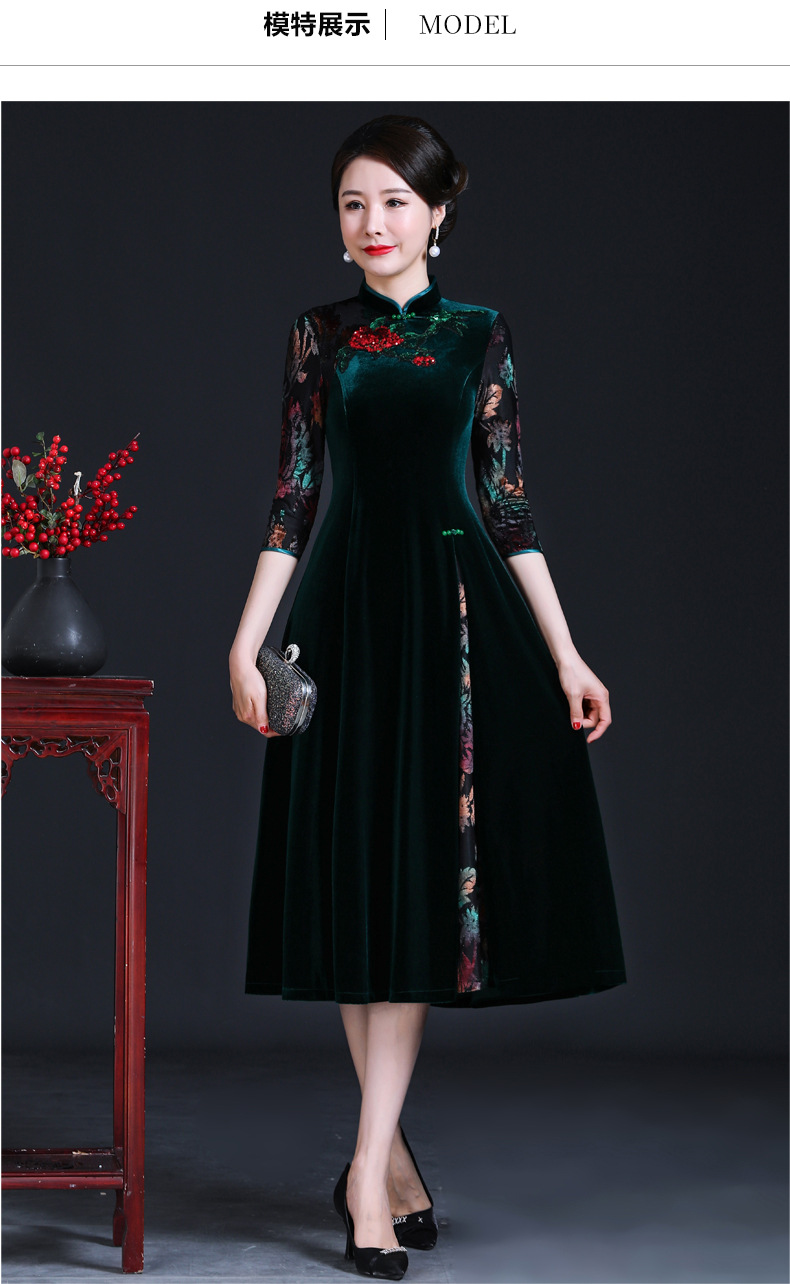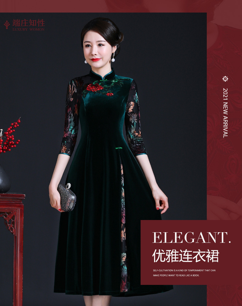 上海旗袍厂JC-JY216秋季新款 喜婆婆刺绣旗袍裙 连衣裙改良气质中长款妈妈裙子