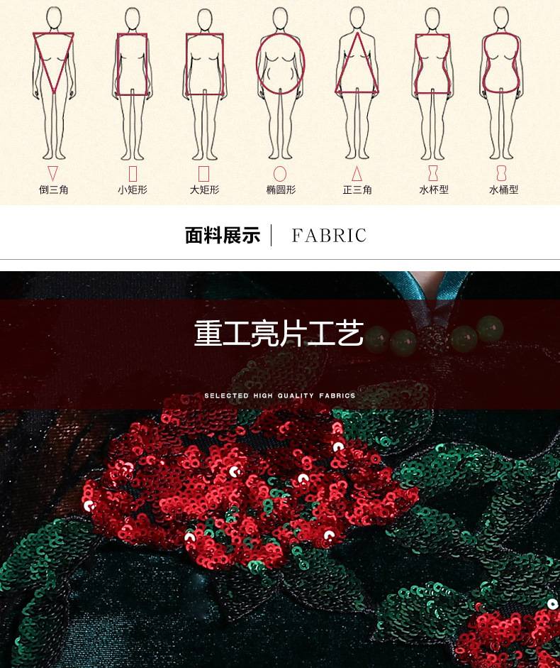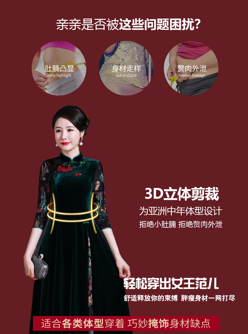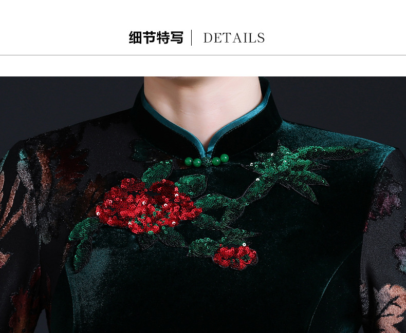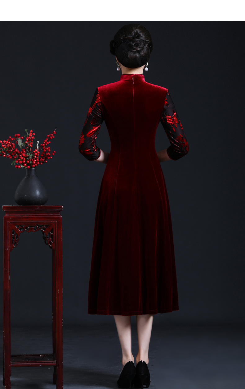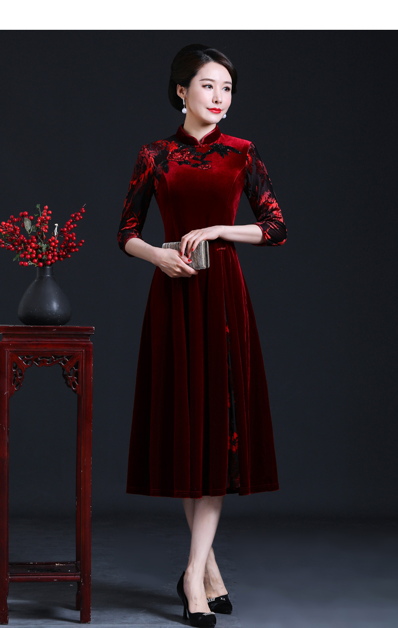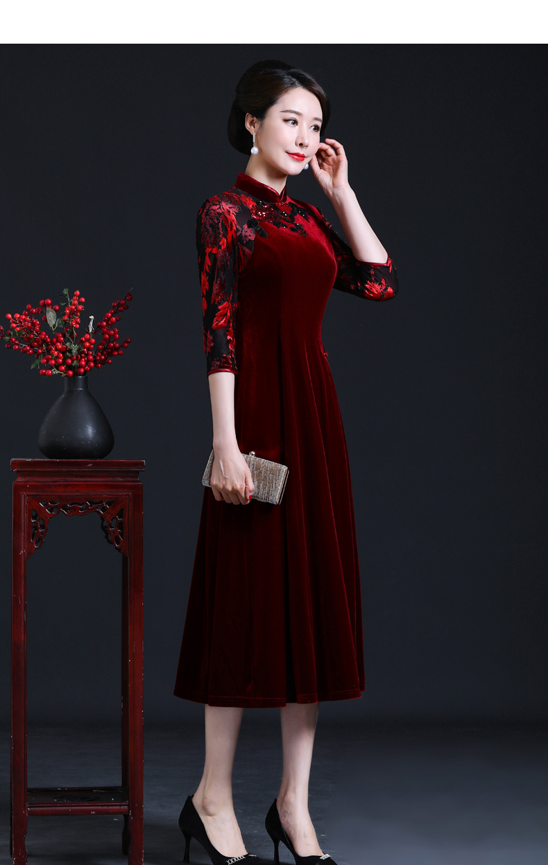 上海旗袍厂JC-JY216秋季新款 喜婆婆刺绣旗袍裙 连衣裙改良气质中长款妈妈裙子