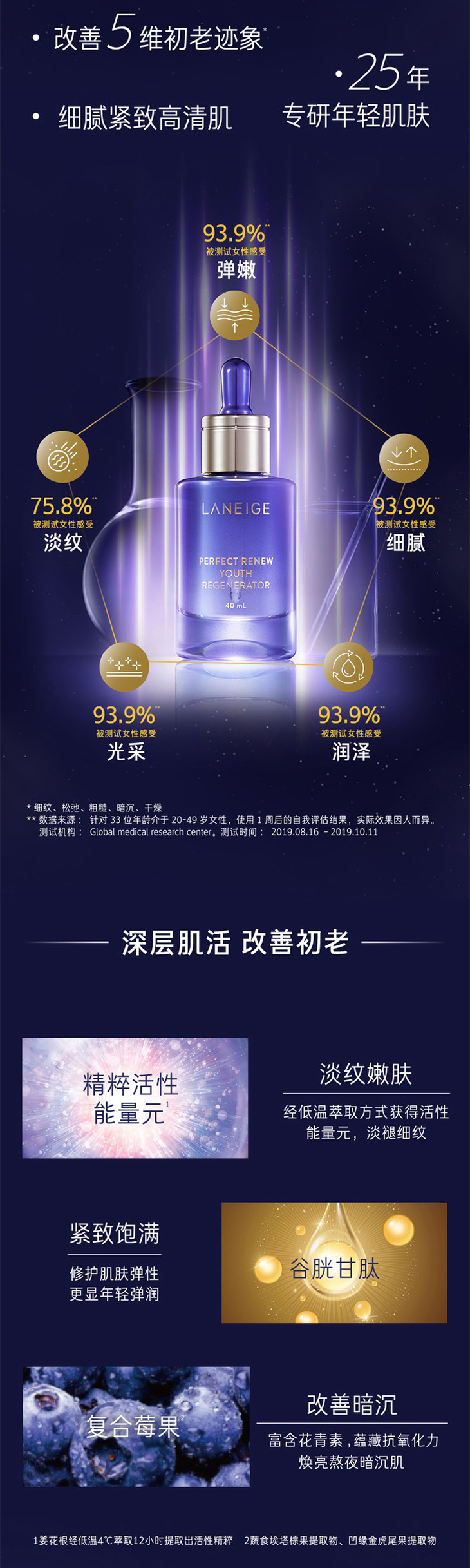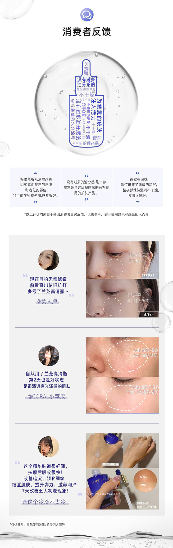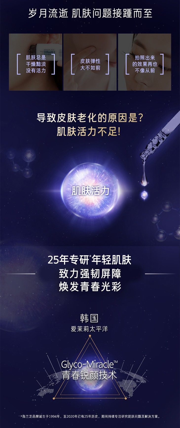 兰芝再生精华40ml👍全新升级版⬆!运用兰芝家专利的技术,能够激发细胞能量代谢,加快肌肤自然更新。内含90%精纯法国三肽,焕活胶原蛋白😬,提拉肌肤。针对青春三角肌肤的重塑,主打淡化细纹和紧致肌肤,打造柔嫩弹润细腻的高清肌,📸高清相机怼在脸上拍也不在怕的,想要抗初老的宝宝不要错过啦!