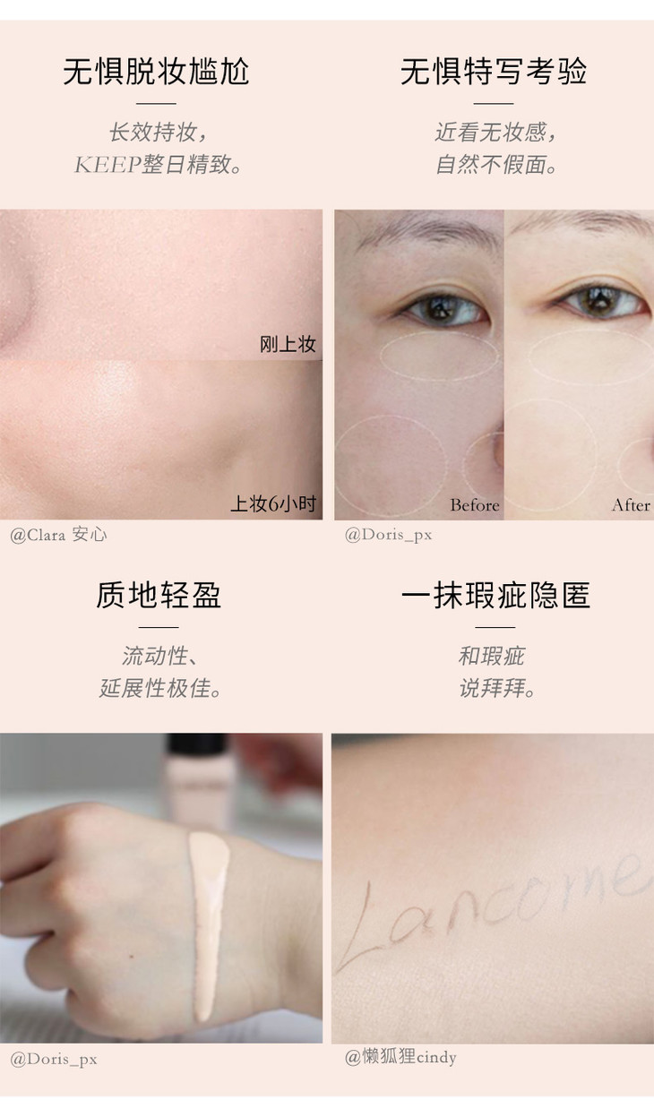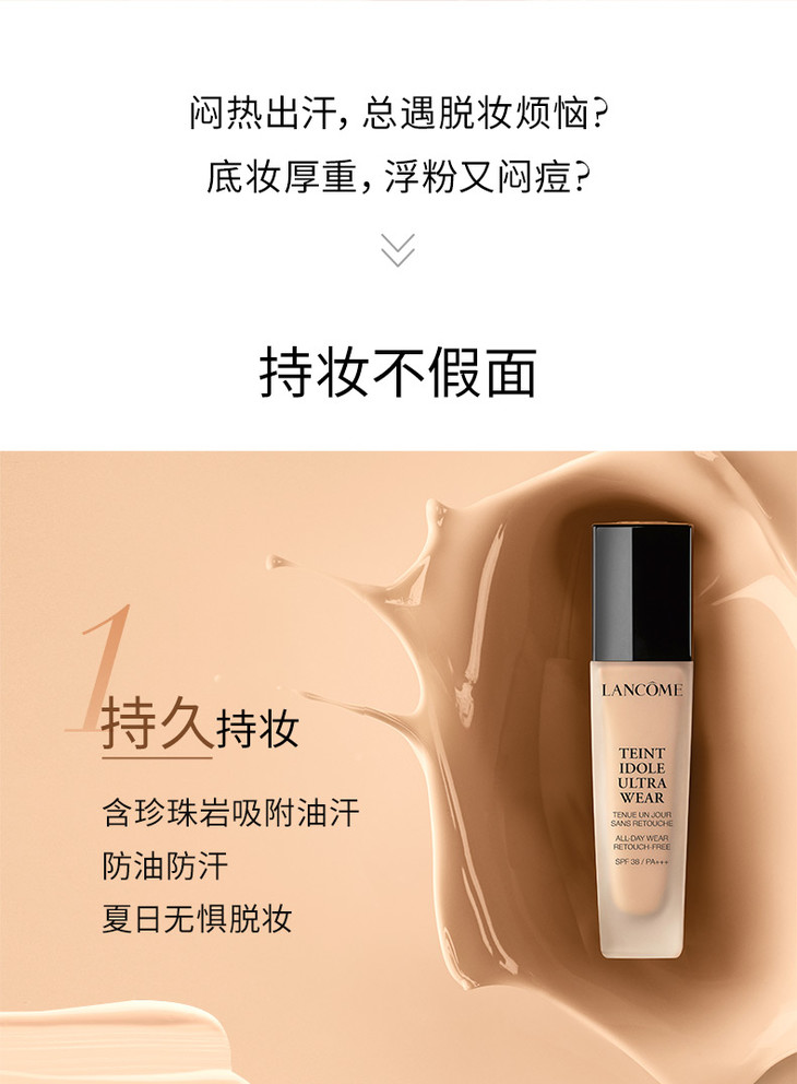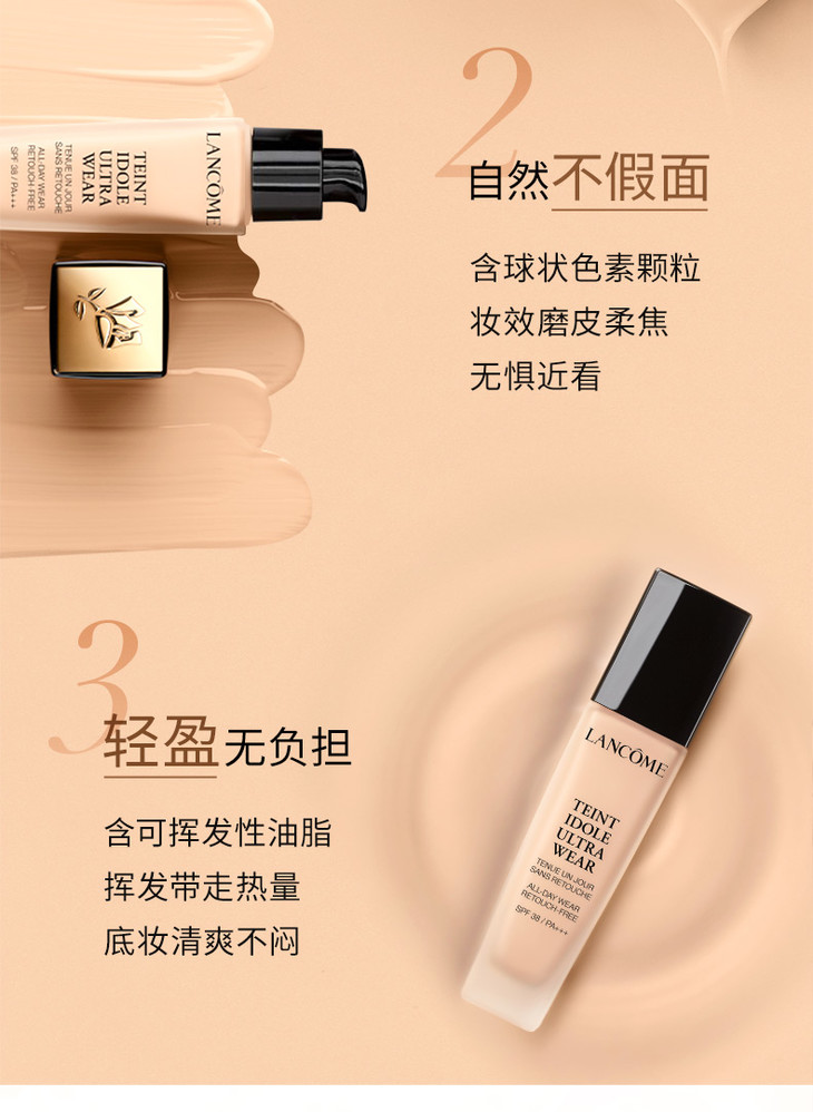 ❄️BX👑兰蔻18年新款TEINT IDOLE新持妆清透粉底液30ml 😋超持久:兰蔻 独* 家「3D持妆隐形网」犹如肌肤表层一道会呼吸的防护网,💋妆感更持久、越晚越美!零粉感、零瑕疵: 🐳颠覆一般持久粉底兰蔻 首* 创「靠光遮瑕」,用「珍珠光感粒子」🔥带来加倍光线折射,完美隐藏肌肤瑕疵。粉体更轻盈、细緻,能完美遮瑕却又零粉感🌿零乾纹:「智慧油水调控科技」针对肌肤乾燥处自动补水,出油处自动吸油,😘让毛孔、油光瞬间神隐,全天透出完美微雾光!