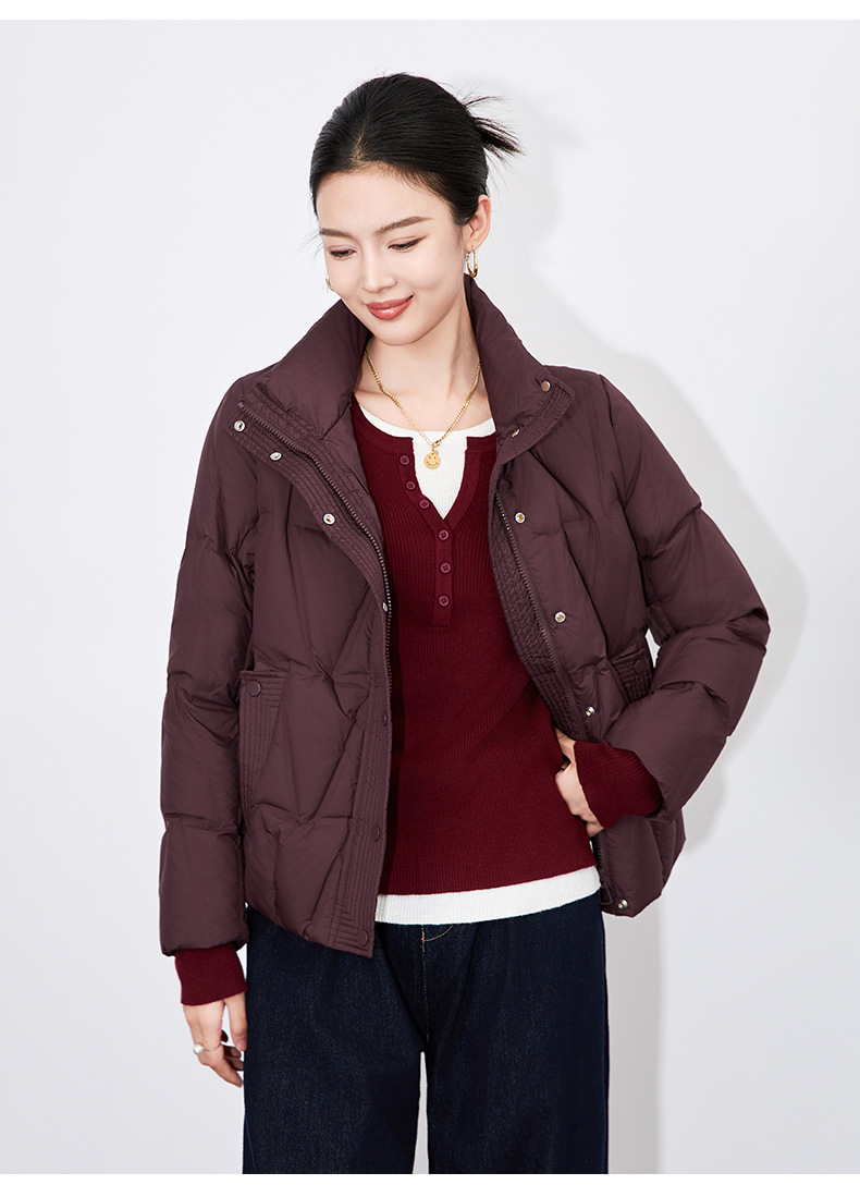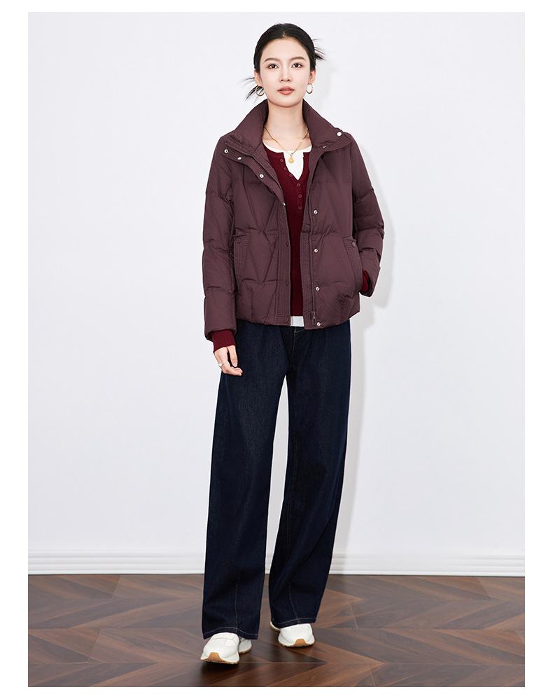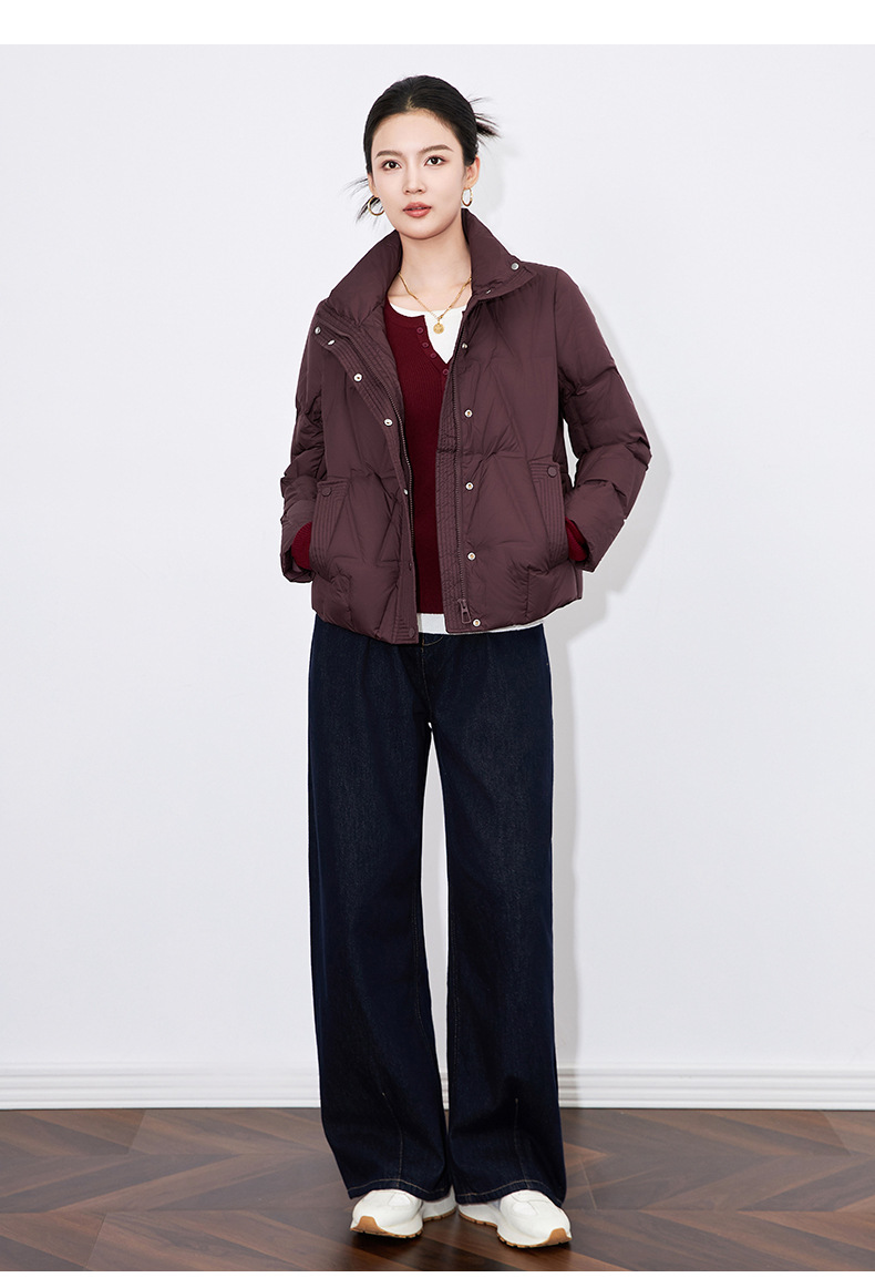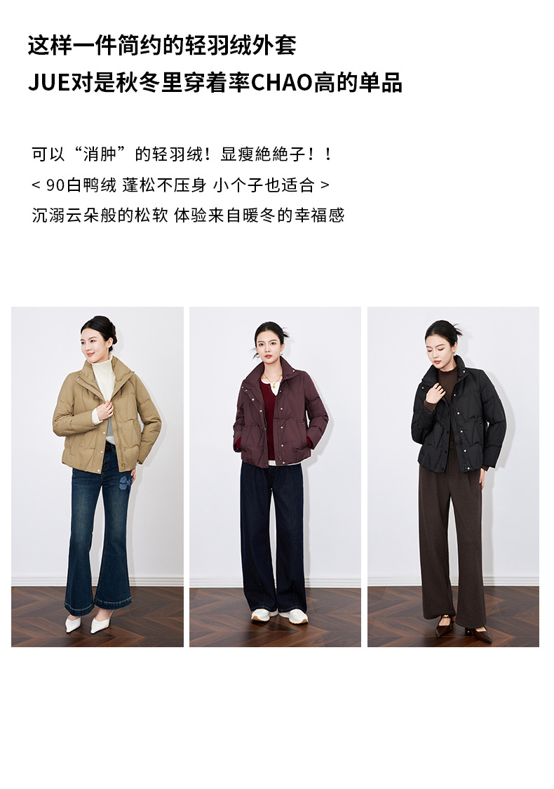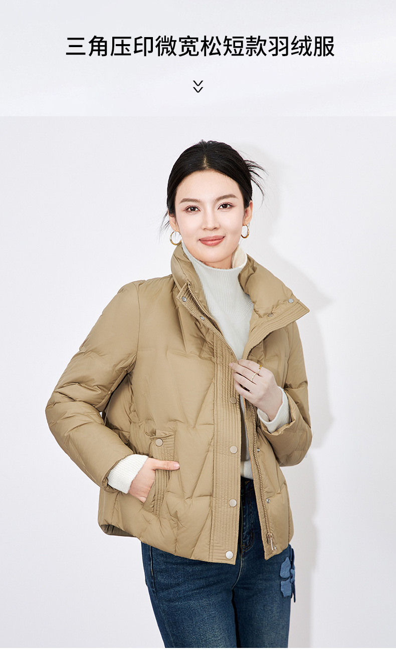 【高货wl】全新升级【铂金会员477/天猫639/差价162】(35342) 洛诗琳冬季新款立领90%白鸭绒时尚气质高领短款羽绒服