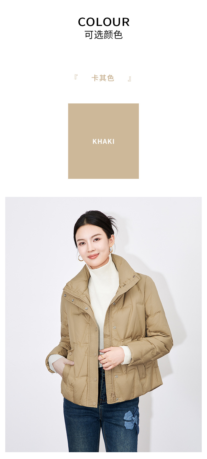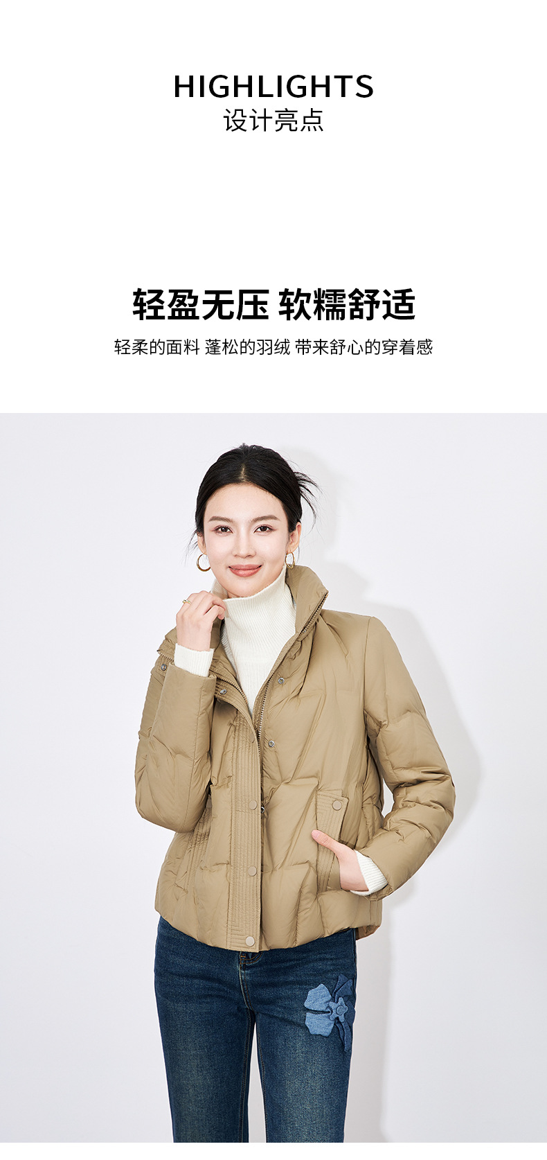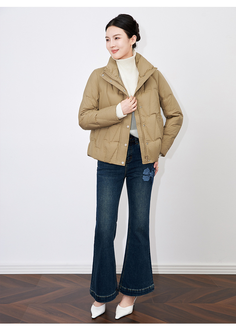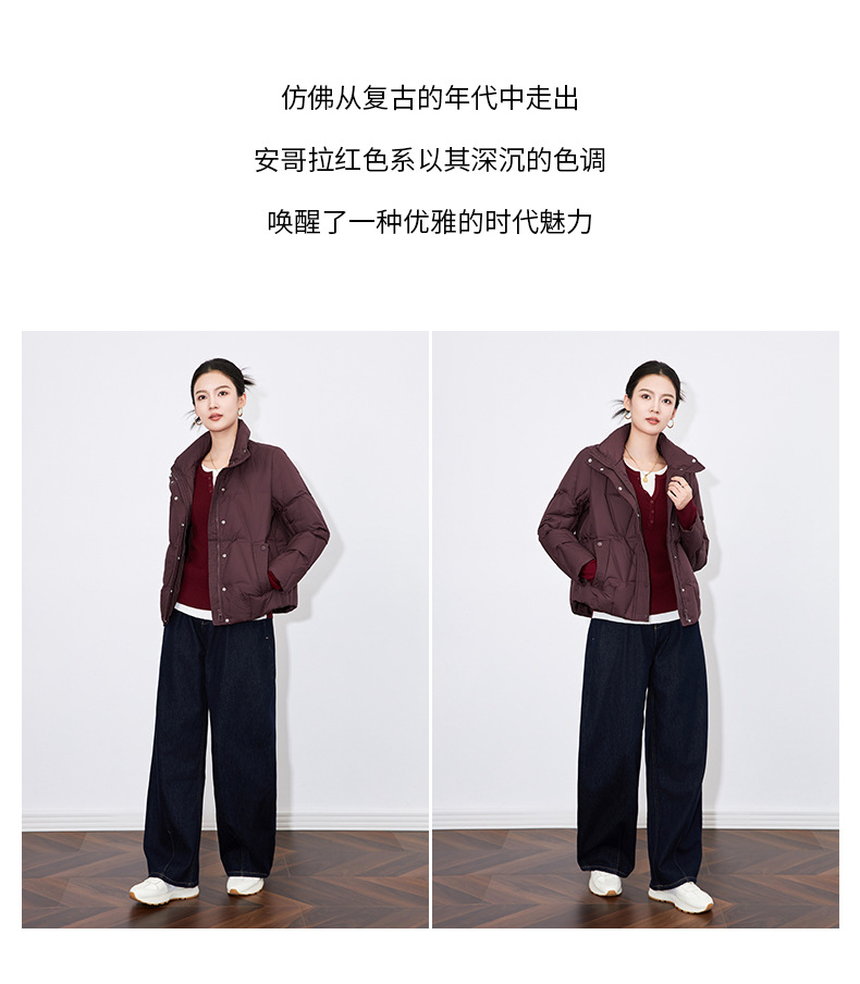 【高货wl】全新升级【铂金会员477/天猫639/差价162】(35342) 洛诗琳冬季新款立领90%白鸭绒时尚气质高领短款羽绒服