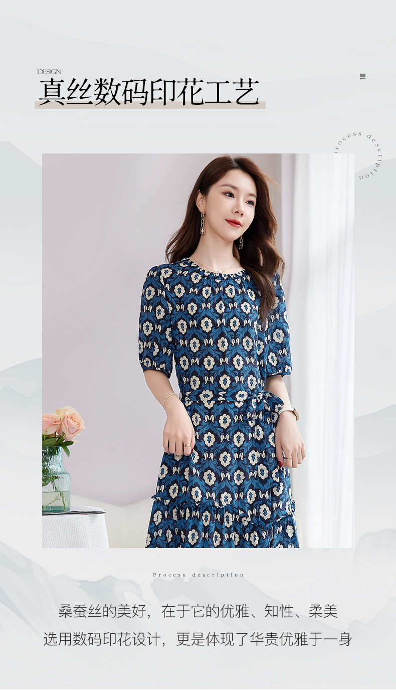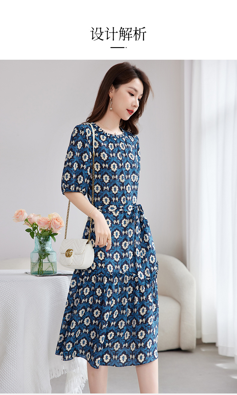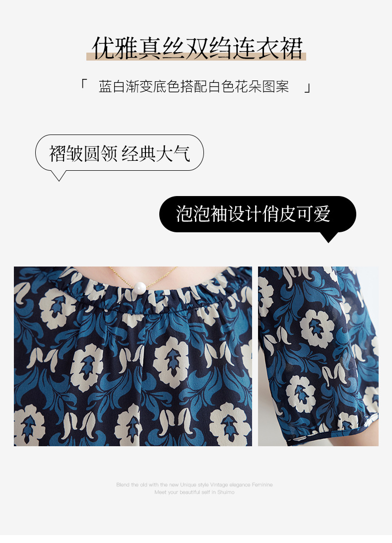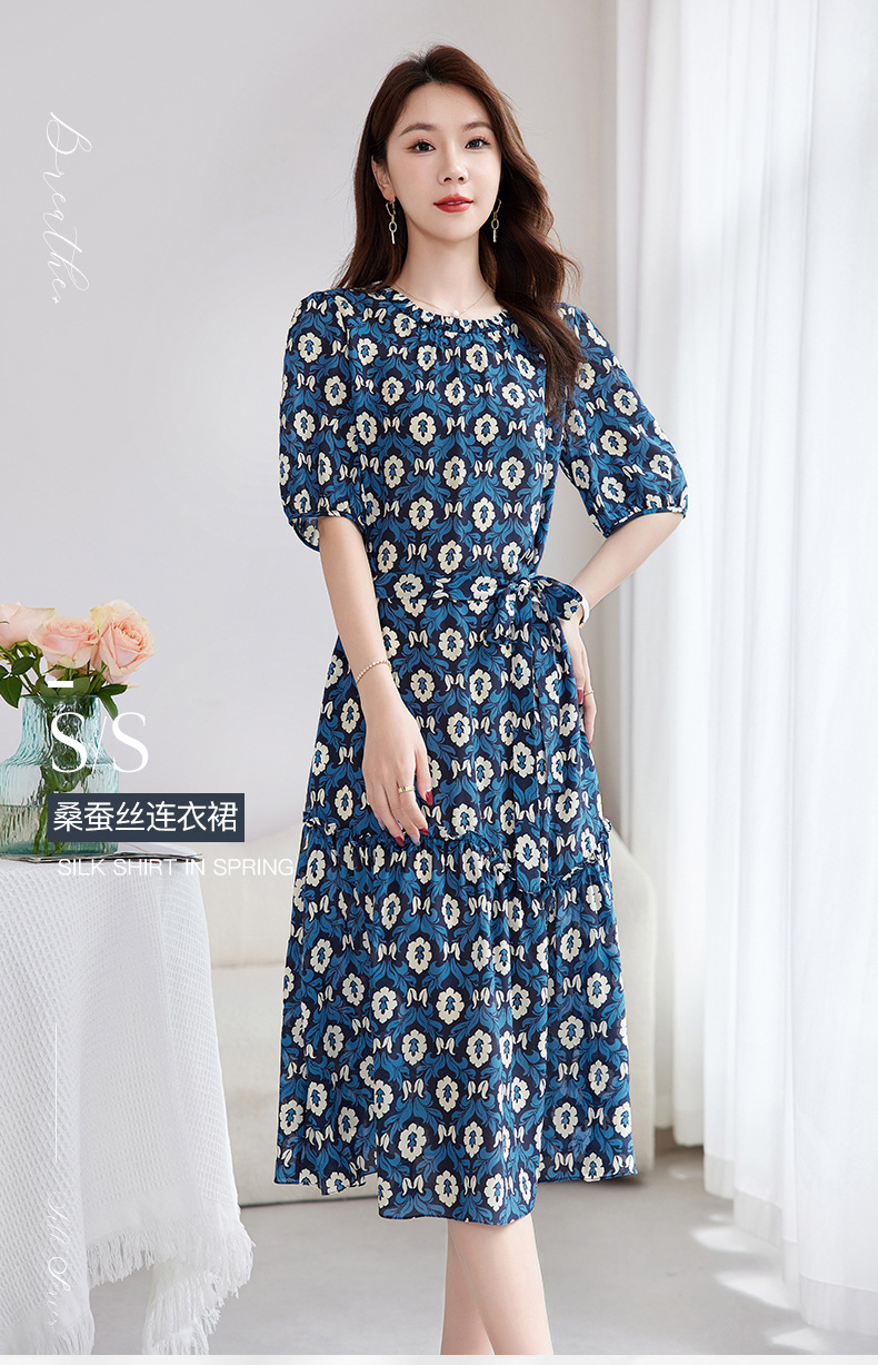 QS-82501101中大淑女装5A桑蚕丝连衣裙夏季圆领100%真丝印花连衣裙女1101
