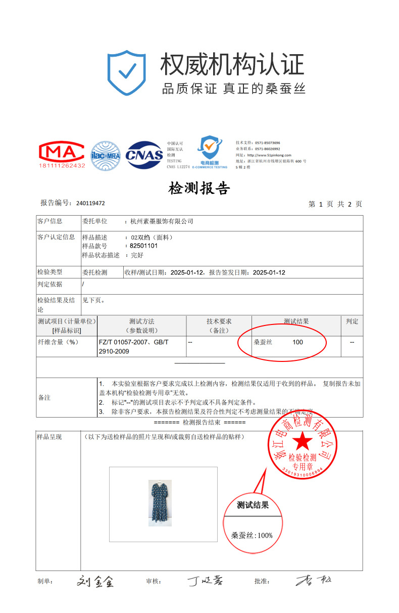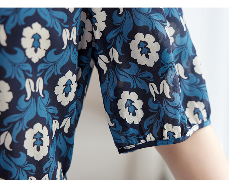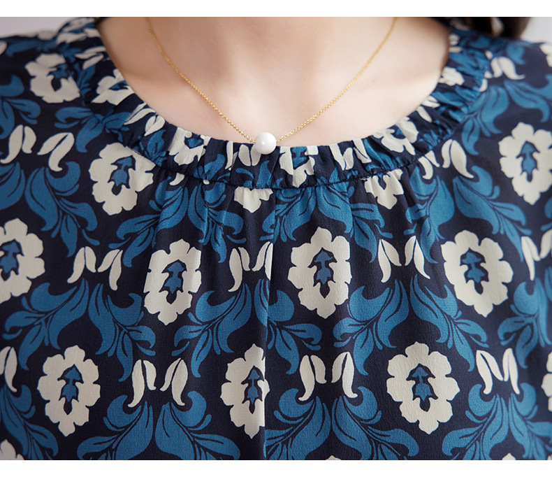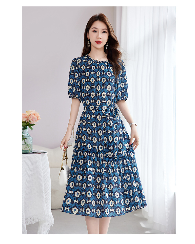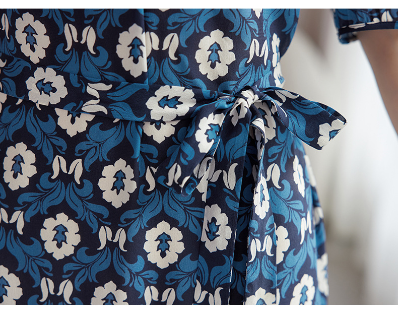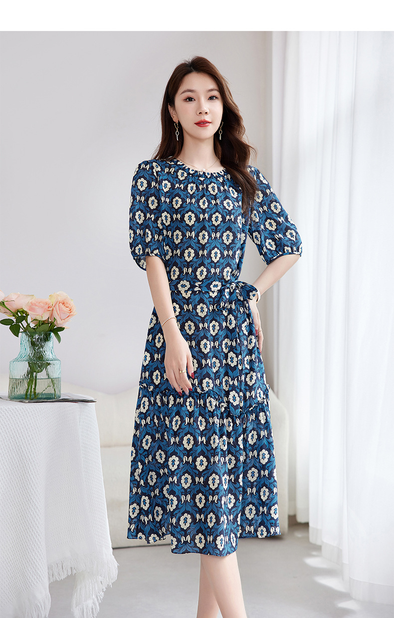 QS-82501101中大淑女装5A桑蚕丝连衣裙夏季圆领100%真丝印花连衣裙女1101