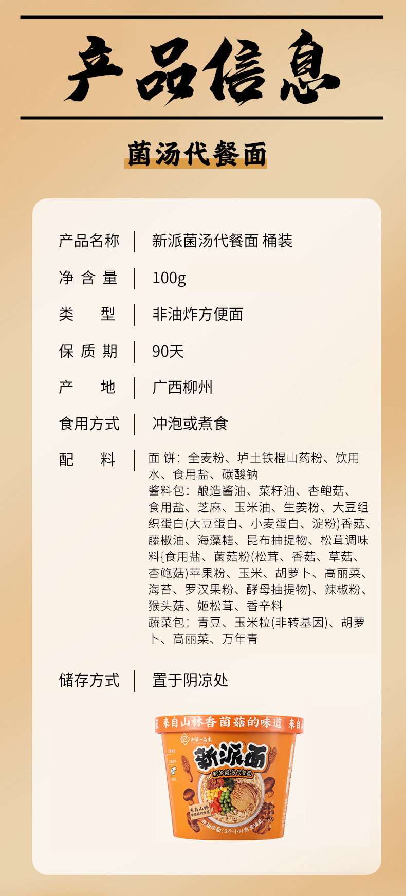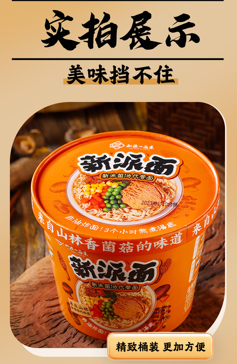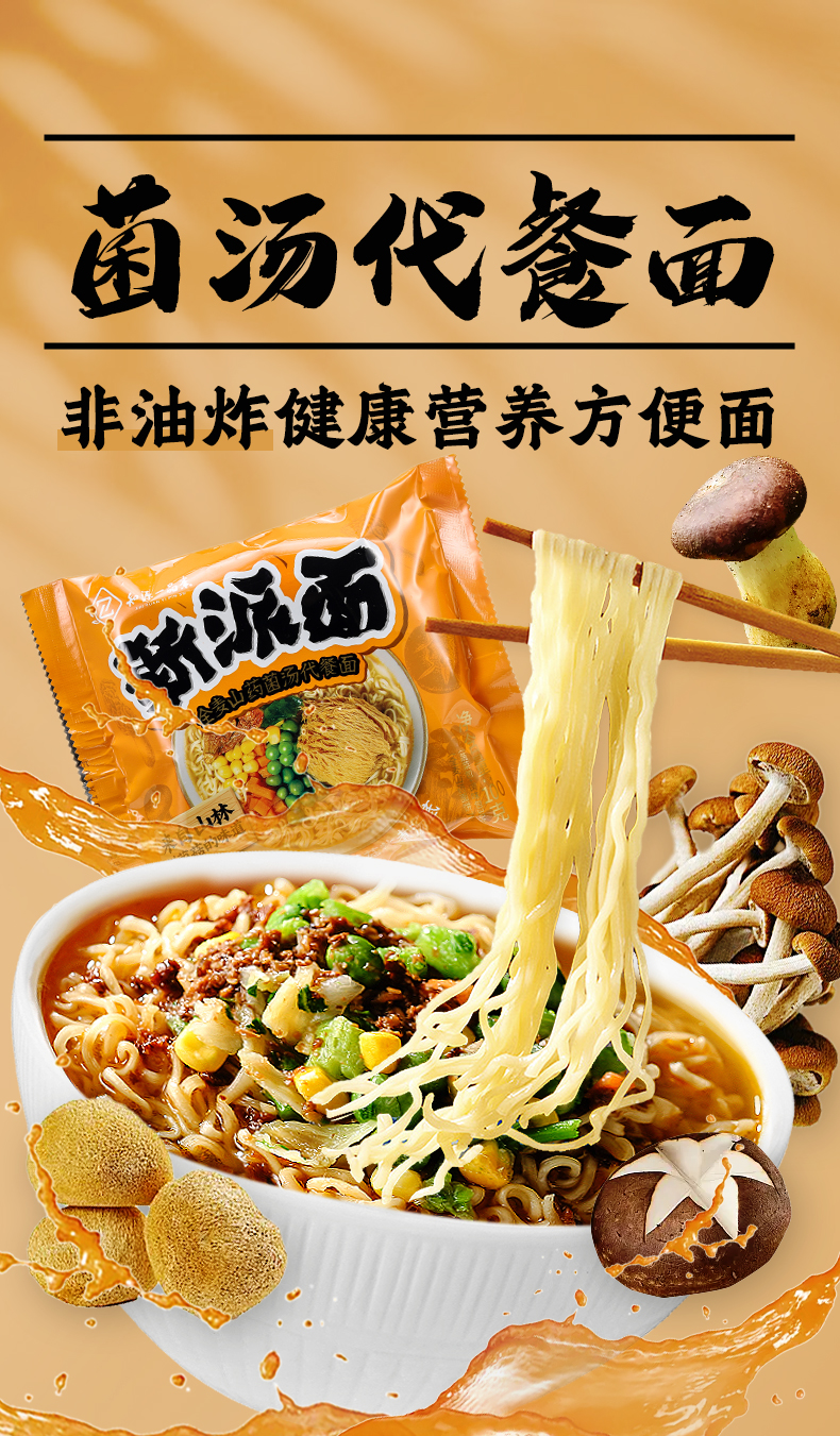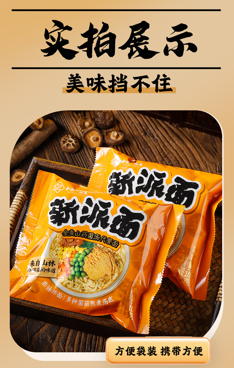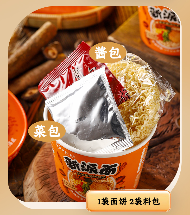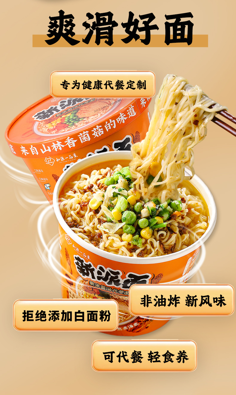 全麦山药菌汤代餐面 | 100g/袋(桶)口感爽滑 即泡即食 非油炸方便面泡面