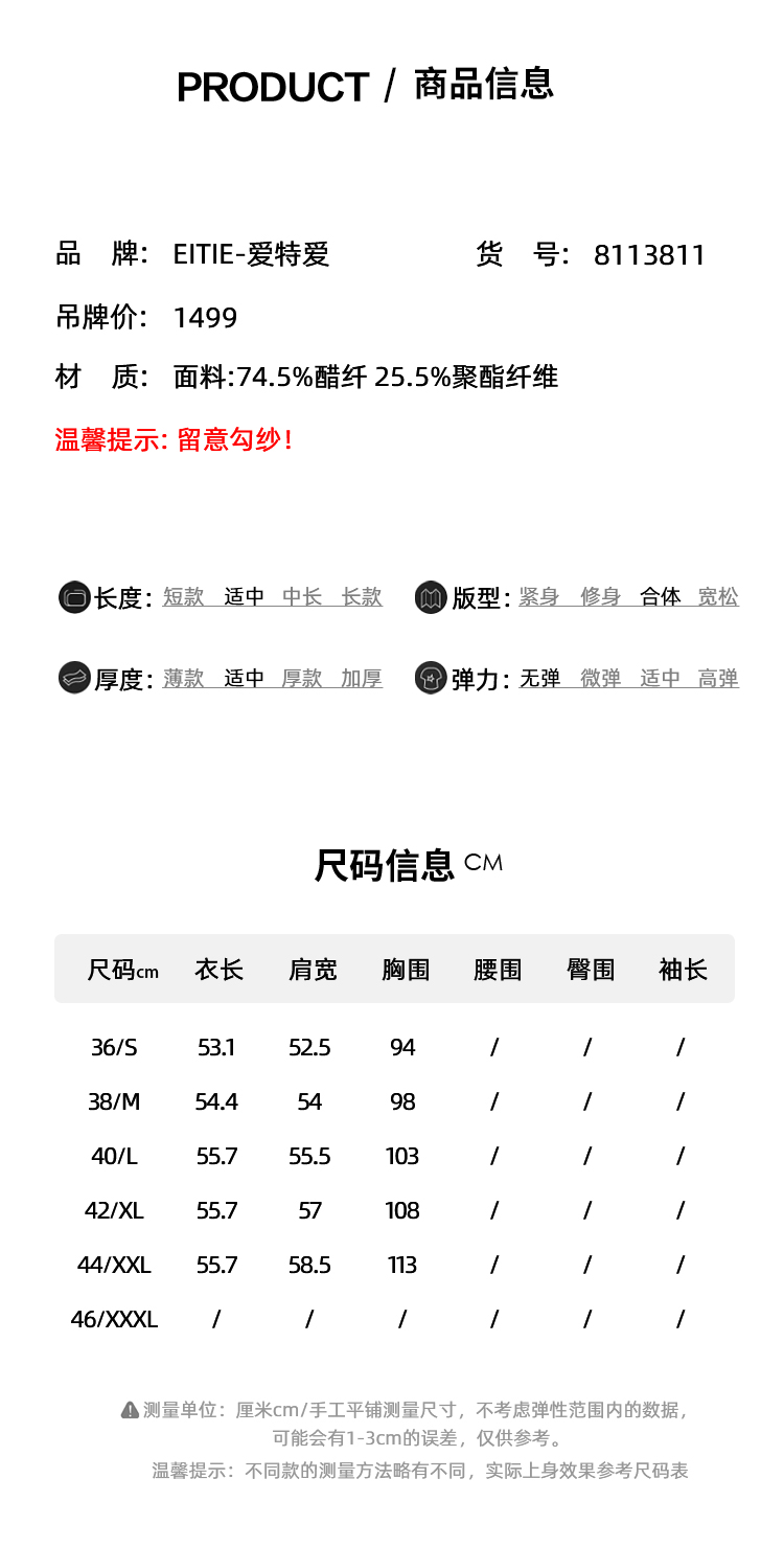 EITIE爱特爱品牌女装冬季修身OL风格长袖纯色针织衫女5801511
