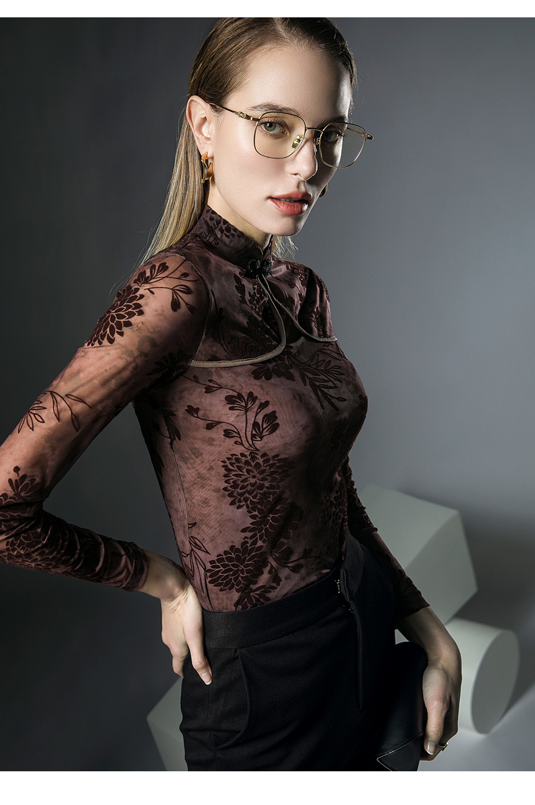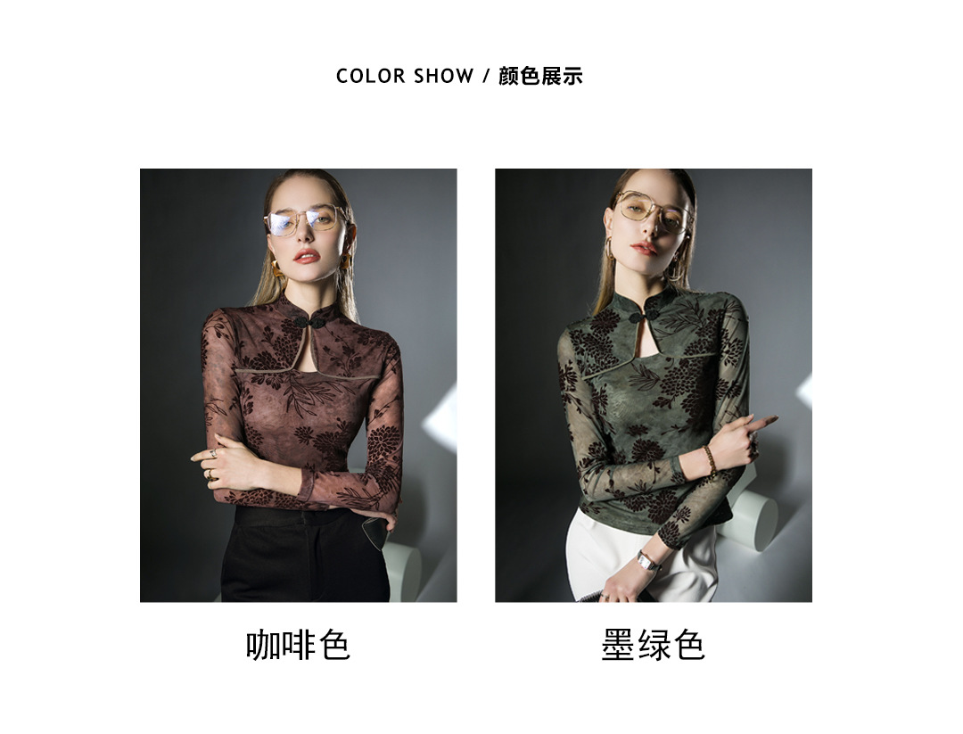 气质上衣盘扣中式复古,网纱植绒打底衫FN23TX201