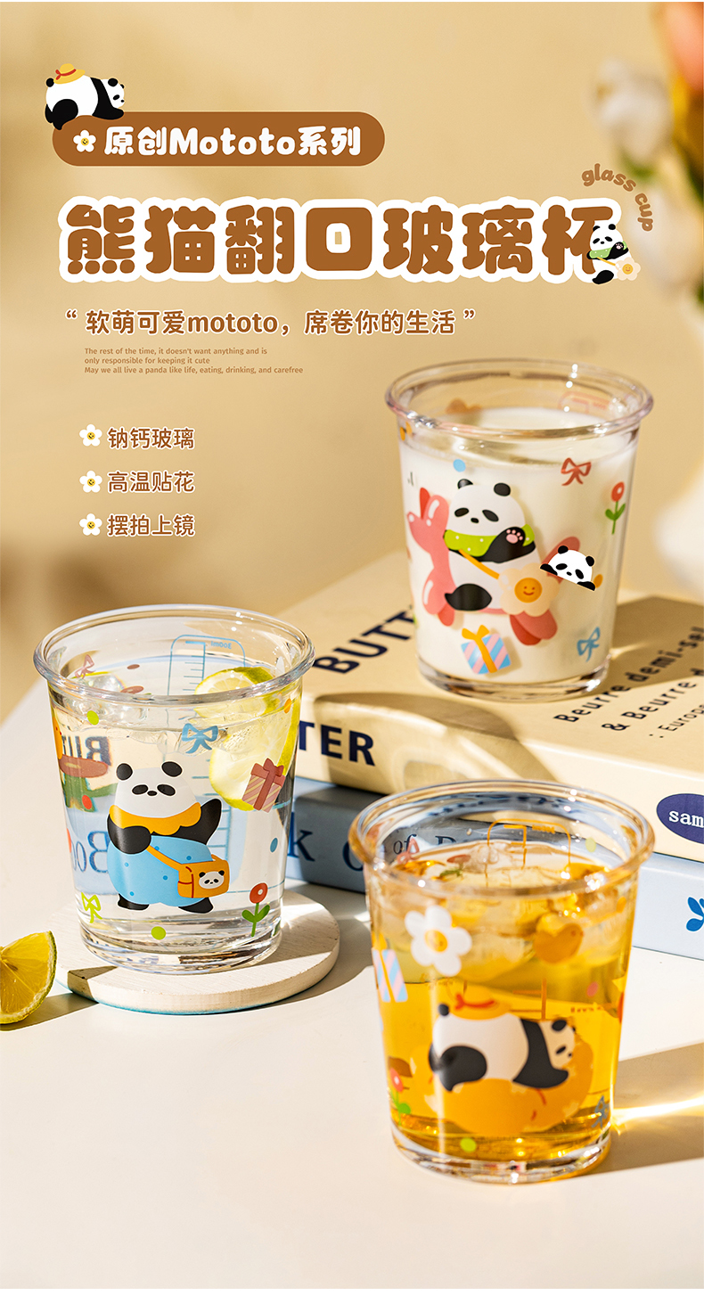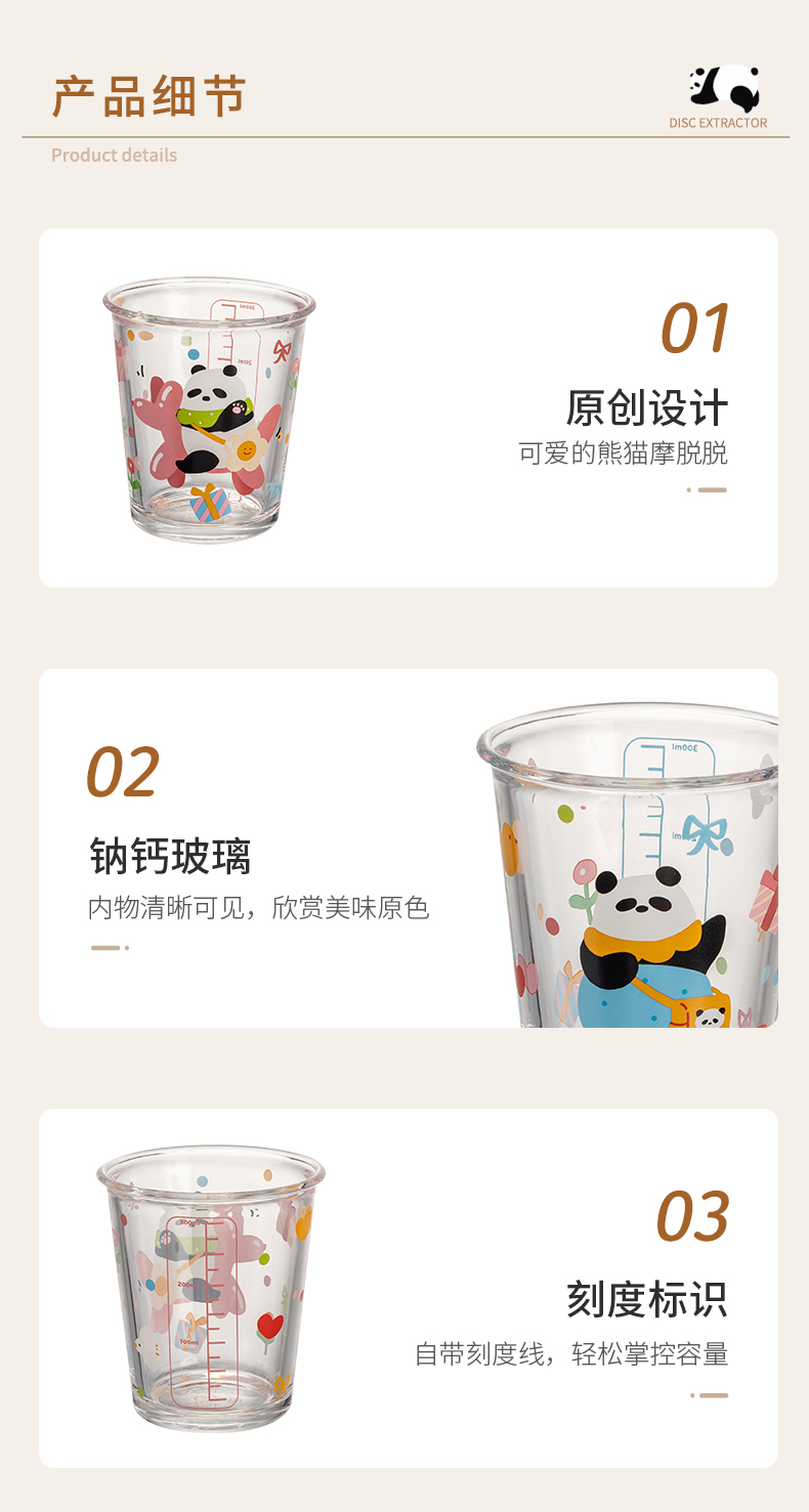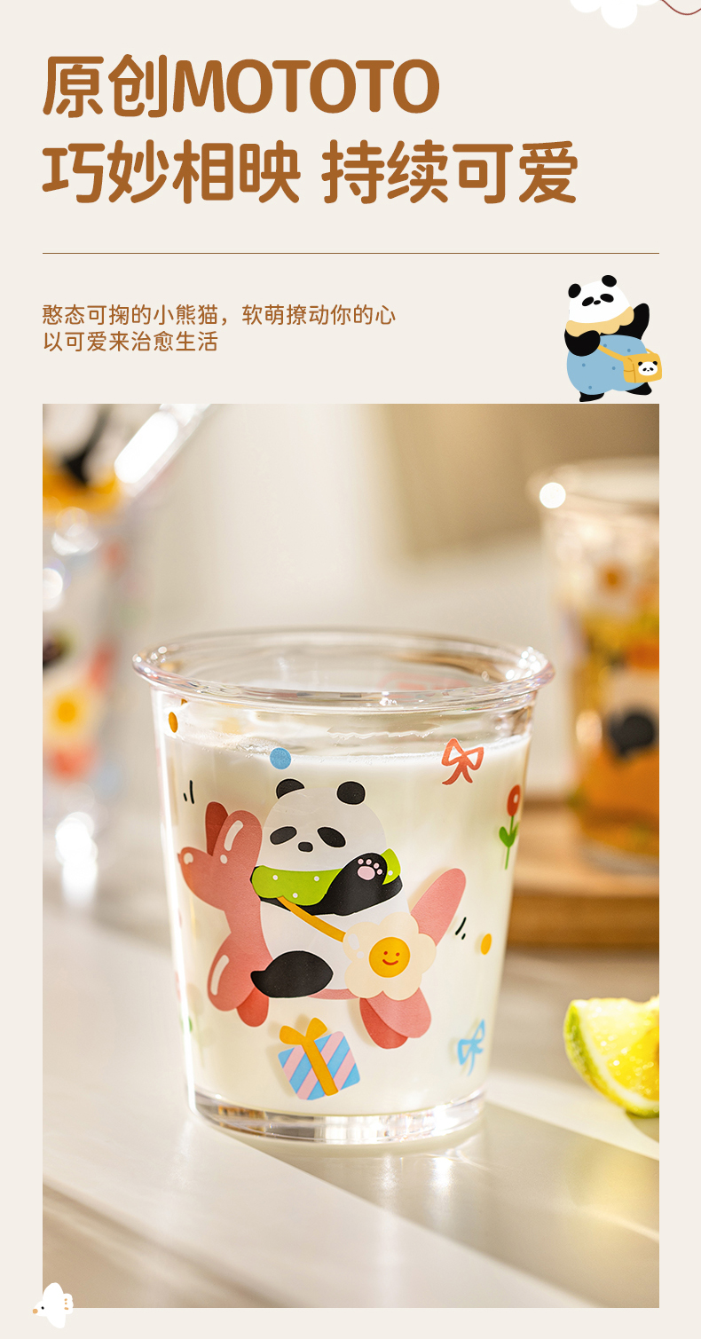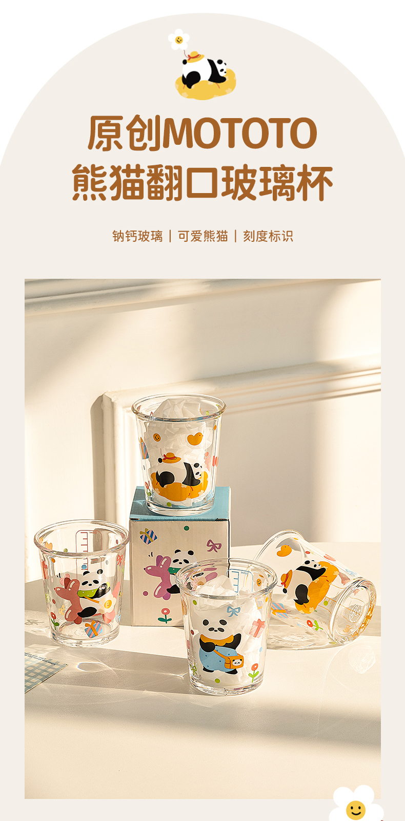 摩登主妇mototo熊猫玻璃杯咖啡杯家用水杯女高颜值刻度杯子果汁杯