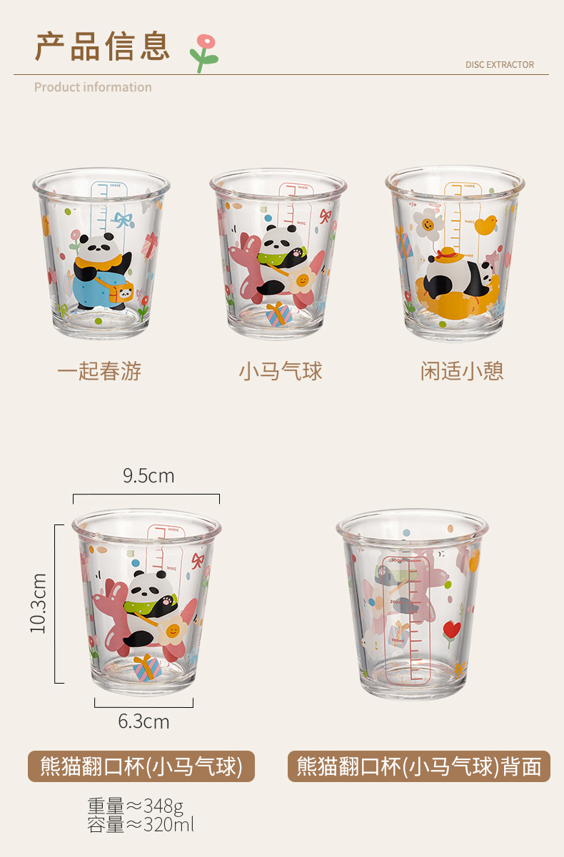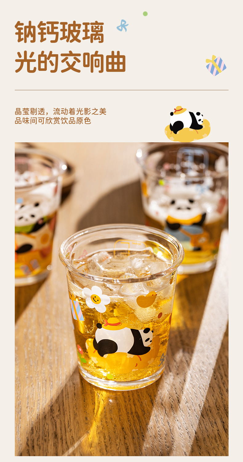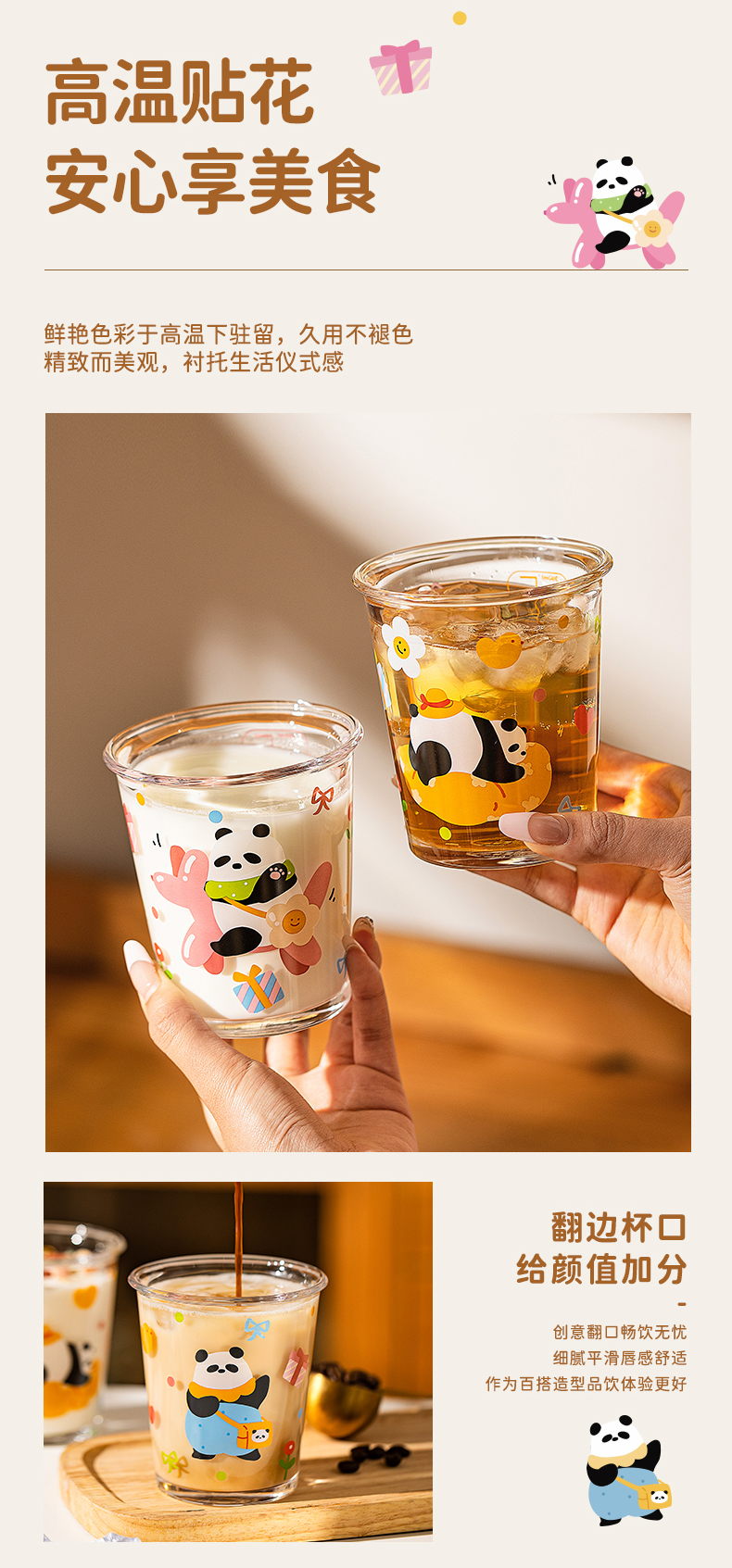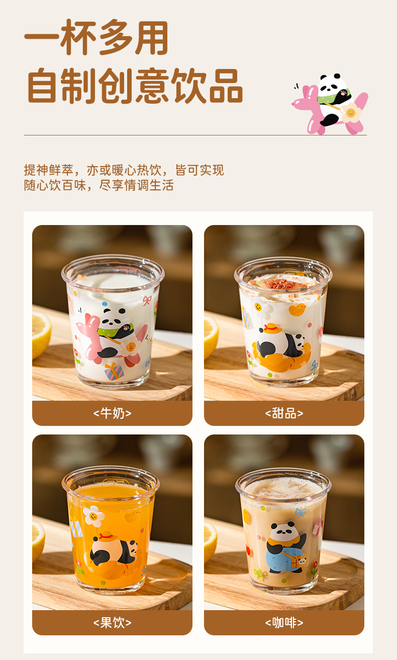 摩登主妇mototo熊猫玻璃杯咖啡杯家用水杯女高颜值刻度杯子果汁杯