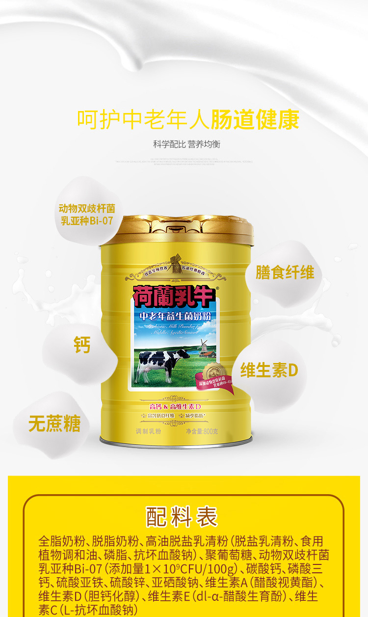 荷兰乳牛中老年益生菌奶粉800g听 26年1月产